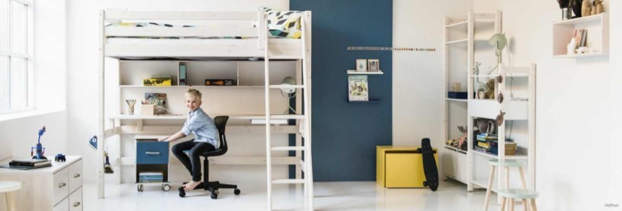 - Pokud spánkovou část umístíte do výšky, bude to mít psychologicky pozitivní účinek – logicky i vizuálně ji pěkně odčleníte od „denních“ aktivit v dětském pokoji.