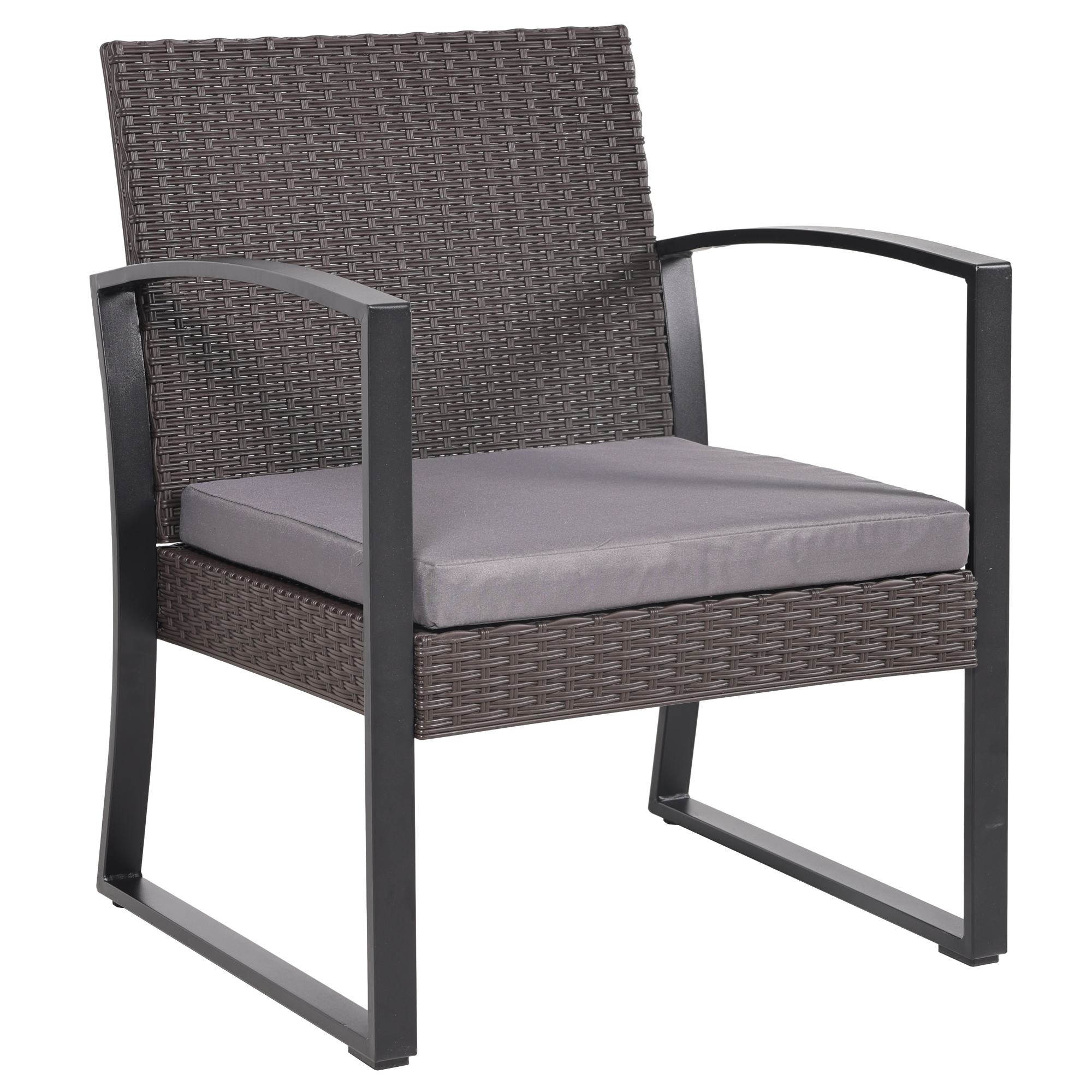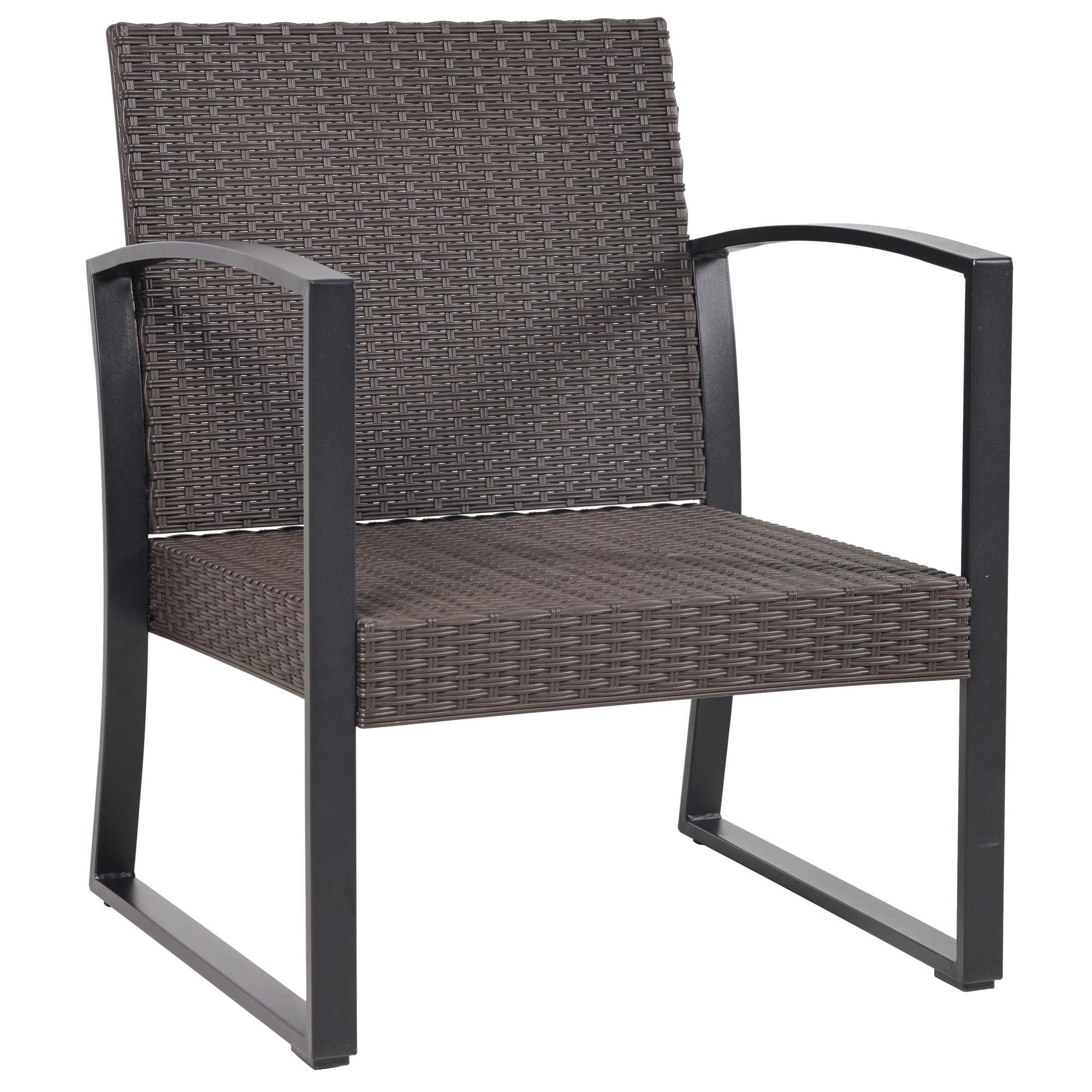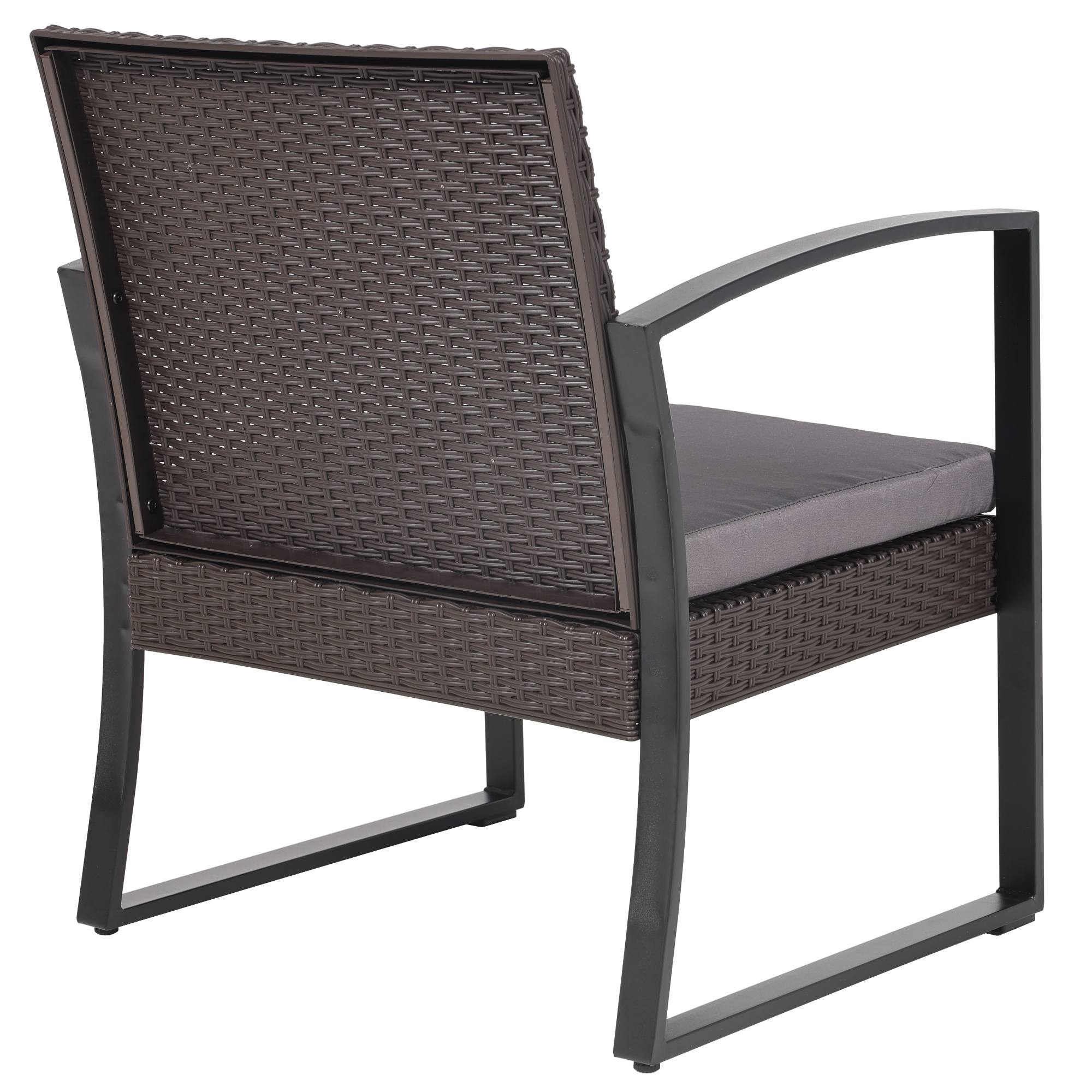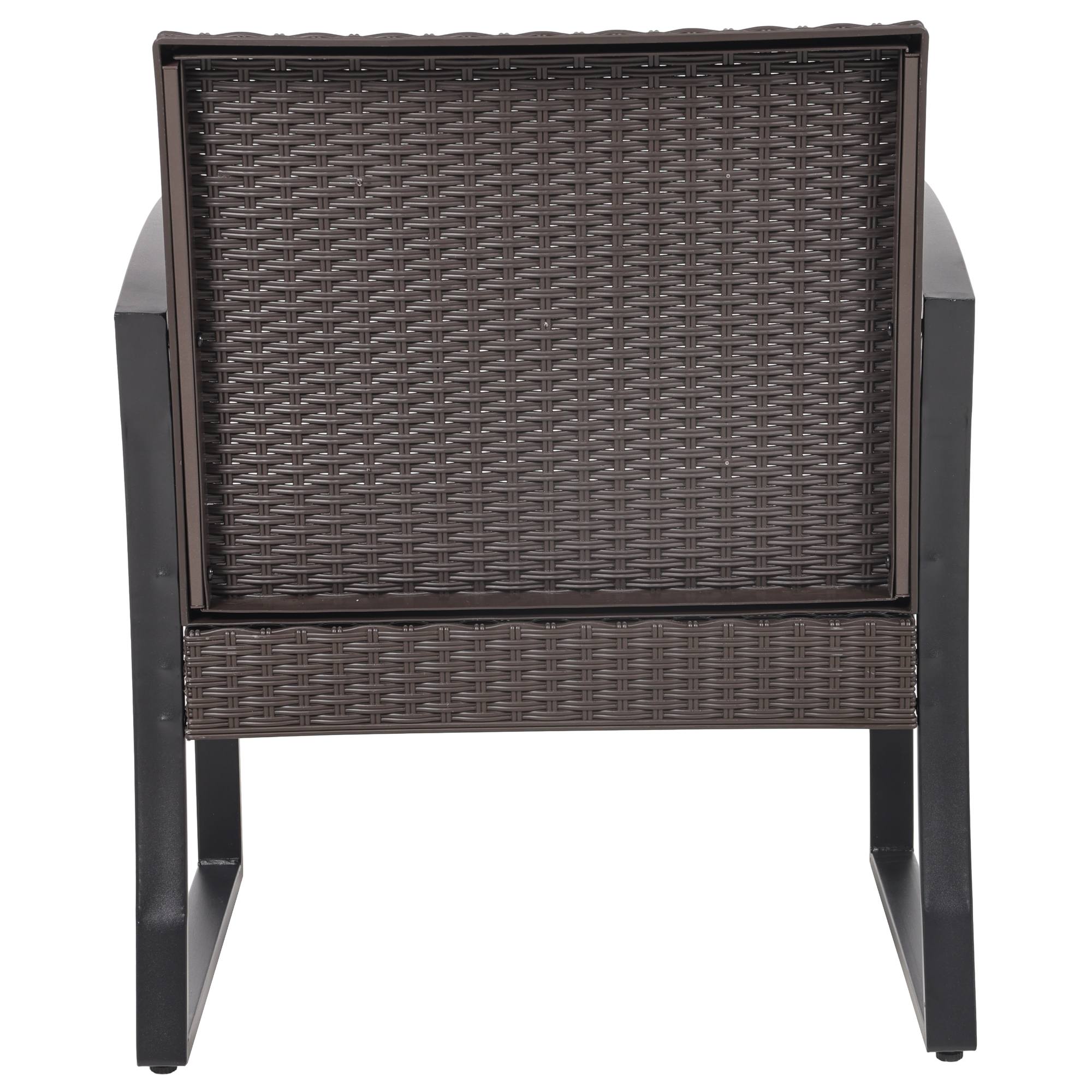 Tento set zahrnuje stolek a dvě křesla. Jeho černá kovová konstrukce je opletena polyratanem v hnědé barvě, což nejen podtrhuje jeho elegantní vzhled, ale zároveň zajišťuje vysokou odolnost, dlouhou životnost a minimální nároky na údržbu.