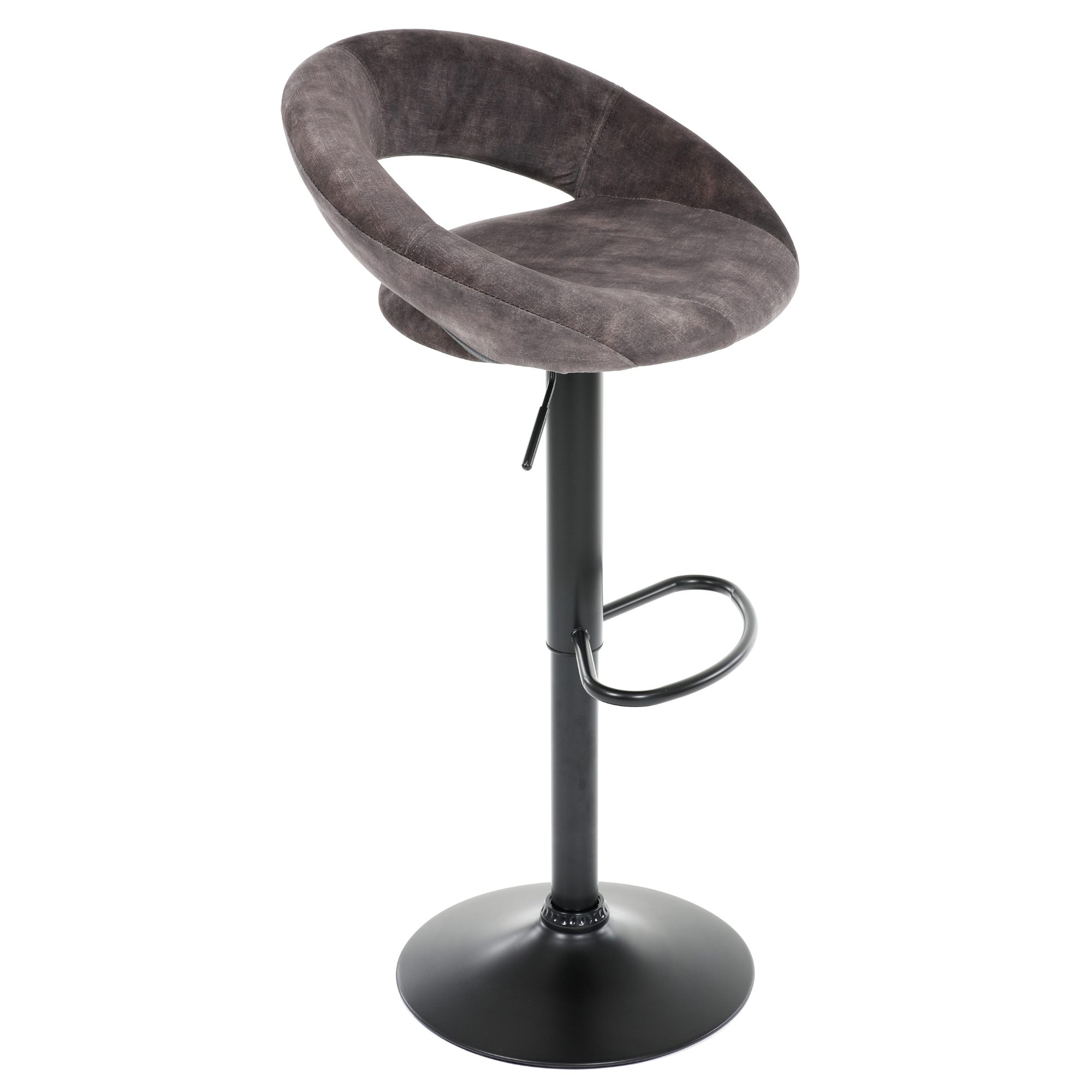 Maximální pohodlí zajišťuje komfortní sedák a zádová opěrka s příjemným čalouněním z tkaniny sametového vzhledu. Stabilitu pak obstarává kovová středová noha na velké kulaté základně. Vybavena je podnožkou, která vysoký komfort jen podtrhuje. Židle je výškově nastavitelná. Průhled zádové opěrky navíc plní nejen dekorativní funkci, ale poslouží i jako praktické madlo pro snazší manipulaci.