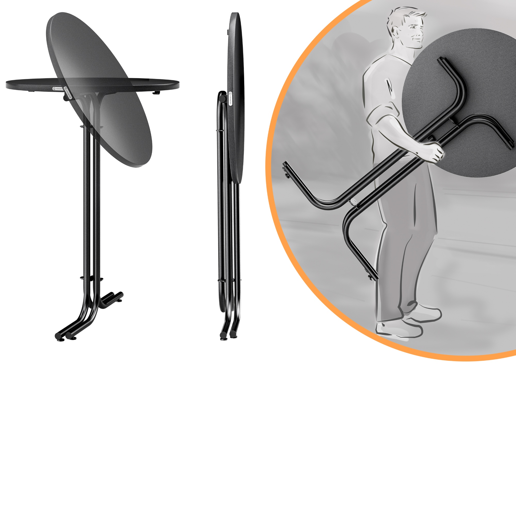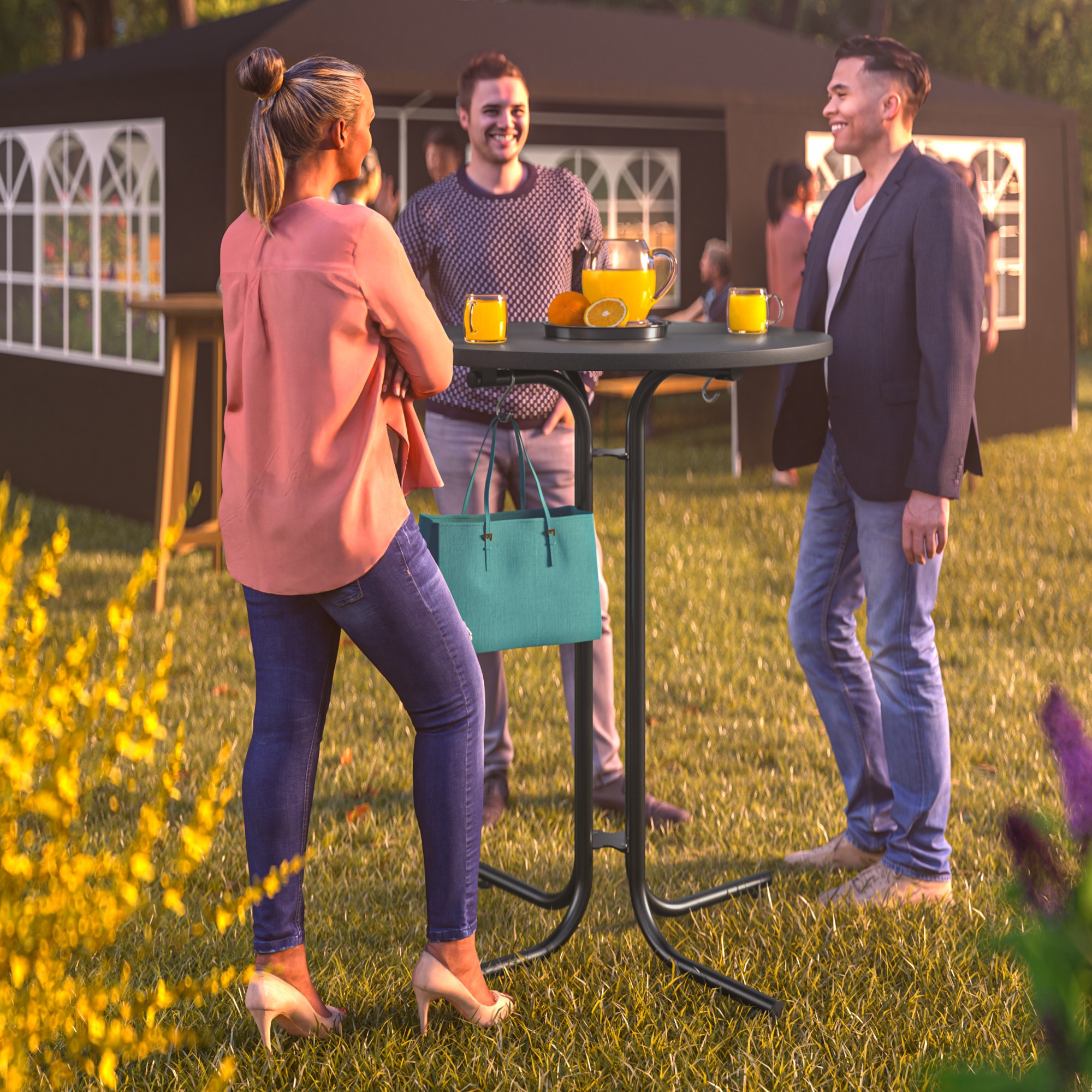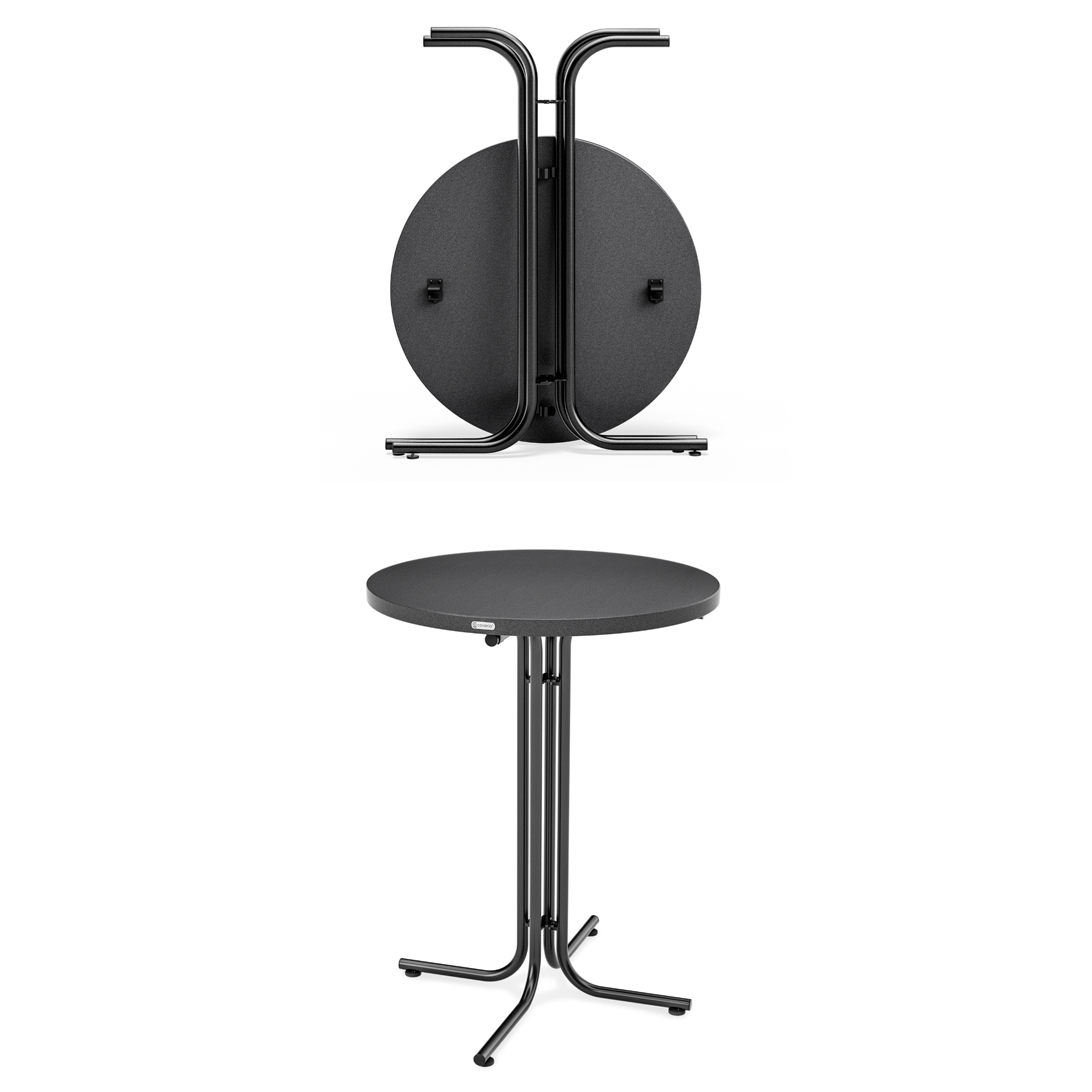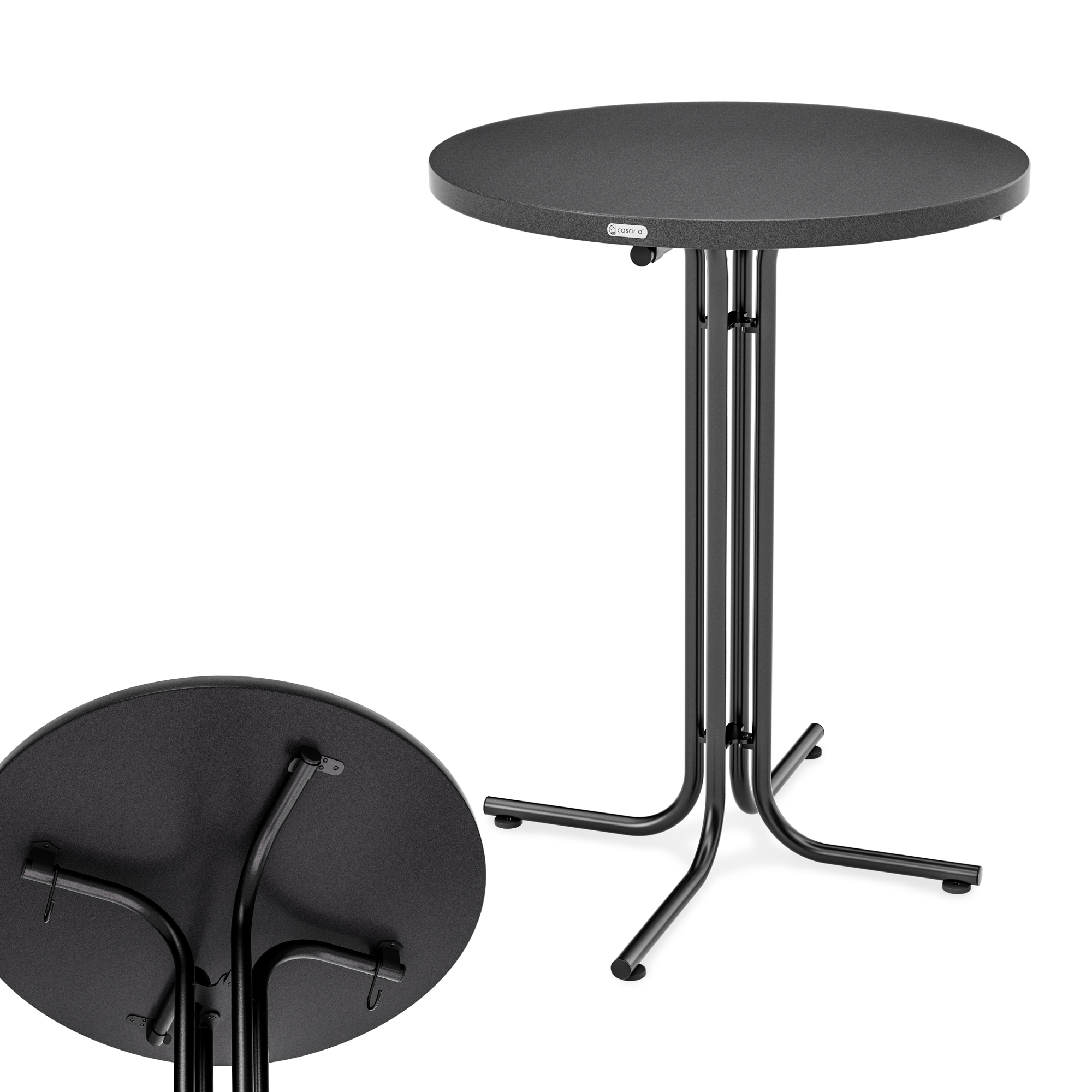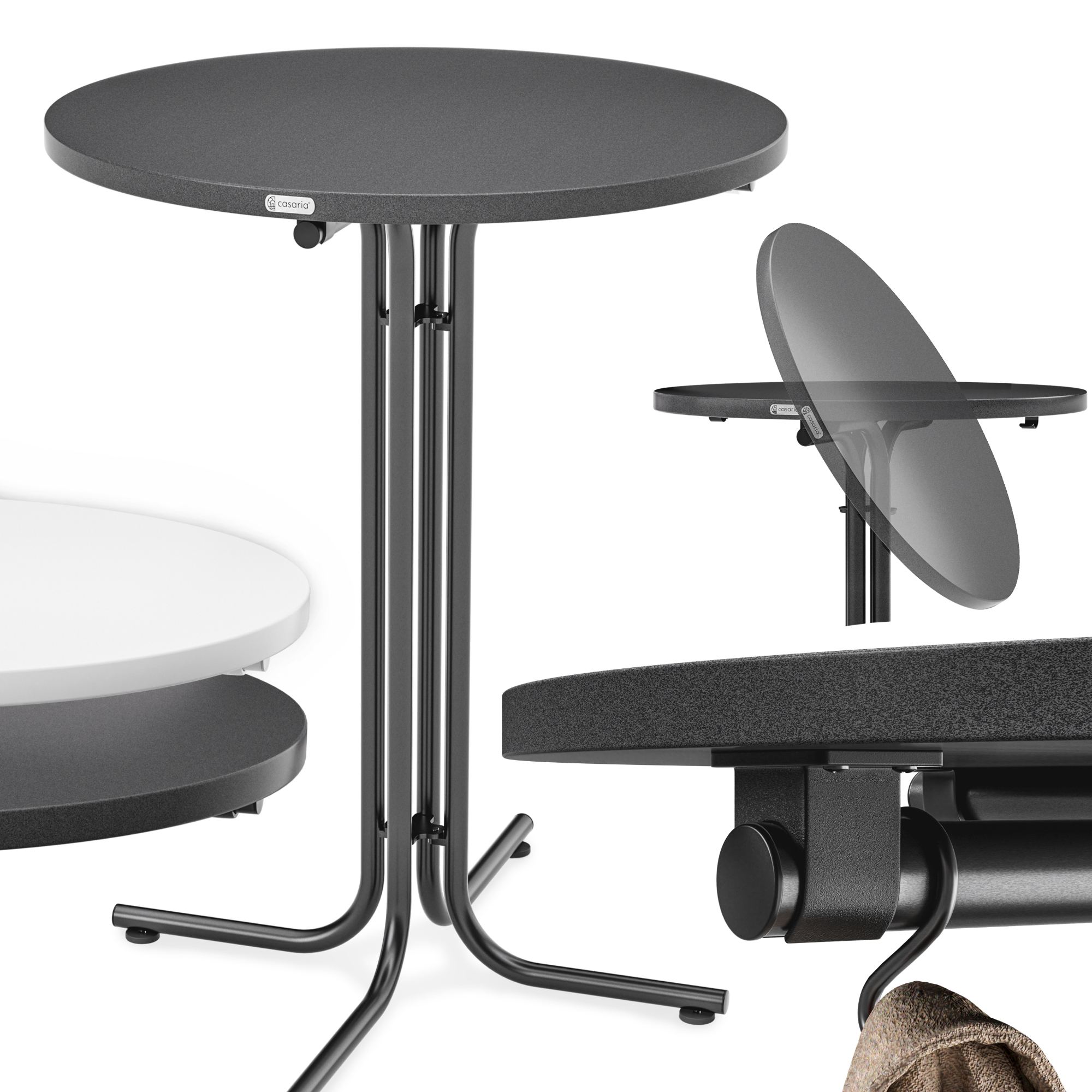 Součástí barového stolu ROUND 2, který je skládací, jsou i 2 praktické háčky. Nosnost stolu je 100 kg.