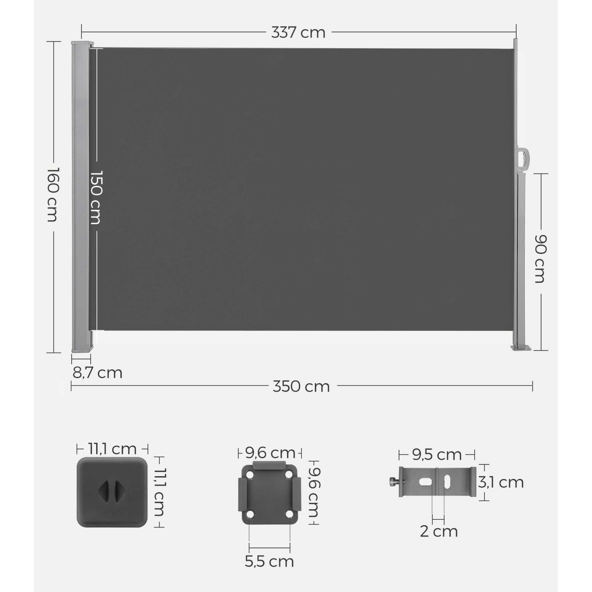 Boční markýza PRIVACY - šedá, 160x350 cm