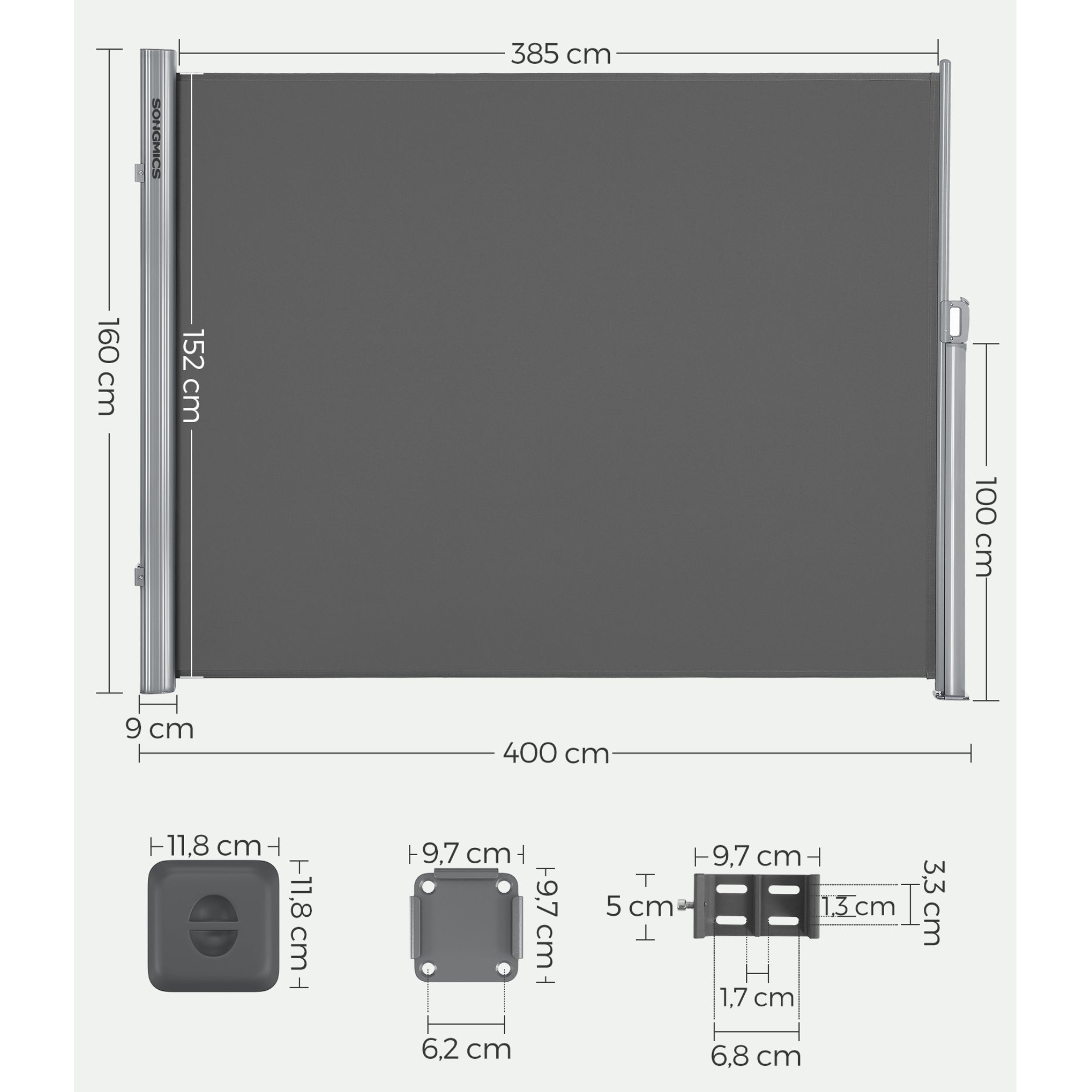 Boční markýza PRIVACY - šedá, 160x400 cm