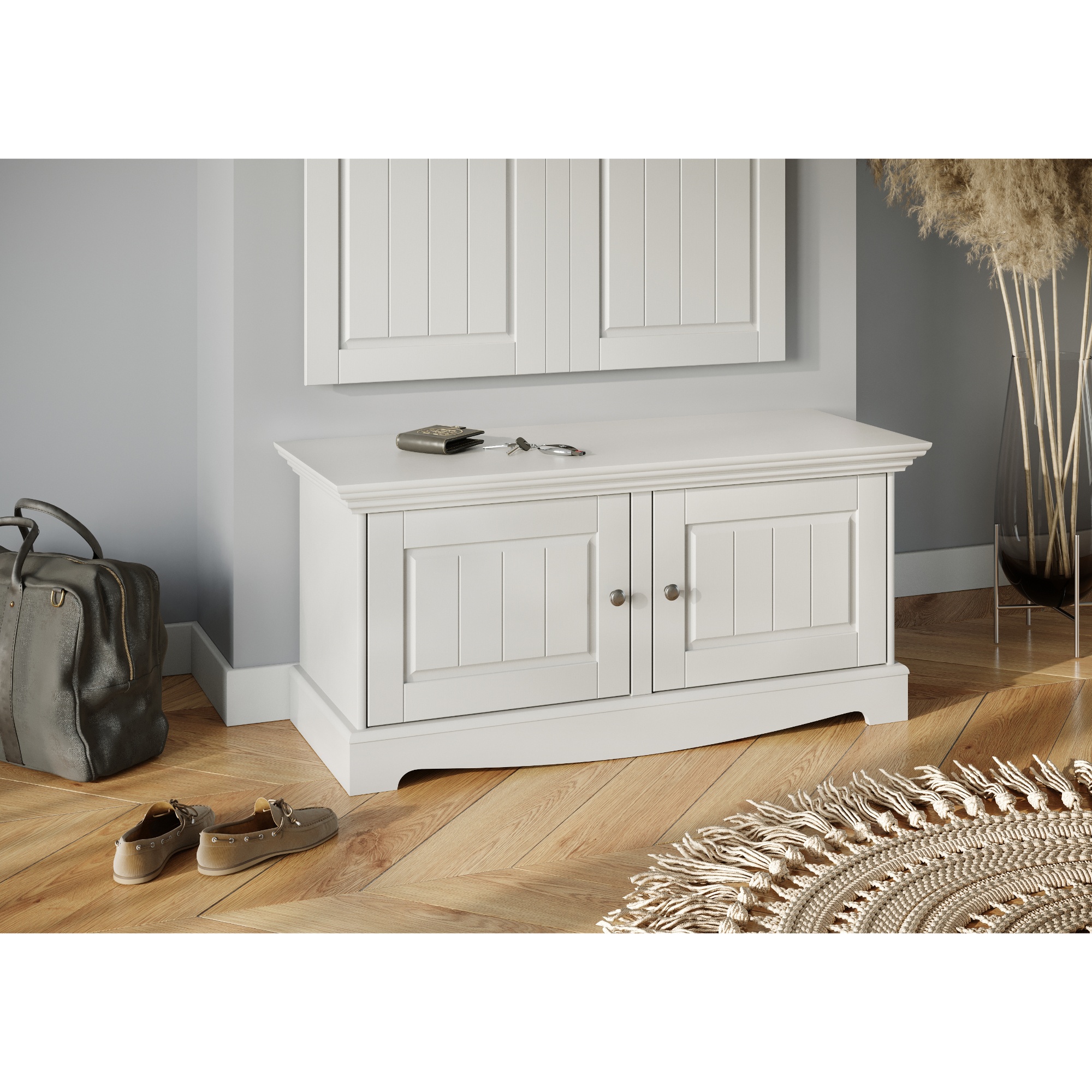 Obsahuje dvoje dvířka, která jsou zakončena frézami a ozdobnými úchytkami. Uvnitř jsou police, které umožňují uložení veškeré obuvi.