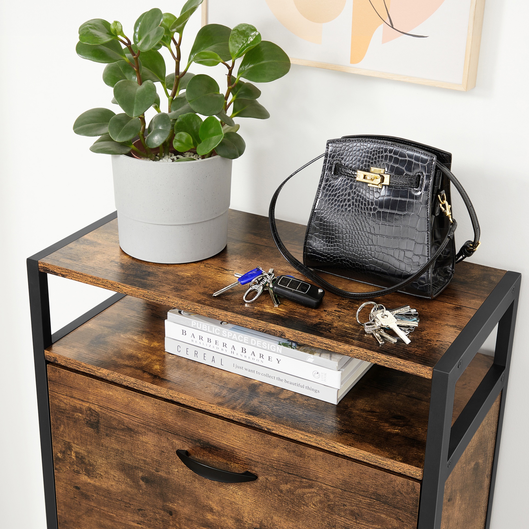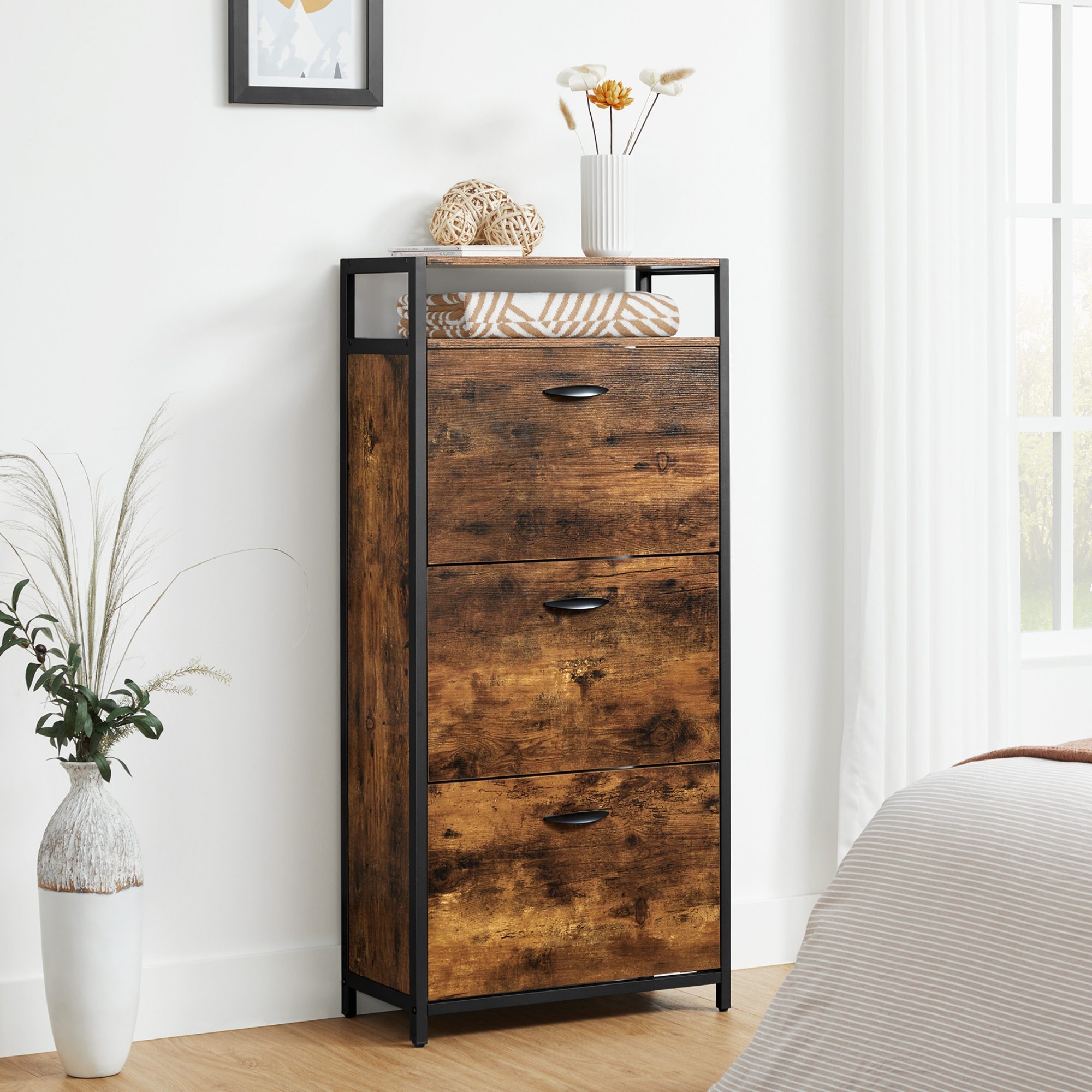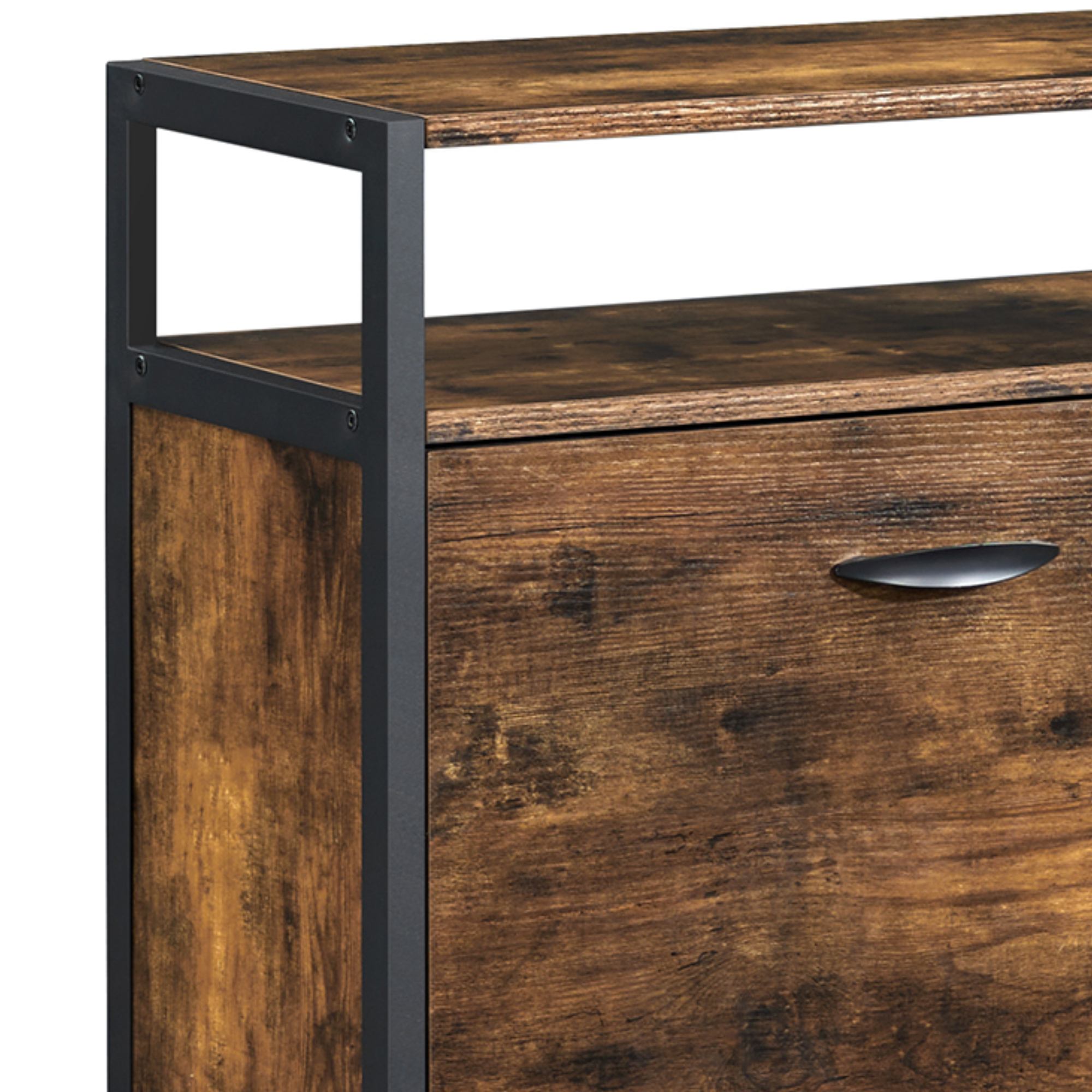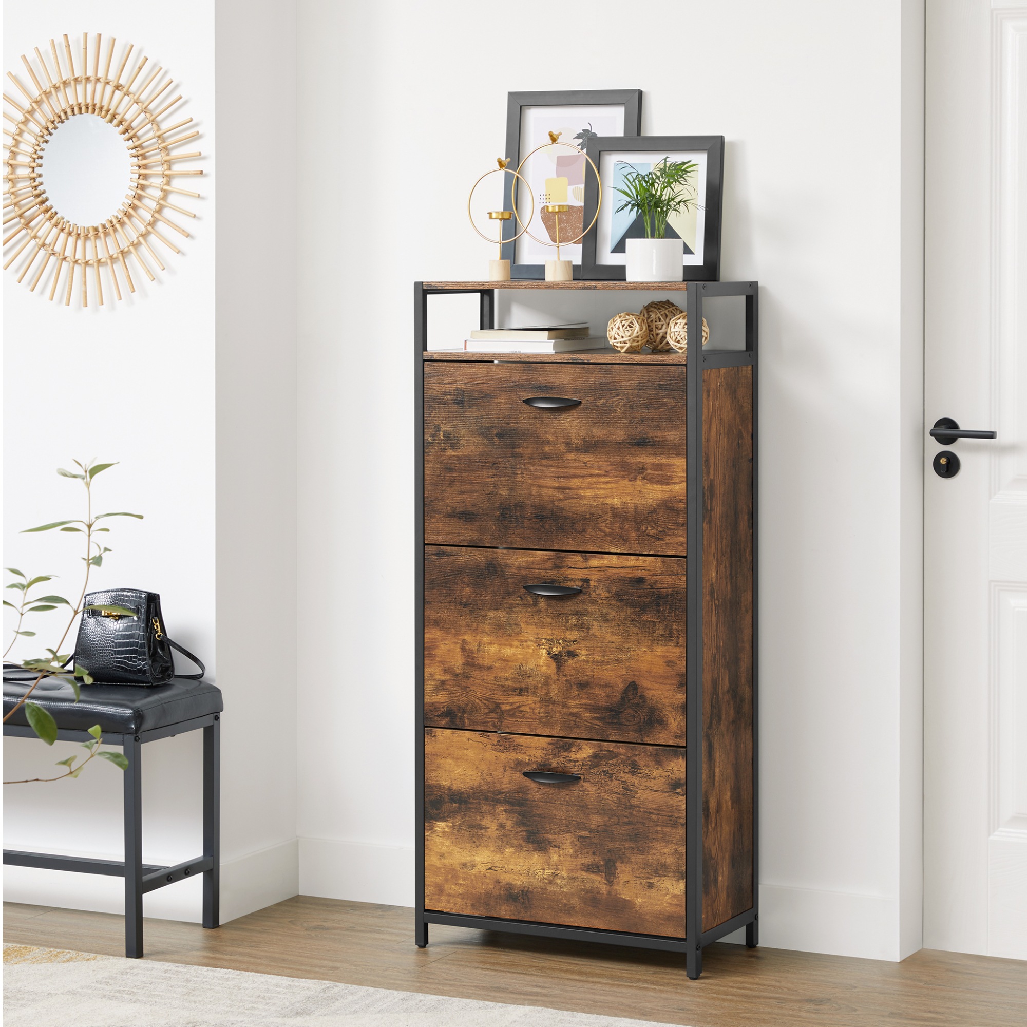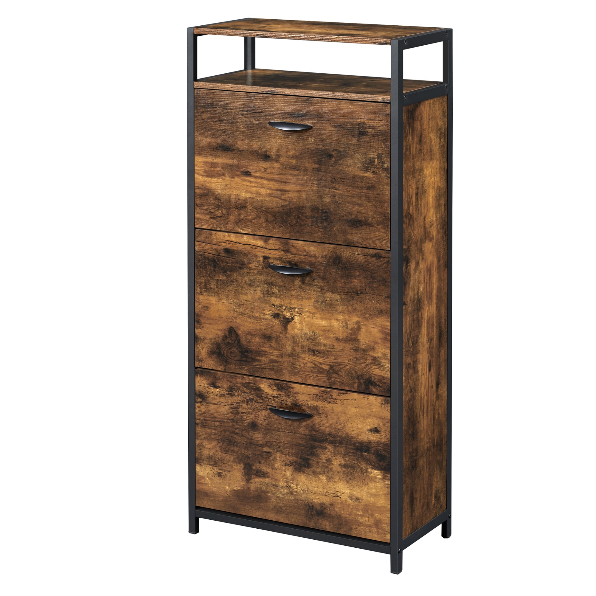 Kombinace kovu a dekoru dřeva se bude vyjímat v moderní nebo lehce industriálně zařízené domácnosti. Do boxů za výklopnými dvířky snadno umístíte cca 15 párů a vaše předsíň bude působit uklizeně a vy budete mít o vašich botách přehled. Police lze variabilně nastavit dle velikosti bot. Horní desku a otevřený odkládací prostor zase nabízí místo pro klíče nebo neroztříděnou poštu. S případnými nerovnostmi podlahy si poradí nastavitelné nožky. Pro lepší stabilitu doporučujeme botník připevnit ke zdi příchytkou pro upevnění ke zdi, která je součástí botníku.