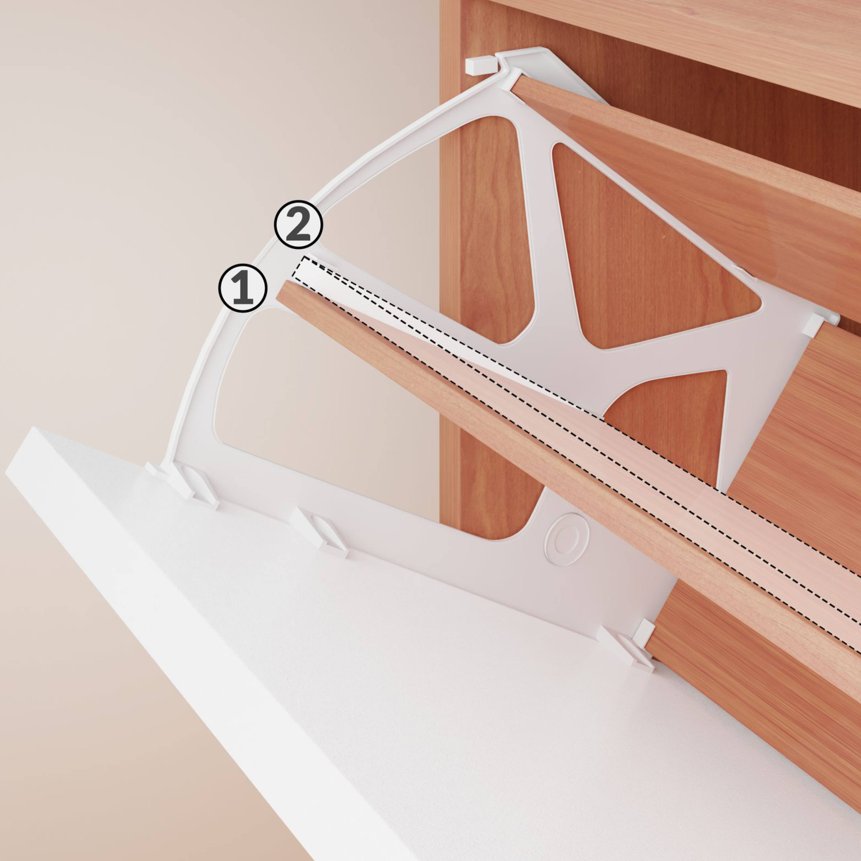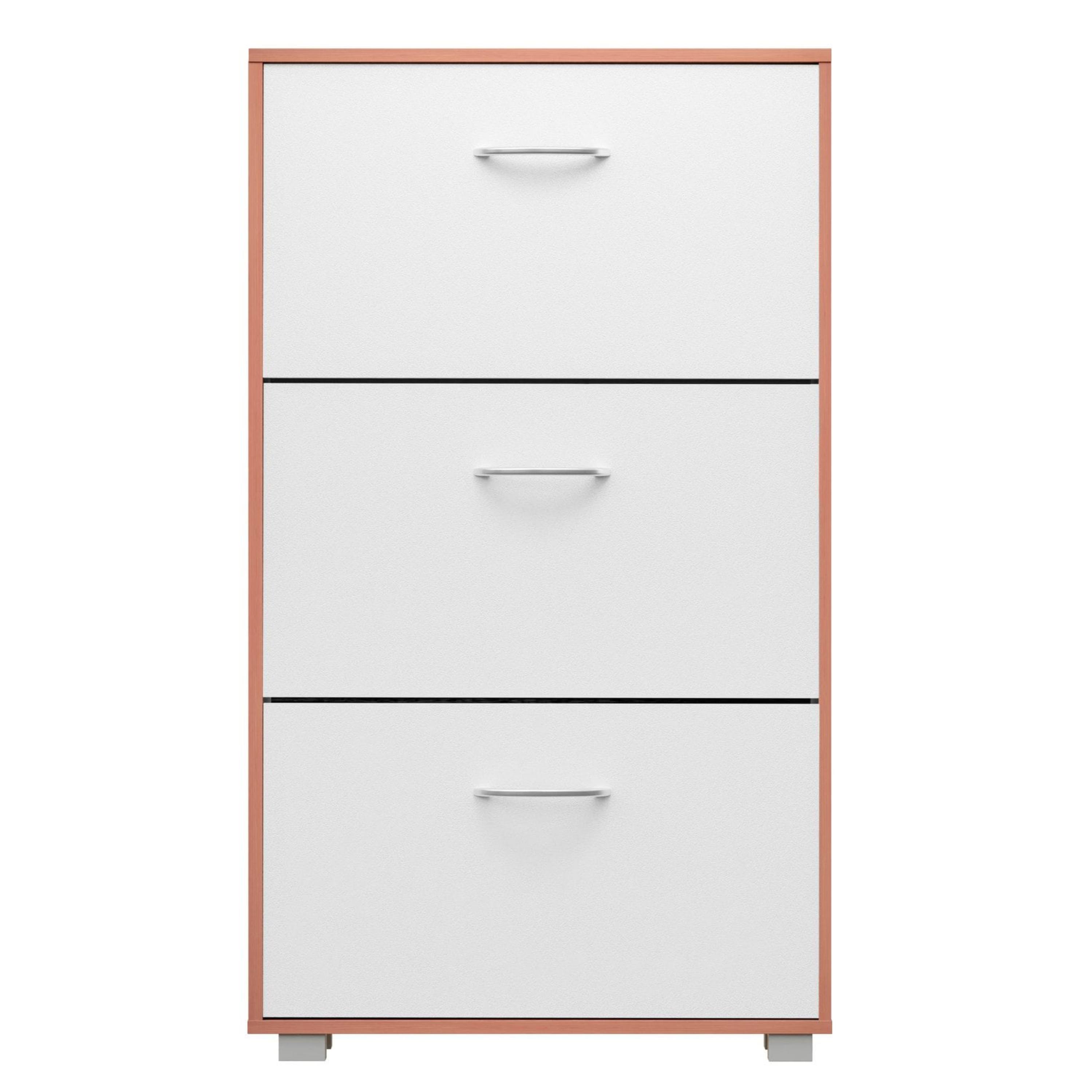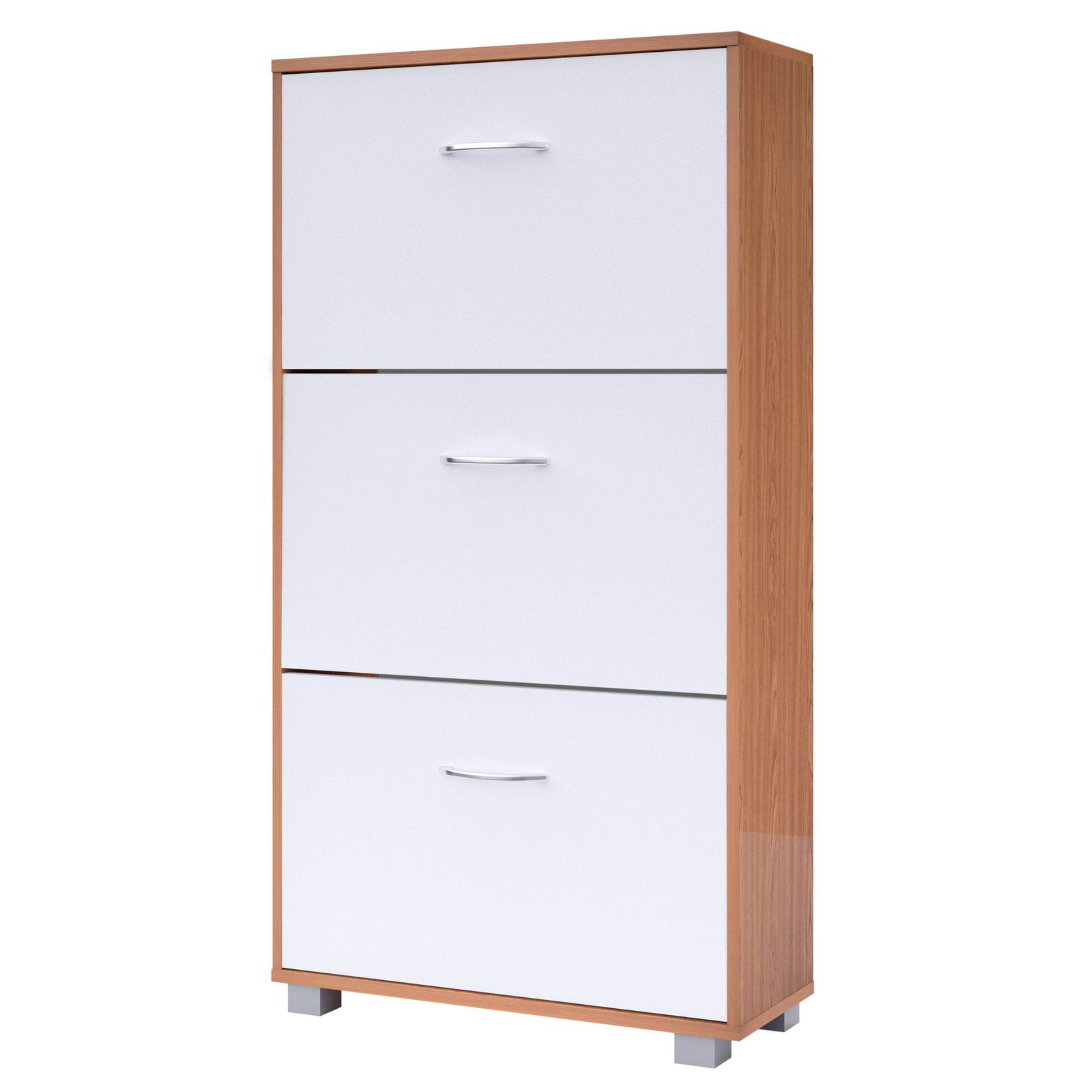 Úložné prostory za výklopnými dveřmi poskytují dostatek místa pro skladování až 18 párů obuvi do velikosti 45. Každá přihrádka je vybavena nastavitelnou a odnímatelnou přepážkou, takže se prostor snadno přizpůsobí různým typům obuvi. Snadnou každodenní manipulaci umožňují praktické hliníkové úchyty. Botník je vyroben z MDF materiálu s povrchem nenáročným na údržbu. Součástí balení je také pojistka proti převrácení, která zajišťuje větší stabilitu při plném zatížení.