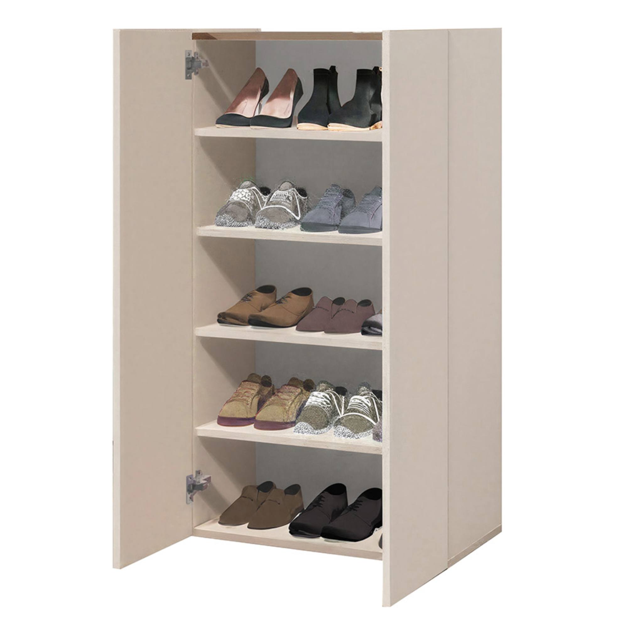 Botník nabízí dostatek úložného prostoru. Za jeho dvířky se nachází 4 vložené police, na které si můžete přehledně uložit vaše oblíbené boty.