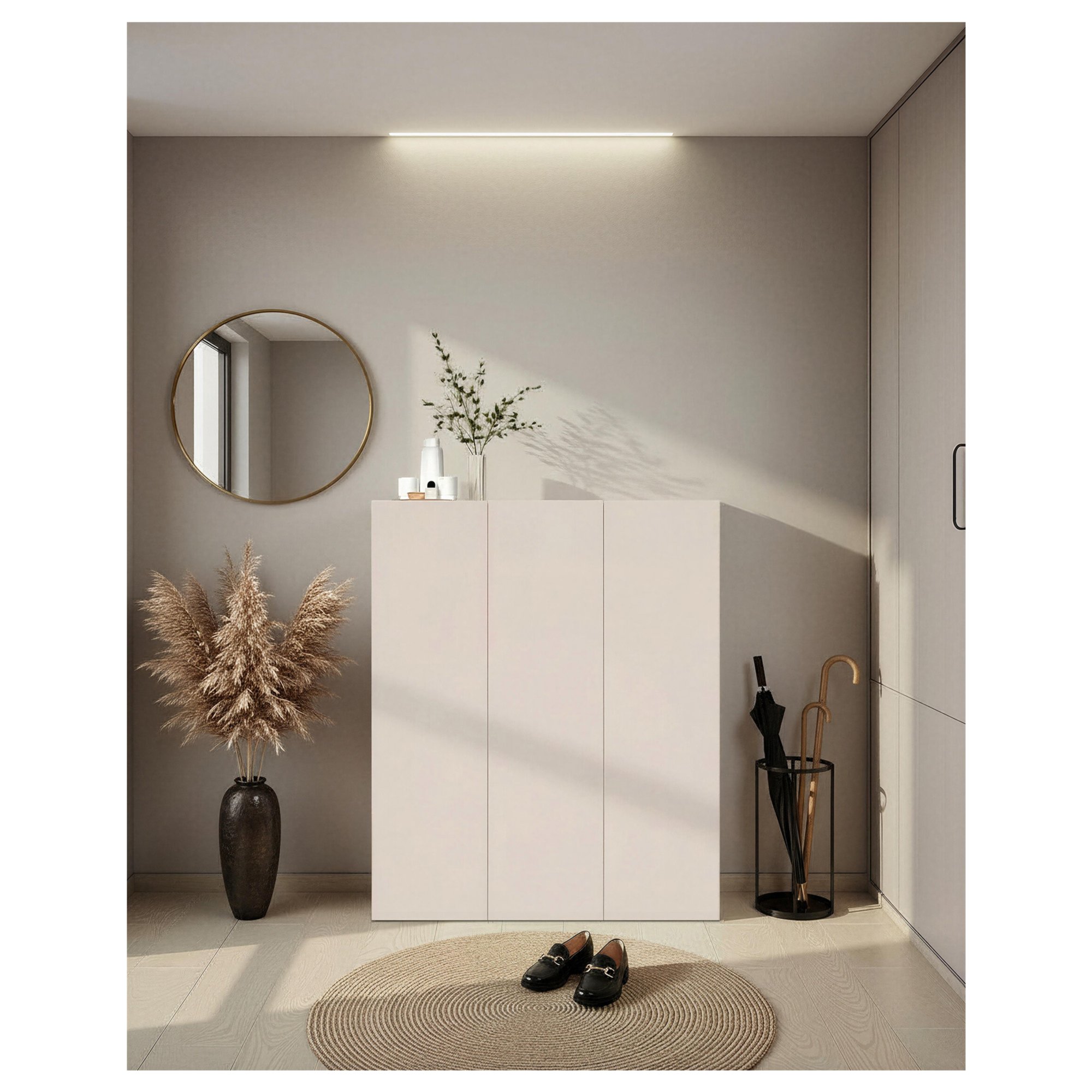 Botník RAINBOW 5, který vás zaujme stylovým bezúchytovým provedením a elegancí a čistými liniemi typickými pro skandinávský design, najde využití v každé předsíni.