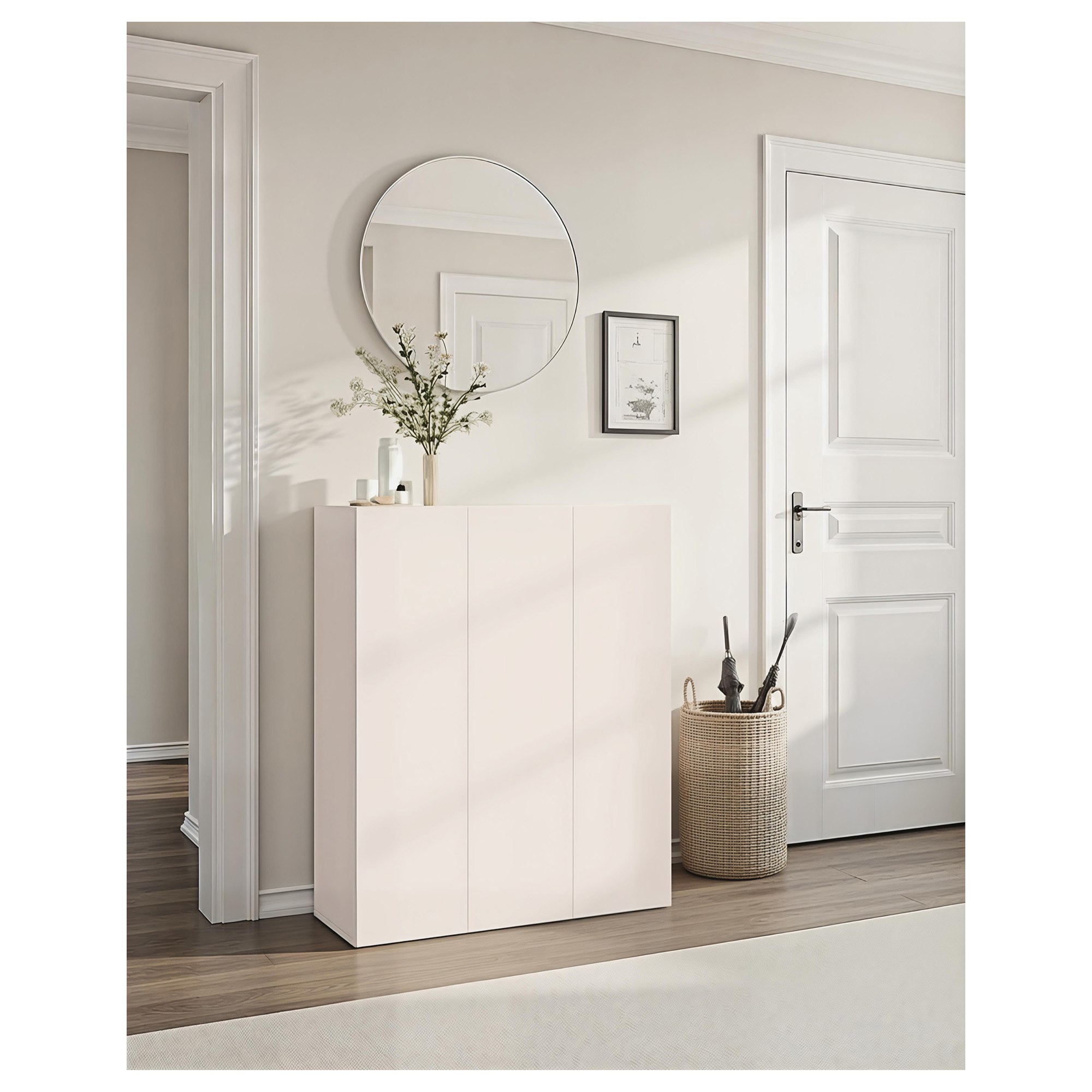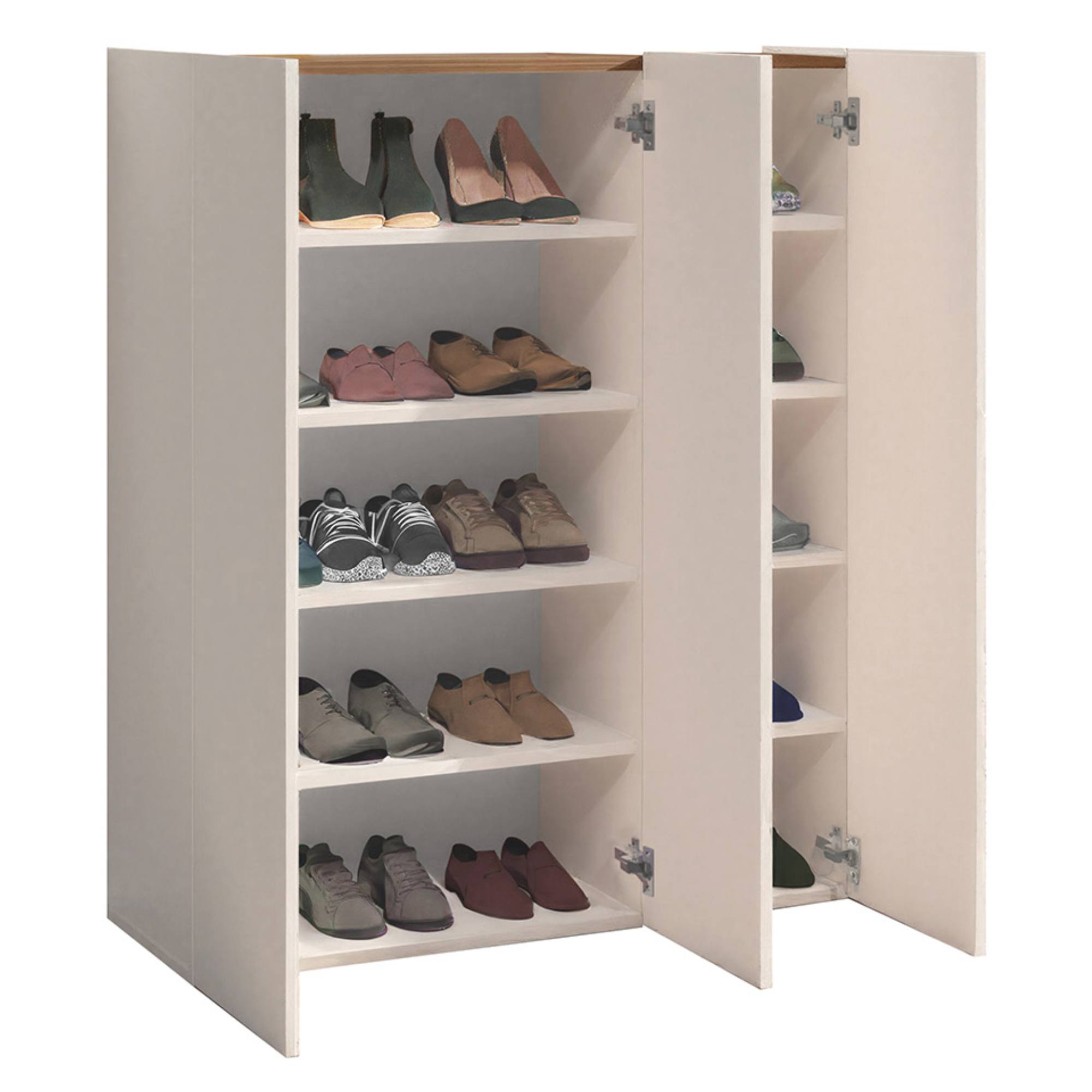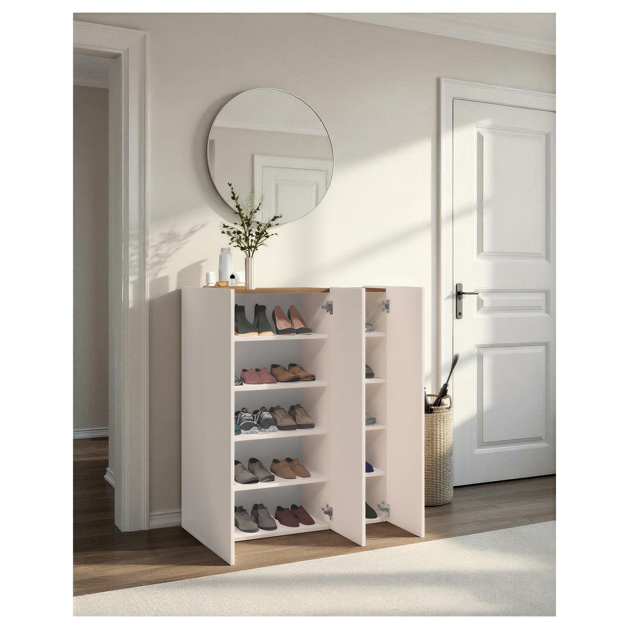 Botník nabízí dostatek úložného prostoru. Za jeho dvířky se nachází 8 vložených polic, na které si můžete přehledně uložit vaše oblíbené boty.