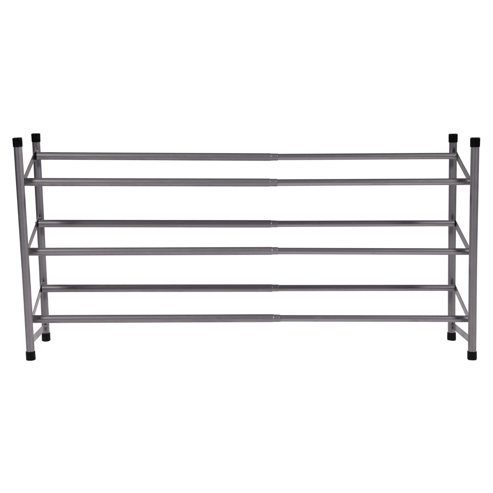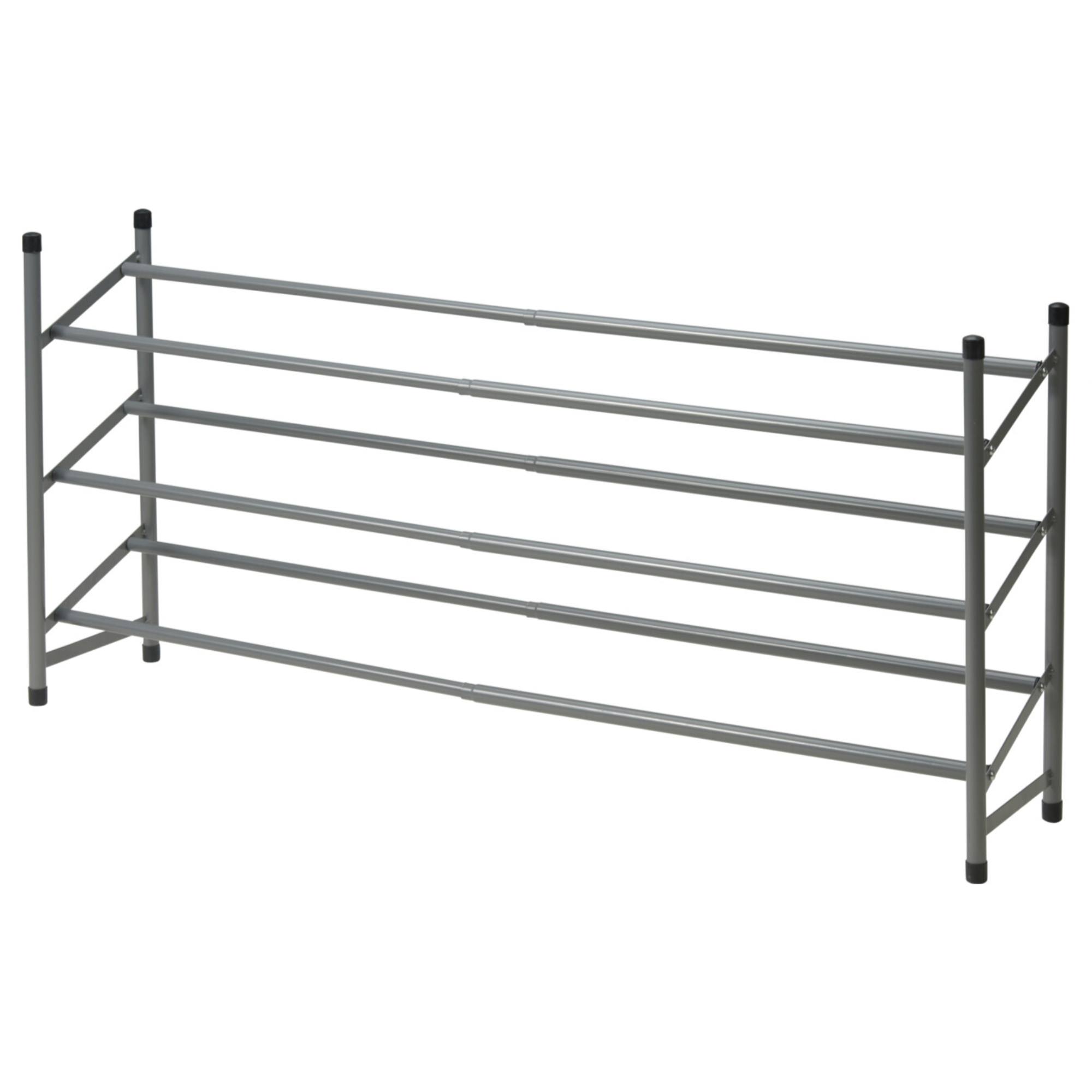 Praktický třípatrový botník RAMIRO z nerezové oceli vyvedený v jednoduchém designu. Pevná konstrukce se třemi policemi dává dostatek prostoru pro odkládání obuvi. Díky teleskopickým tyčím ho lze kdykoliv rozšířit a přizpůsobit tak vašim aktuálním potřebám. Šířku je možné nastavit od 60 až do 115 cm. Snadno se tak přizpůsobí menším i větším prostorám.