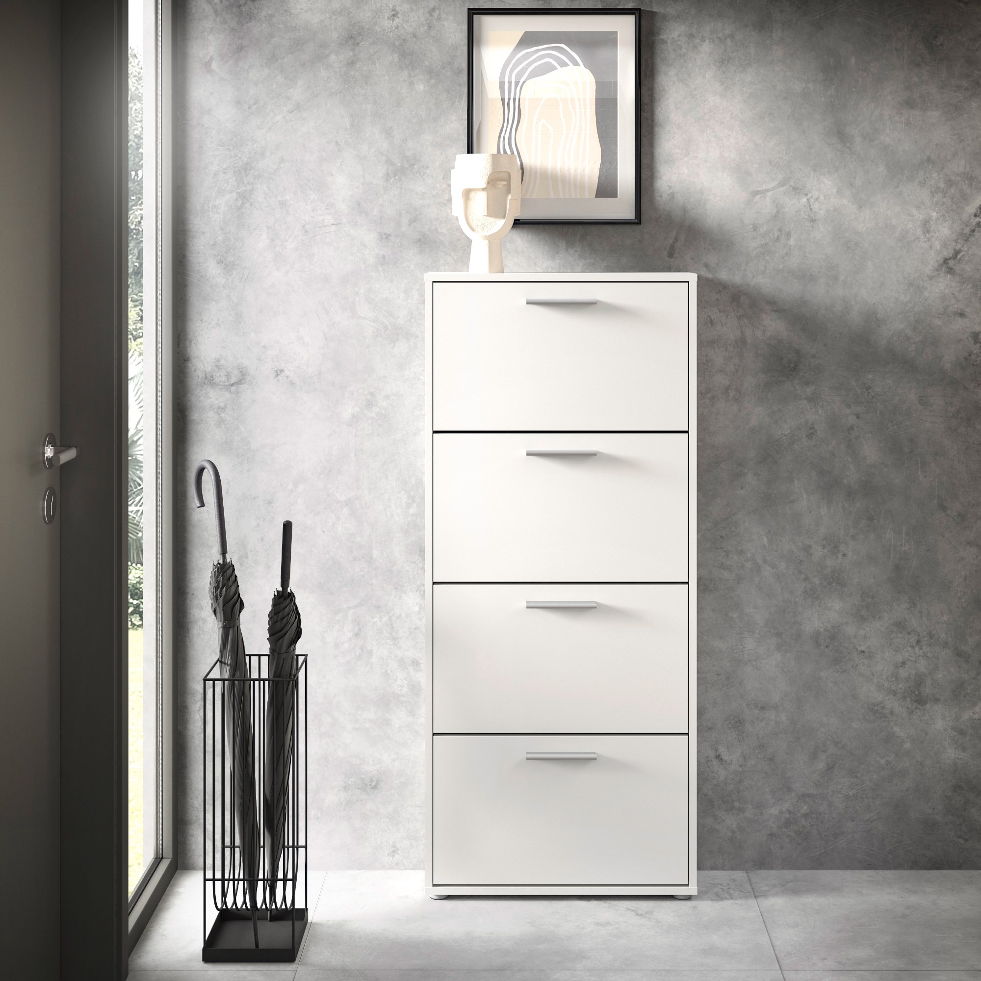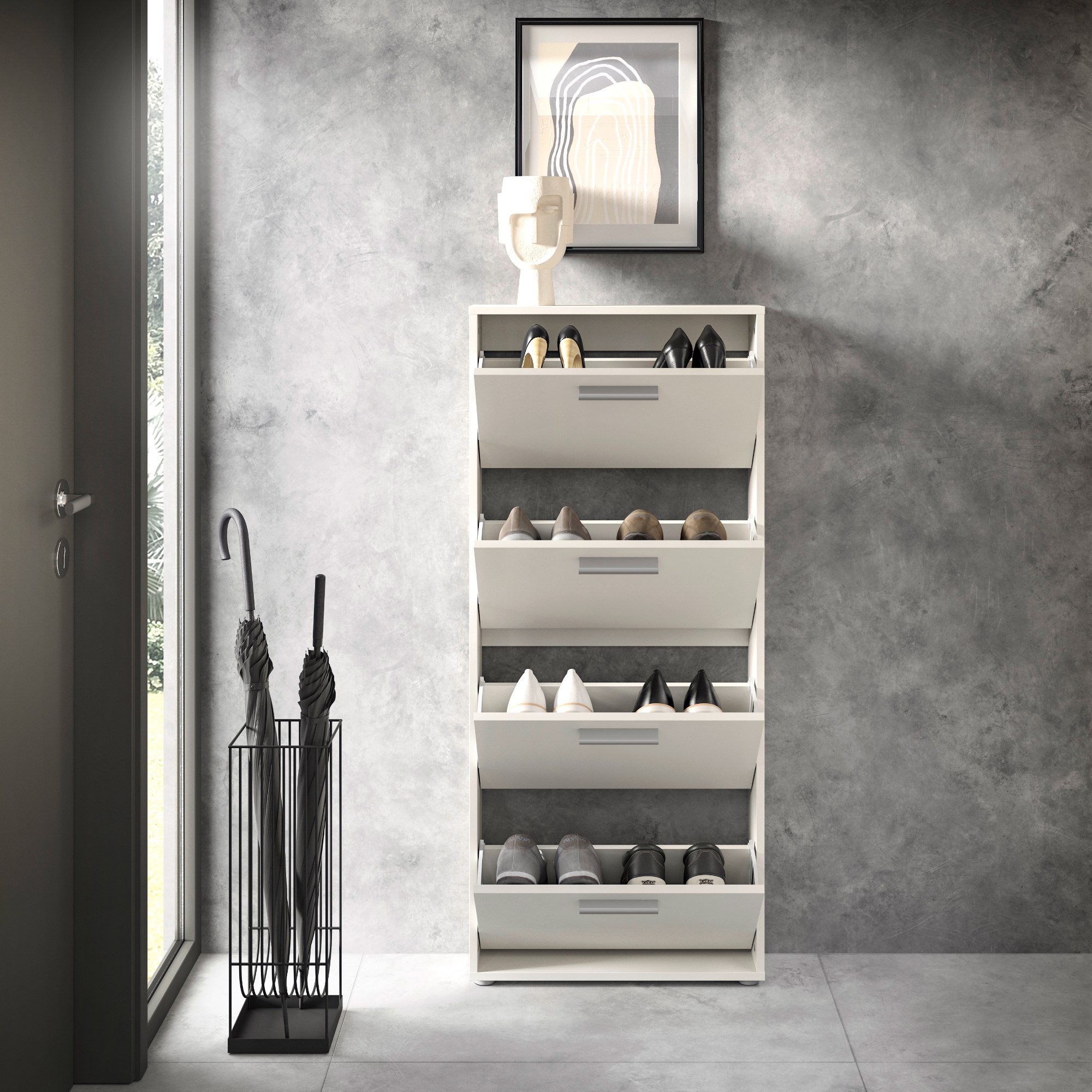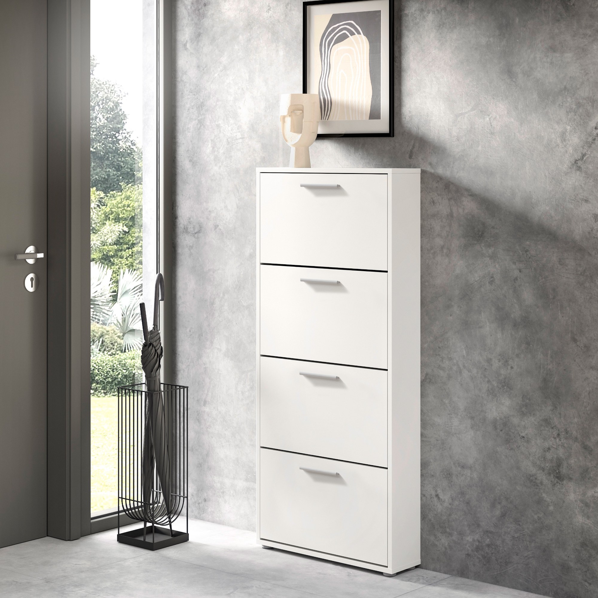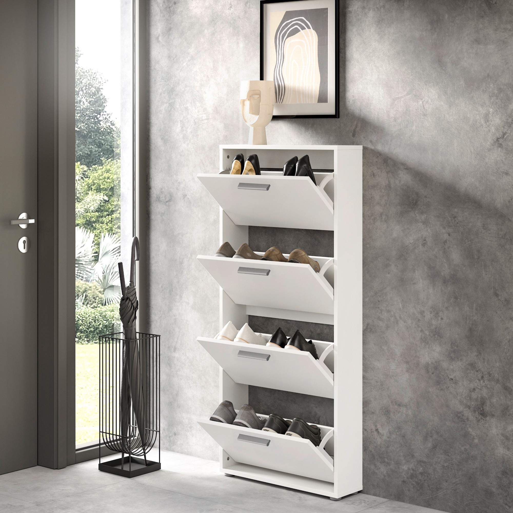 Za výklopnými dvířky botníku se nachází dostatek úložného prostoru pro vaše oblíbené boty. Aby se s nimi dobře manipulovalo, jsou vybavena úchyty.