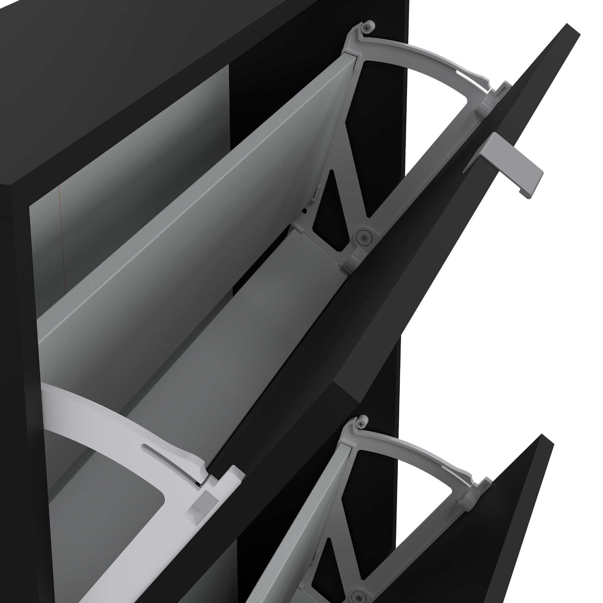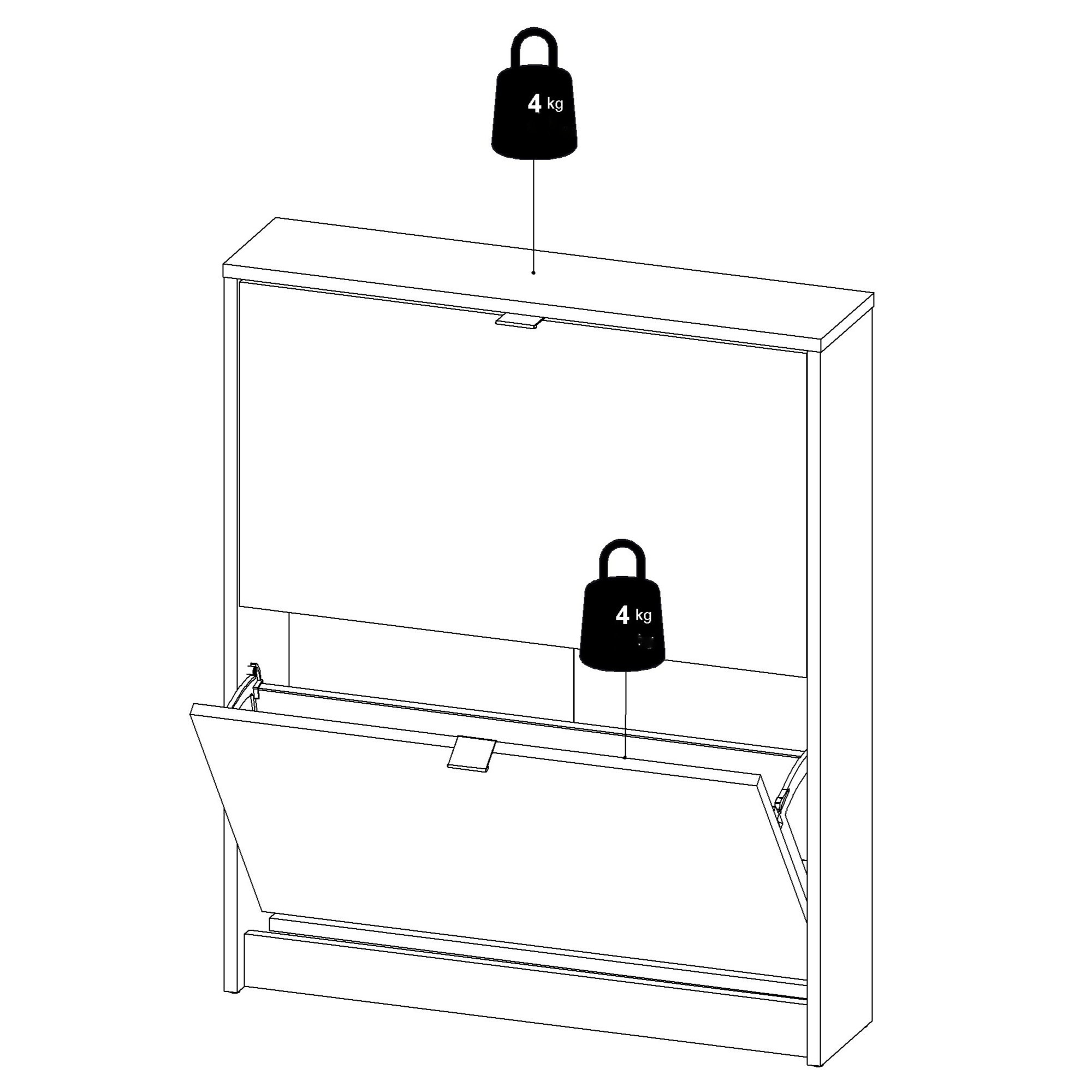 Za 2 výklopnými dvířky se nachází praktický úložný prostor pro vaše oblíbené boty. Protože zde boty budou mít své stálé místo, už nikdy se nestane, že budete zoufale hledat obuv, kterou budete chtít doplnit váš outfit.