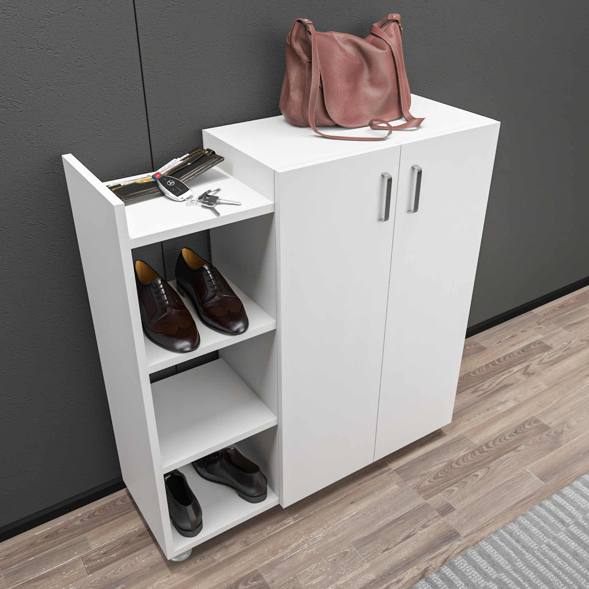 Botníková komoda ASUS bude praktickým pomocníkem v miniaturní předsíni, kde potřebujete především elegantně uschovat boty nebo odložit tašky, došlou poštu nebo klíče.