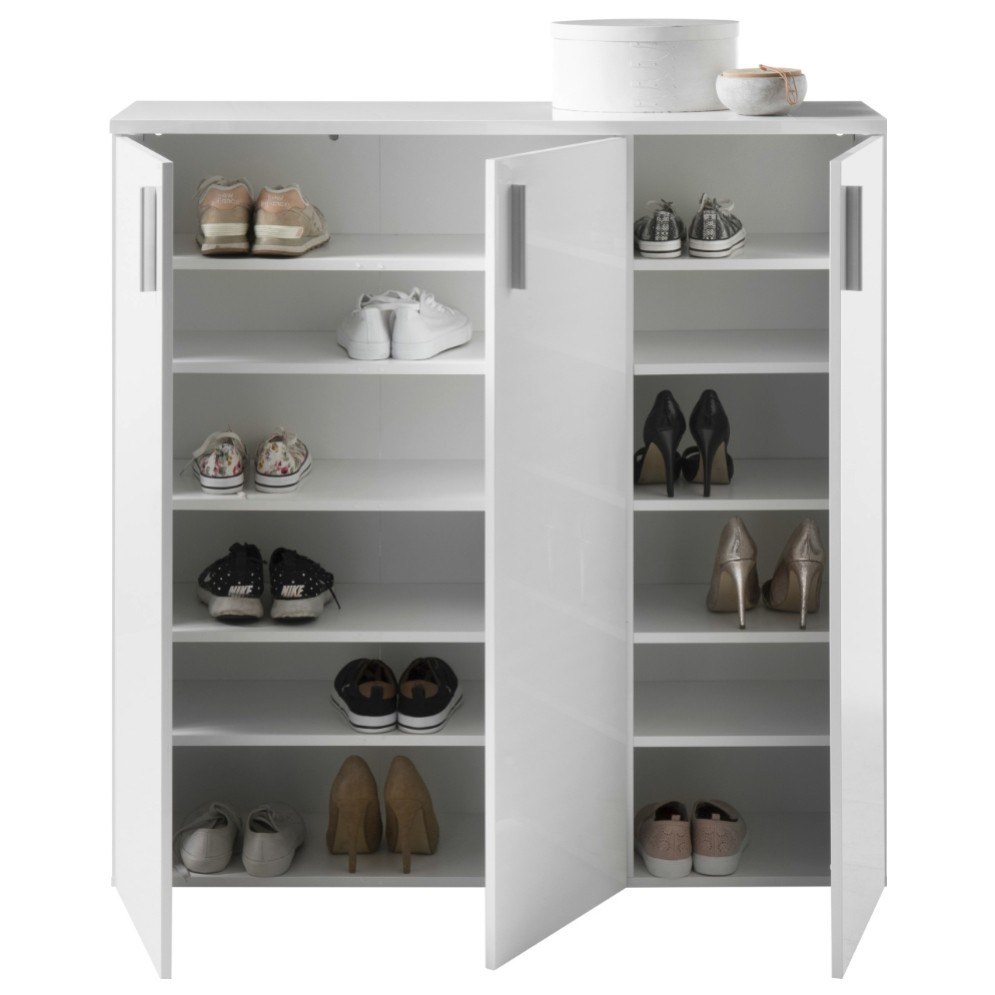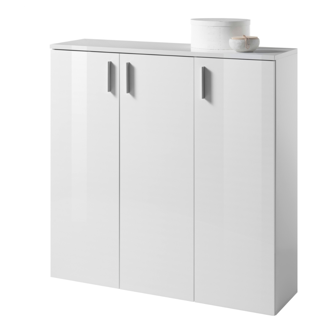 Čistý vzhled dvířek v lesku působí na první pohled téměř neviditelně, uvnitř botníku se ale skrývá dostatek úložného prostoru na boty. Za dvířky snadno umístíte na police všechny ty boty, které by se jen tak válely po zemi a vaše předsíň bude působit uklizeně.