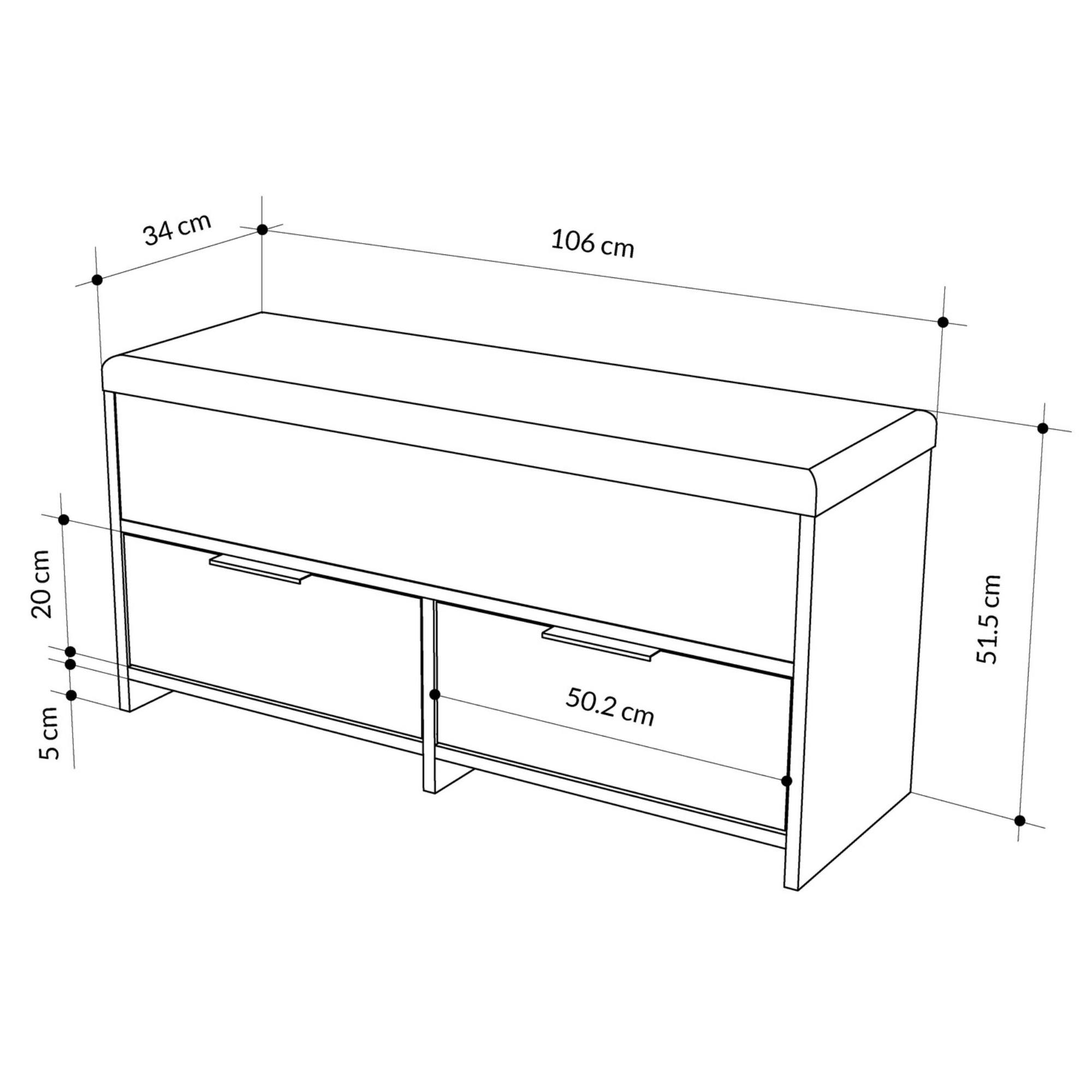 Úložný prostor se ukrývá nejen za 2 výklopnými dvířky, která jsou pro snadnější manipulaci vybavena úchyty, ale i pod výklopným sedákem. Na výrobu lavice byla využita laminovaná dřevotřísková deska, pro kterou je charakteristická nenáročná udržovatelnost. Měkký pěnový sedák, který je zárukou pohodlného sezení, je čalouněný hladkou tkaninou.