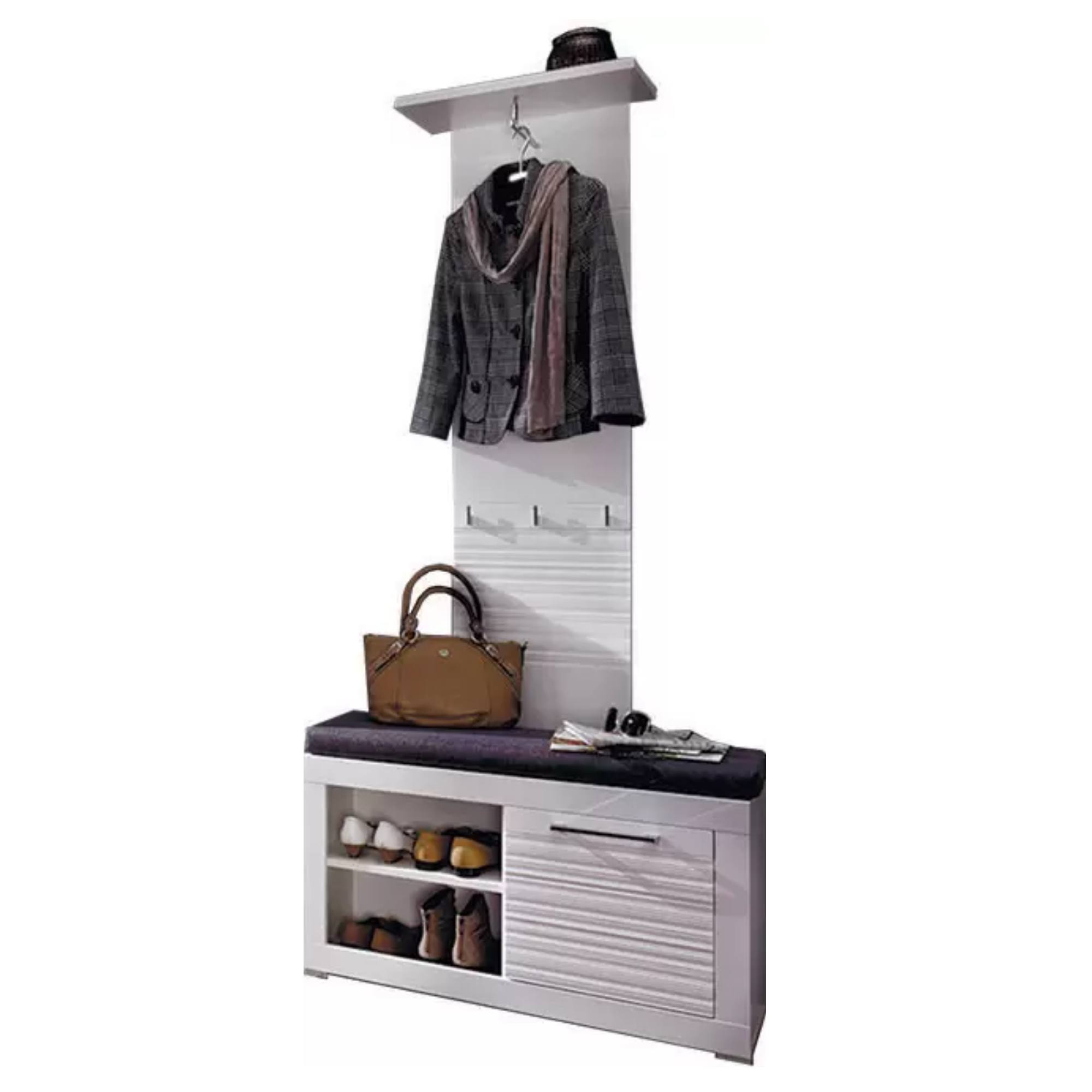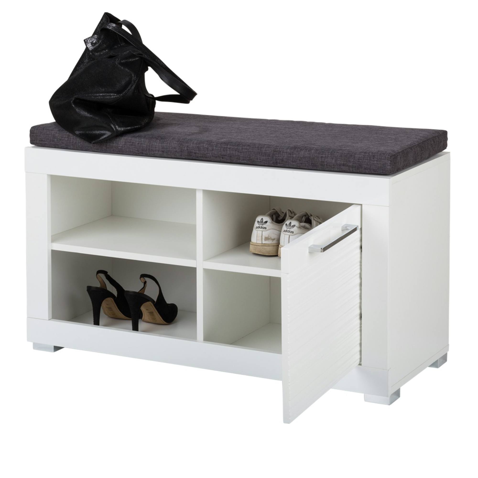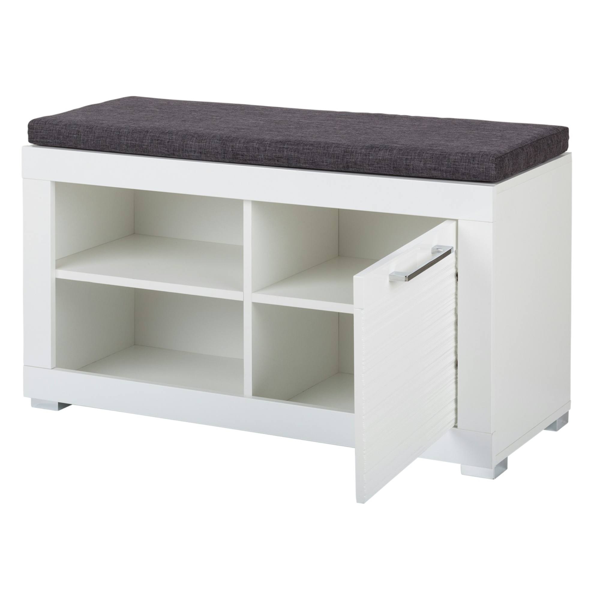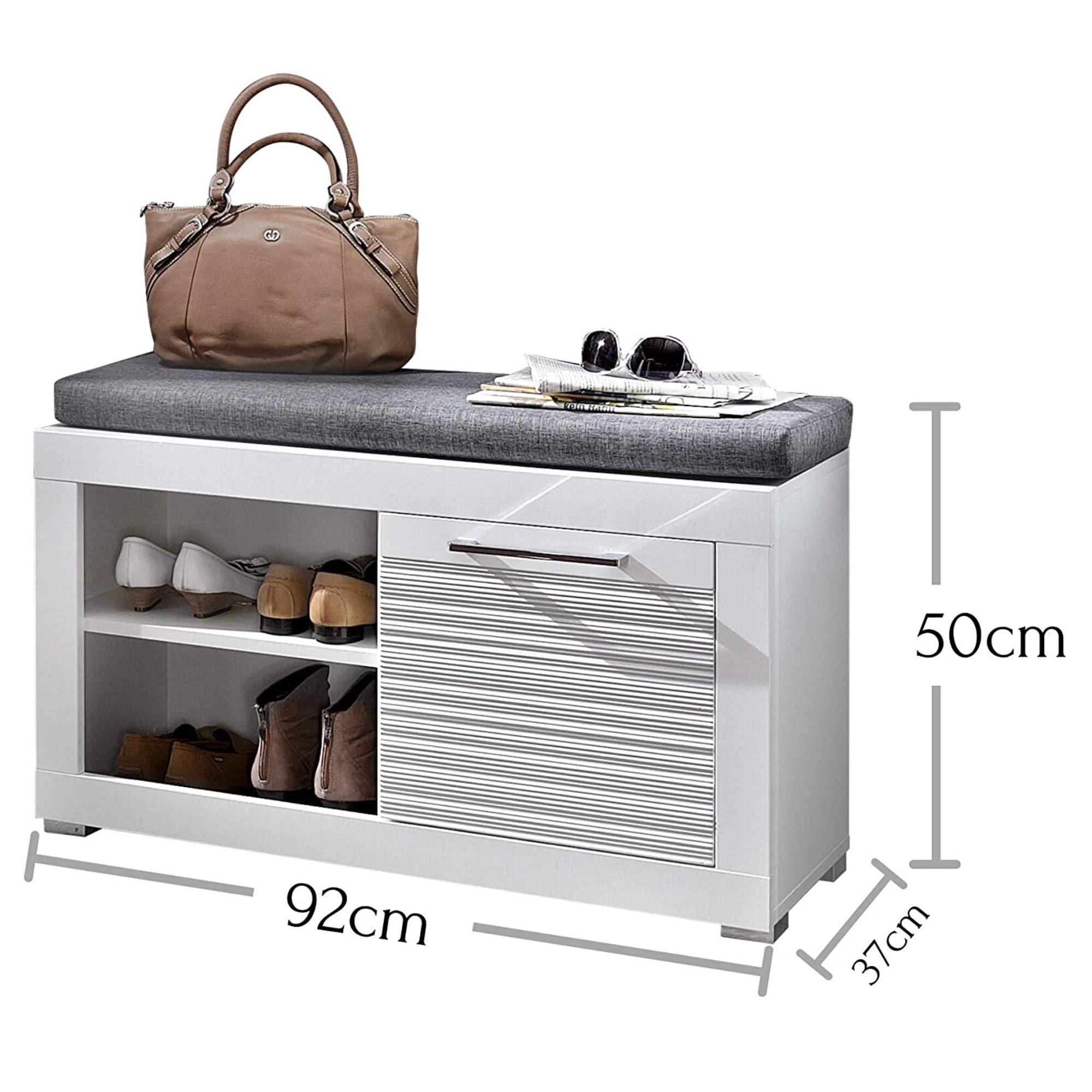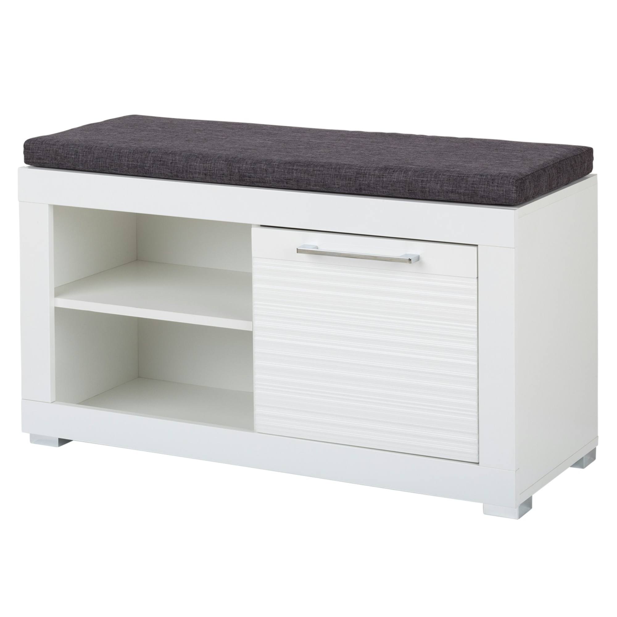 Univerzální barevné provedení ve vysokém lesku opticky prosvětlí a zvětší sebemenší vstupní prostor. Lavice nabízí úložný prostor s jednou uzavíratelnou skříňkou s policí a otevřeným dílem s jednou vloženou policí. Ideální místo pro boty i přípravky na ošetření obuvi. Velkou předností lavice je polstrovaný sedák, který zajistí dokonalé pohodlí při obouvání a zouvání.