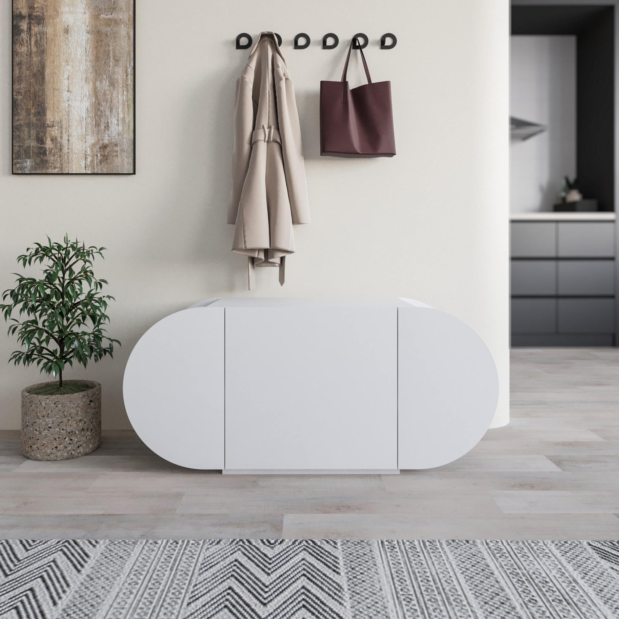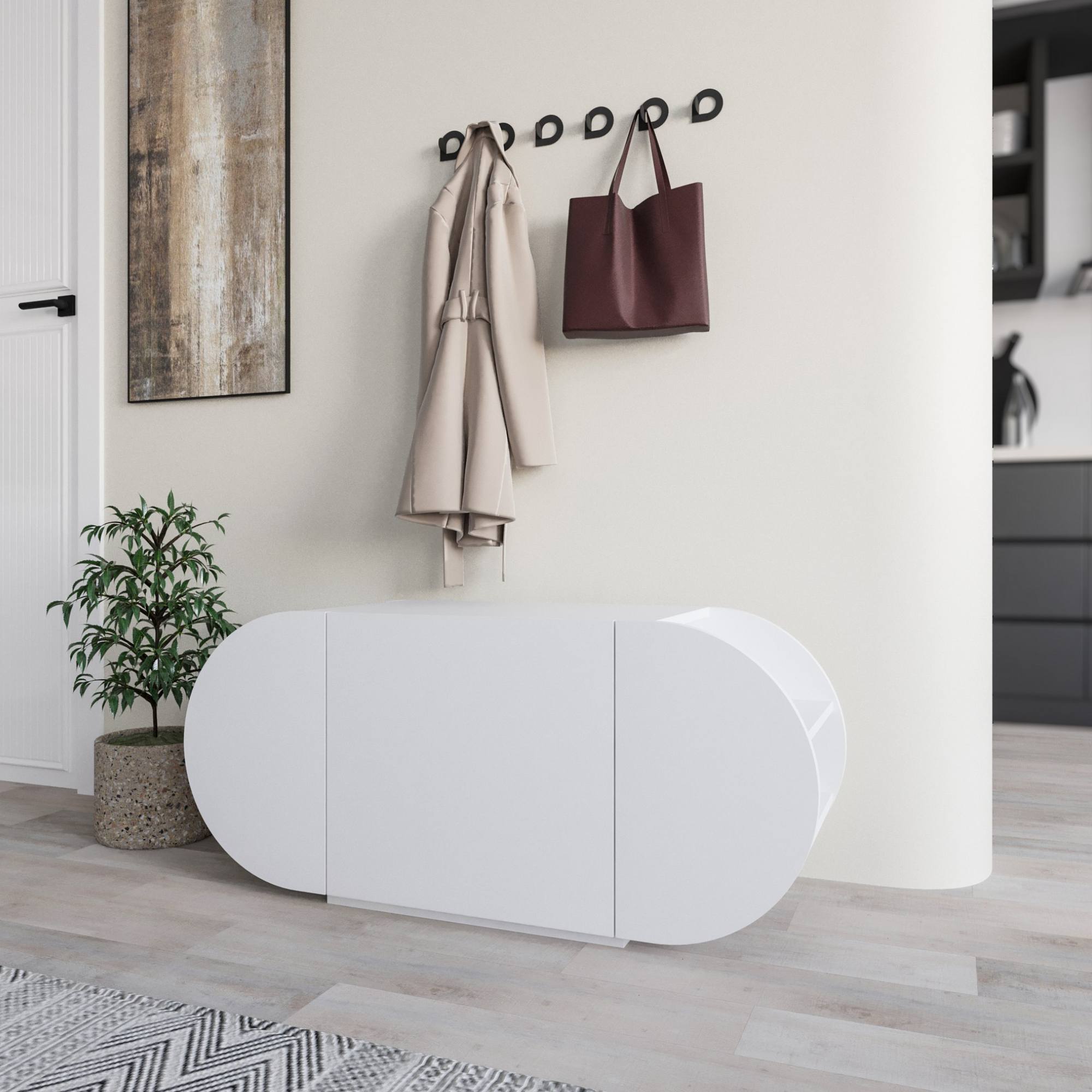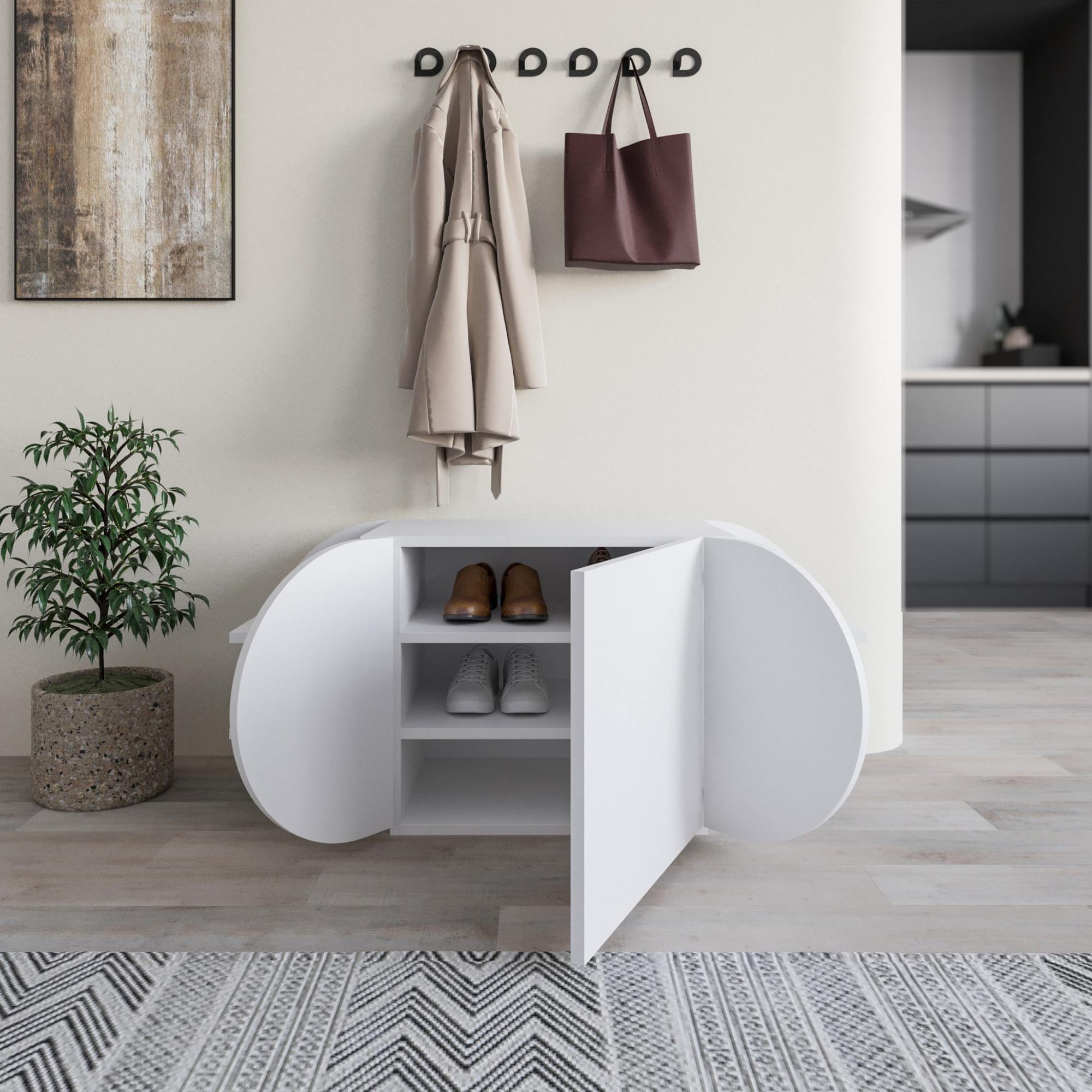 Kromě 2 vložených polic ukrytých za otočnými dvířky disponuje tato lavice i dalšími policemi, které jsou umístěny na jejich bocích. Na její výrobu byla využita laminovaná dřevotřísková deska, pro kterou je charakteristická nenáročná udržovatelnost.