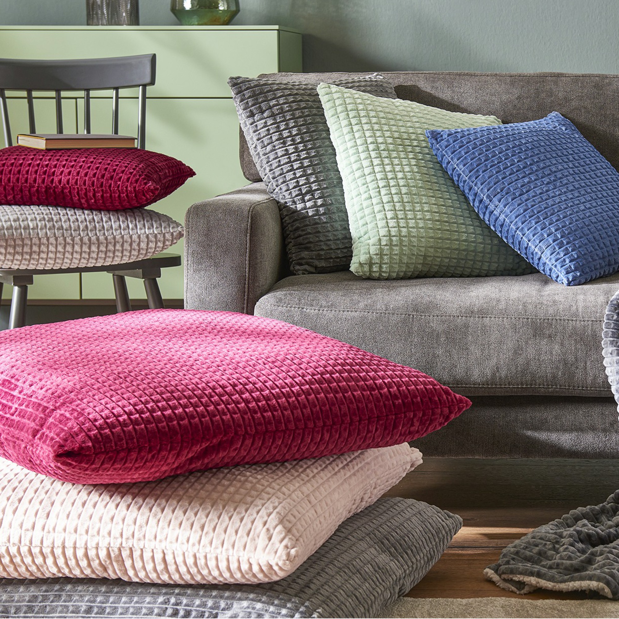 Zatočte s jednotvárností vašich pohovek, postelí či sedacích lavic! Dekorační polštářky LEXI oživí mnohdy ponurý vzhled jednobarevného nábytku. Okouzlující barvy a vaflový vzor působí slavnostně a elegantně. Snímatelný potah lze prát při teplotách do 30 °C.