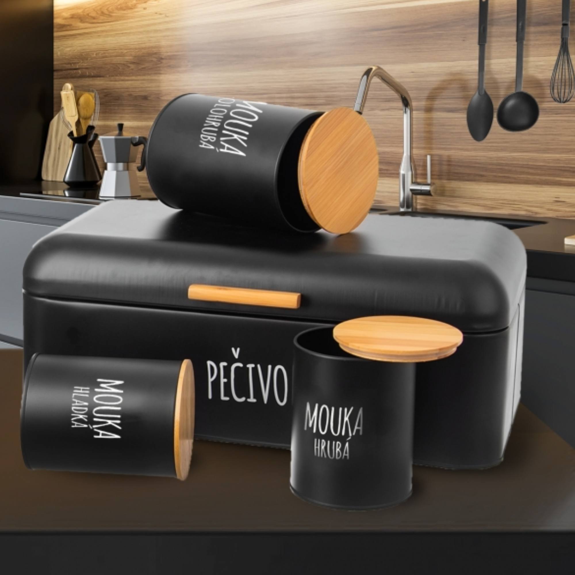 Dóza na hrubou mouku BLACK - černá/bambus