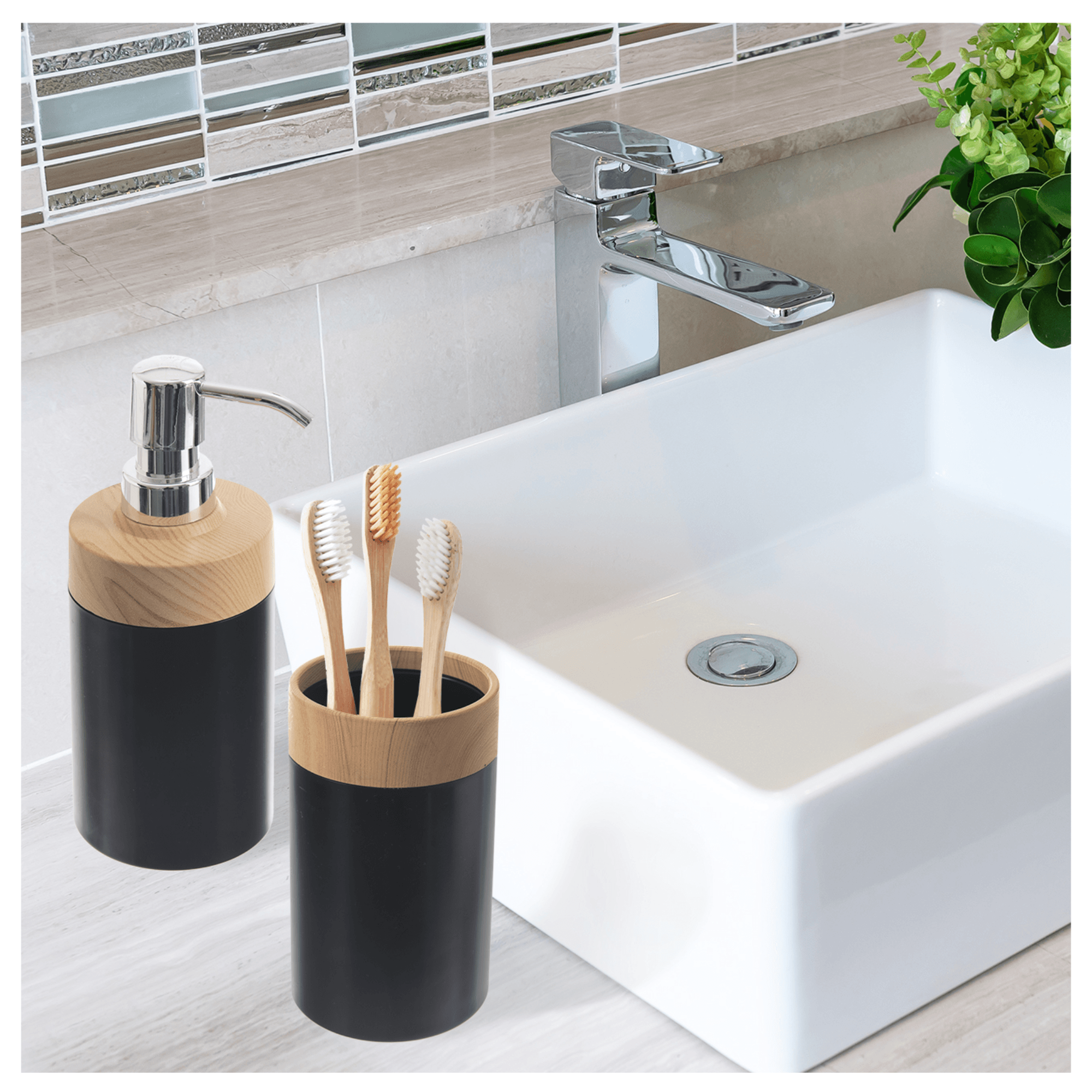 Praktický držák BLACK je praktickým pomocníkem do koupelny, díky kterému budou mít i kartáčky na zuby své stálé místo a nebudou pohozené na okraji umyvadla. Kvalitní zpracování z plastu je vyvedeno v kombinaci černé barvy a přírodního dekoru. Svým vzhledem tak snadno zapadne do jakéhokoli stylu interiéru.