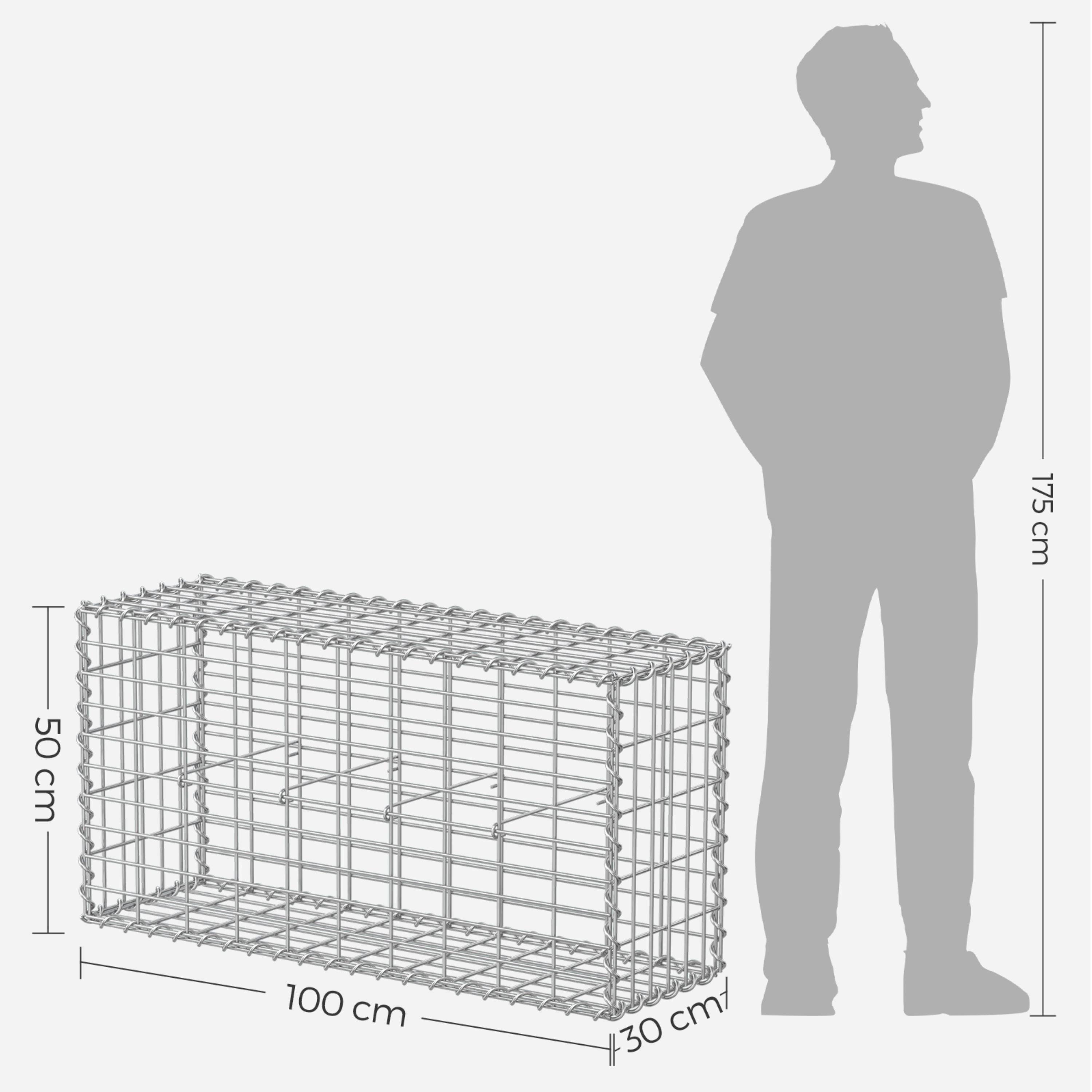 Gabionový koš CAGE - stříbrná, 100x30x50 cm