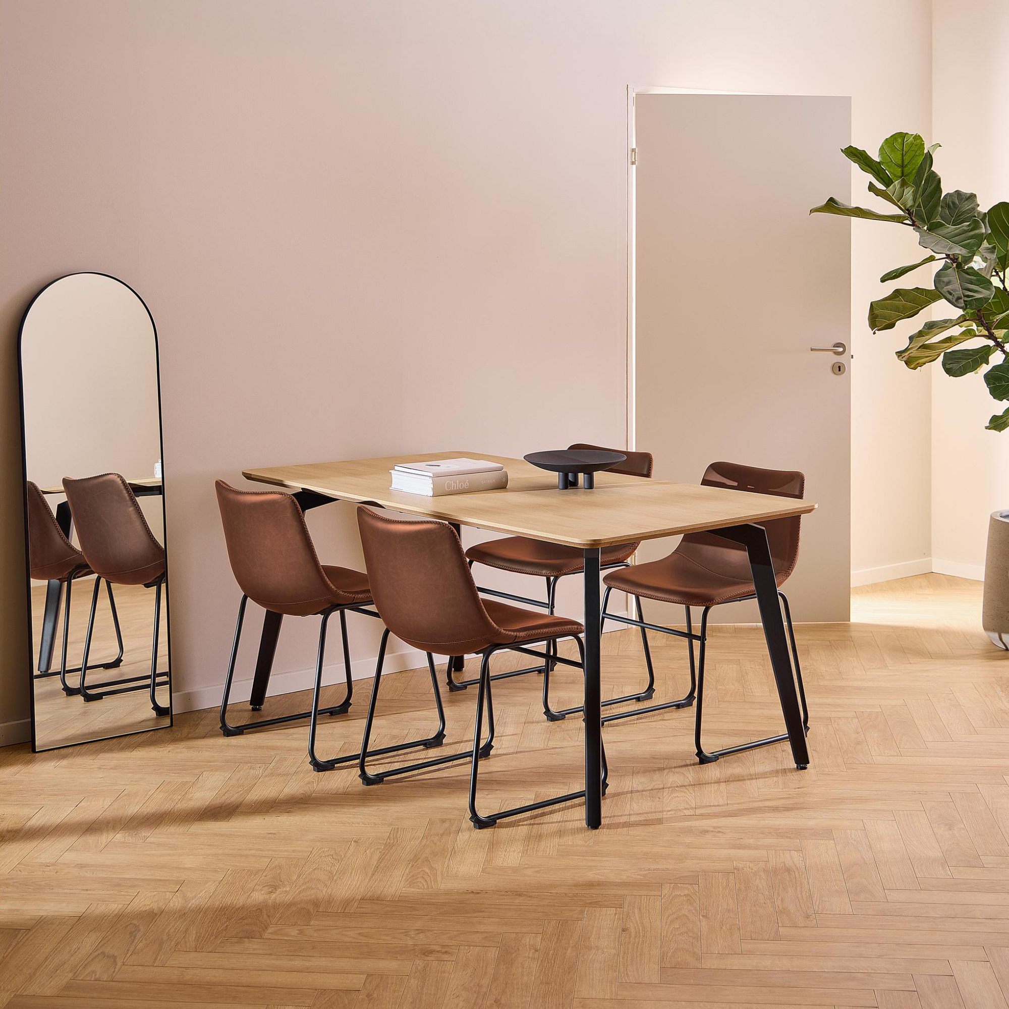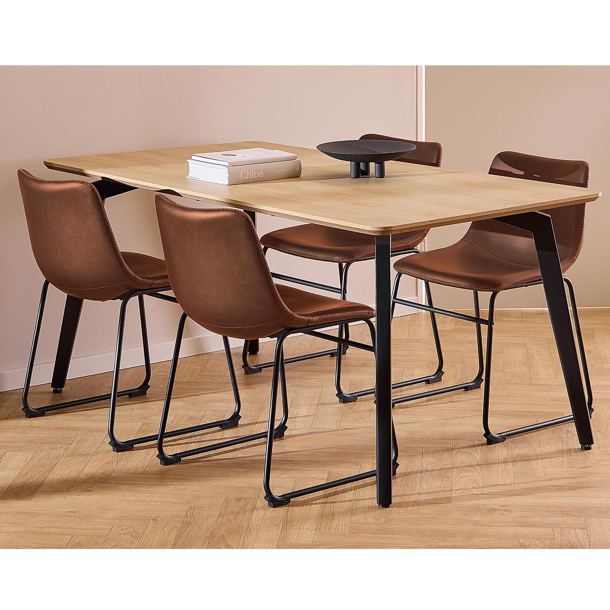 Pevné a stabilní nohy stolu a židlí jsou vyrobeny z práškově lakované ocele. Horní deska je z laminovaného dřevotřískového materiálu, který je nenáročný na údržbu. O pohodlné sezení se starají měkké pěnové sedáky. Židle jsou čalouněny syntetickou kůží.