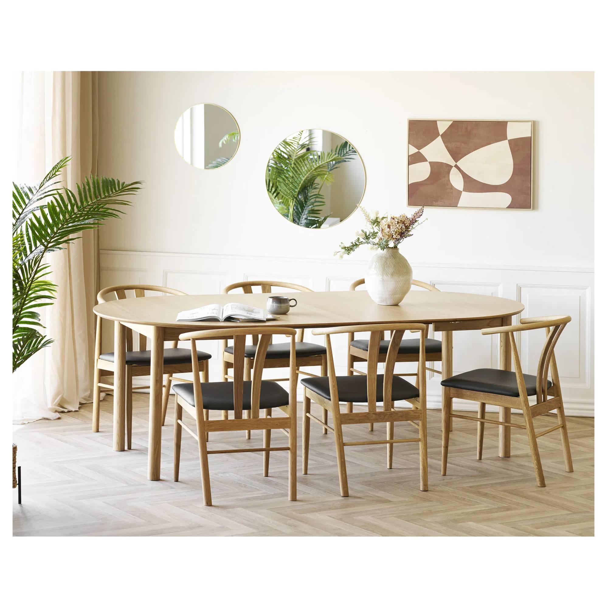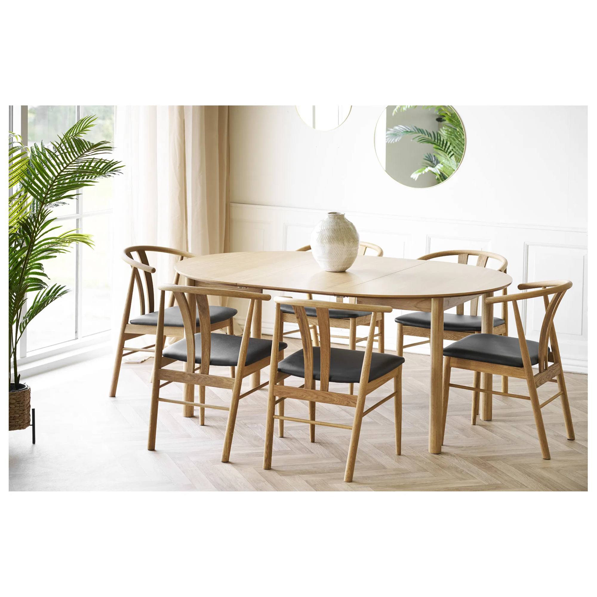 Na výrobu jídelního stolu BENDOBIRG byla využita snadno udržovatelná dřevovláknitá deska MDF, která je doplněna dubovou dýhou.