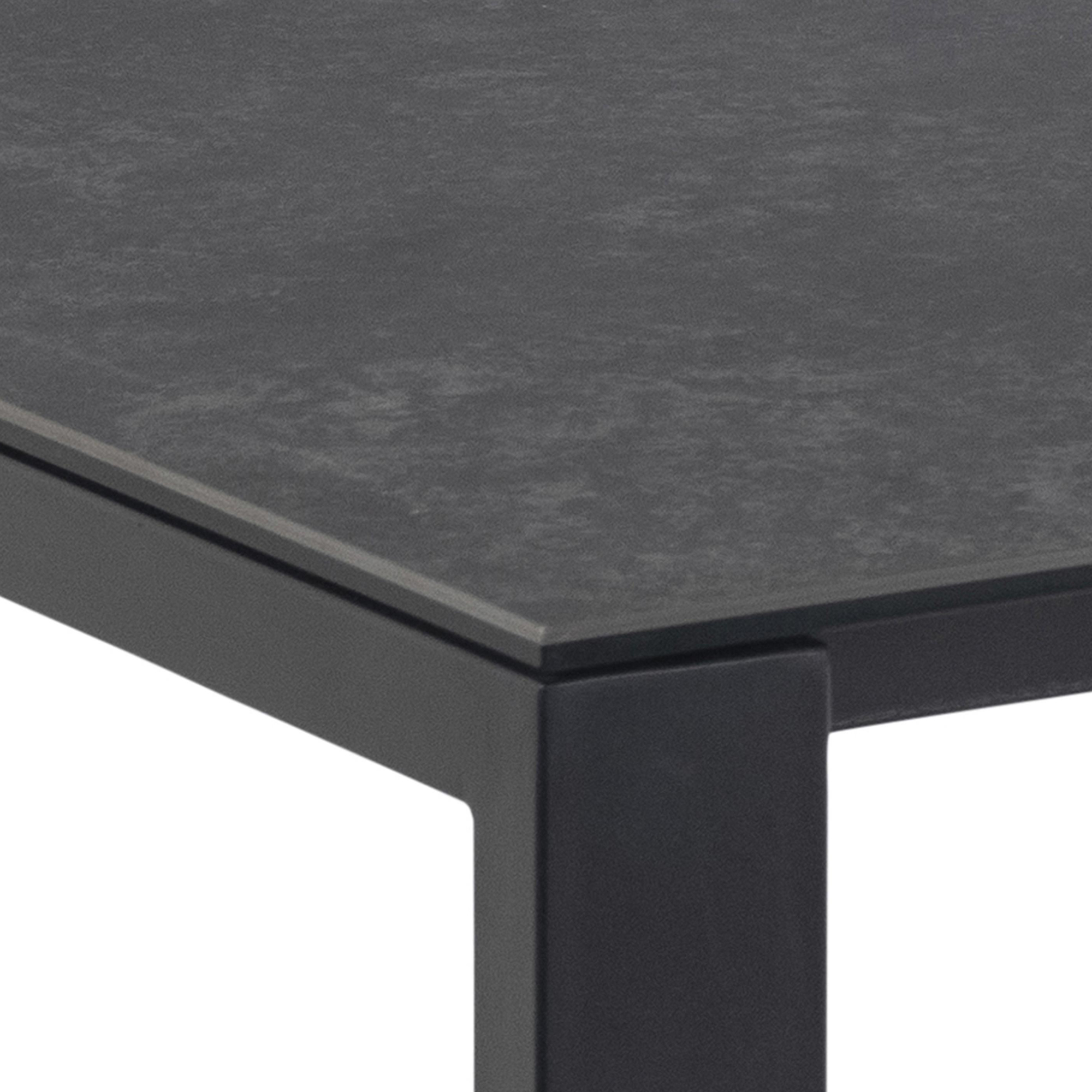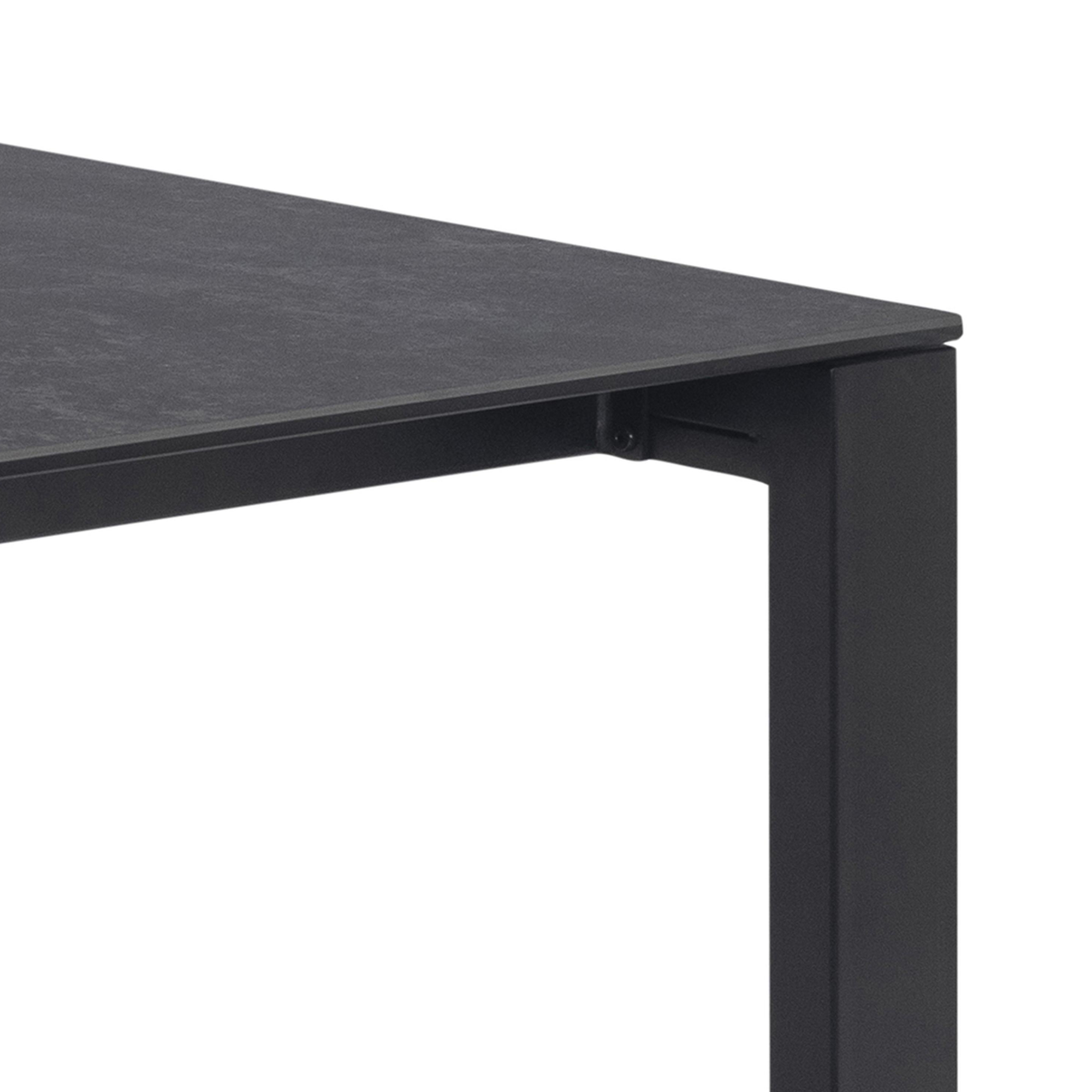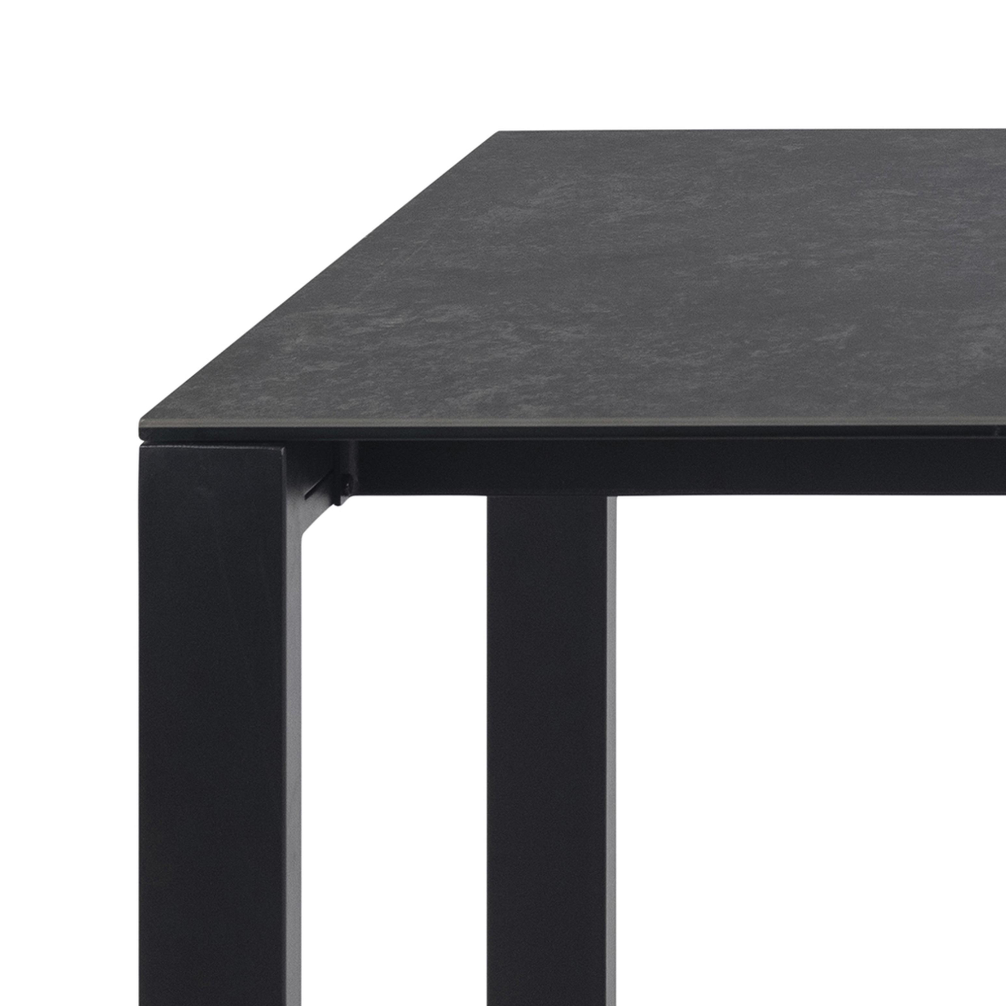 Stůl disponuje pevnými kovovými nohami pokrytými matným lakem, které jsou zárukou jeho stability. Jeho tenká deska je vyrobena z kombinace keramiky a skla a je odolná vůči teplu. Tyto materiály jsou nenáročné na údržbu, a tak nebude starostlivost o tento stůl vyžadovat mnoho času ani námahy.