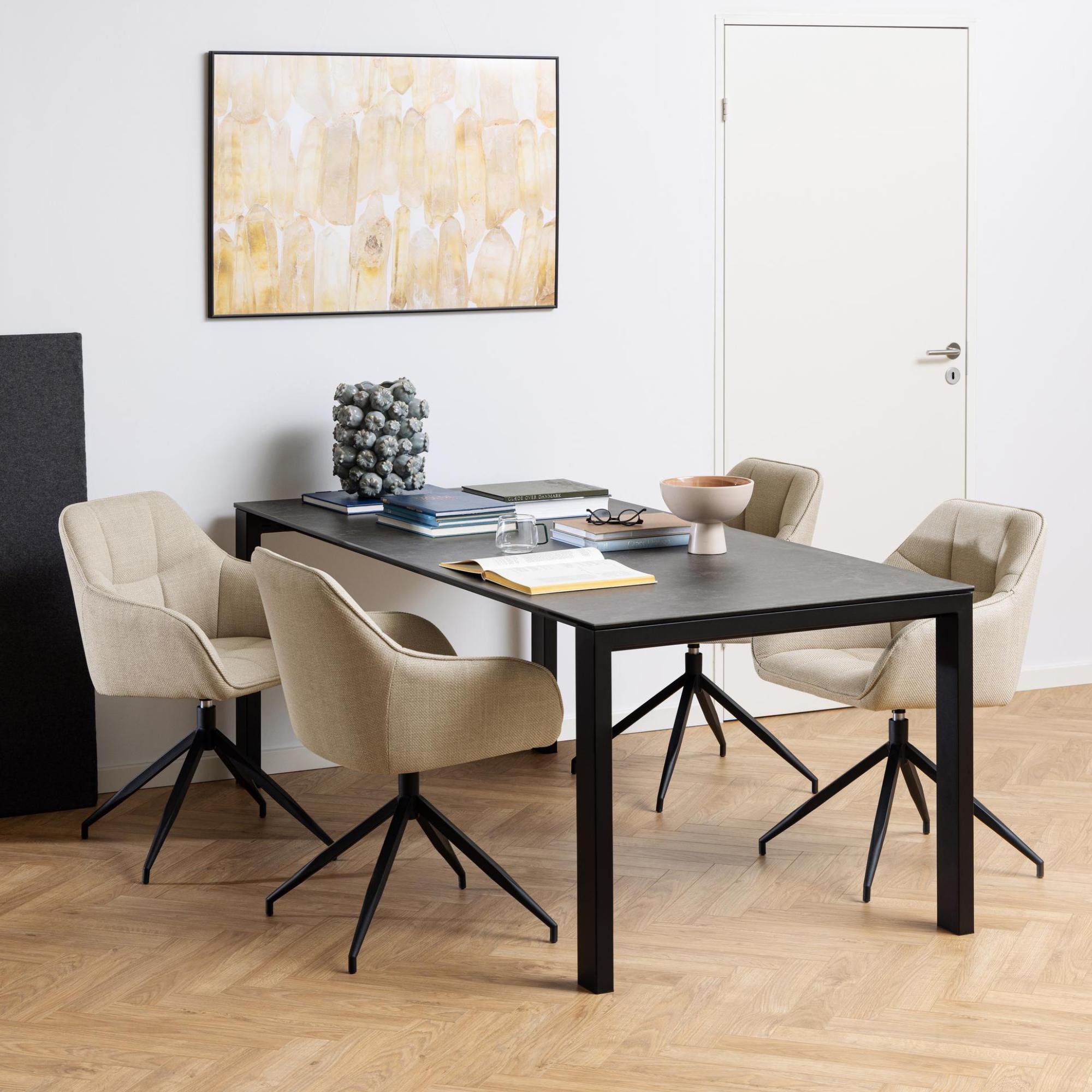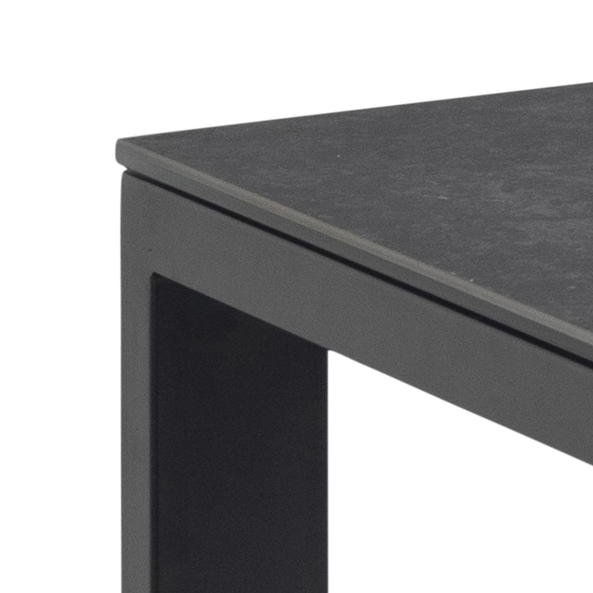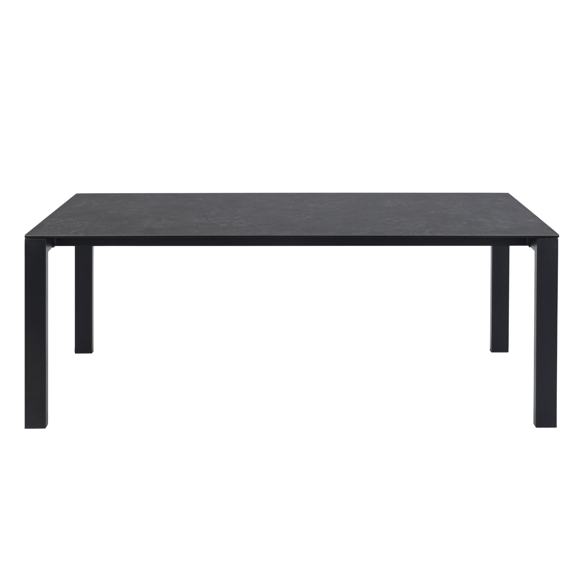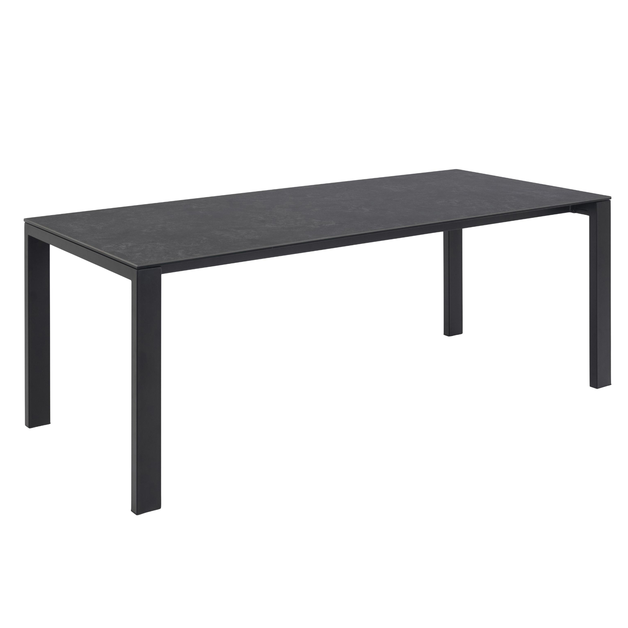 Stůl disponuje pevnými kovovými nohami pokrytými matným lakem, které jsou zárukou jeho stability. Jeho tenká deska je vyrobena z kombinace keramiky a skla a je odolná vůči teplu. Tyto materiály jsou nenáročné na údržbu, a tak nebude starostlivost o tento stůl vyžadovat mnoho času ani námahy.