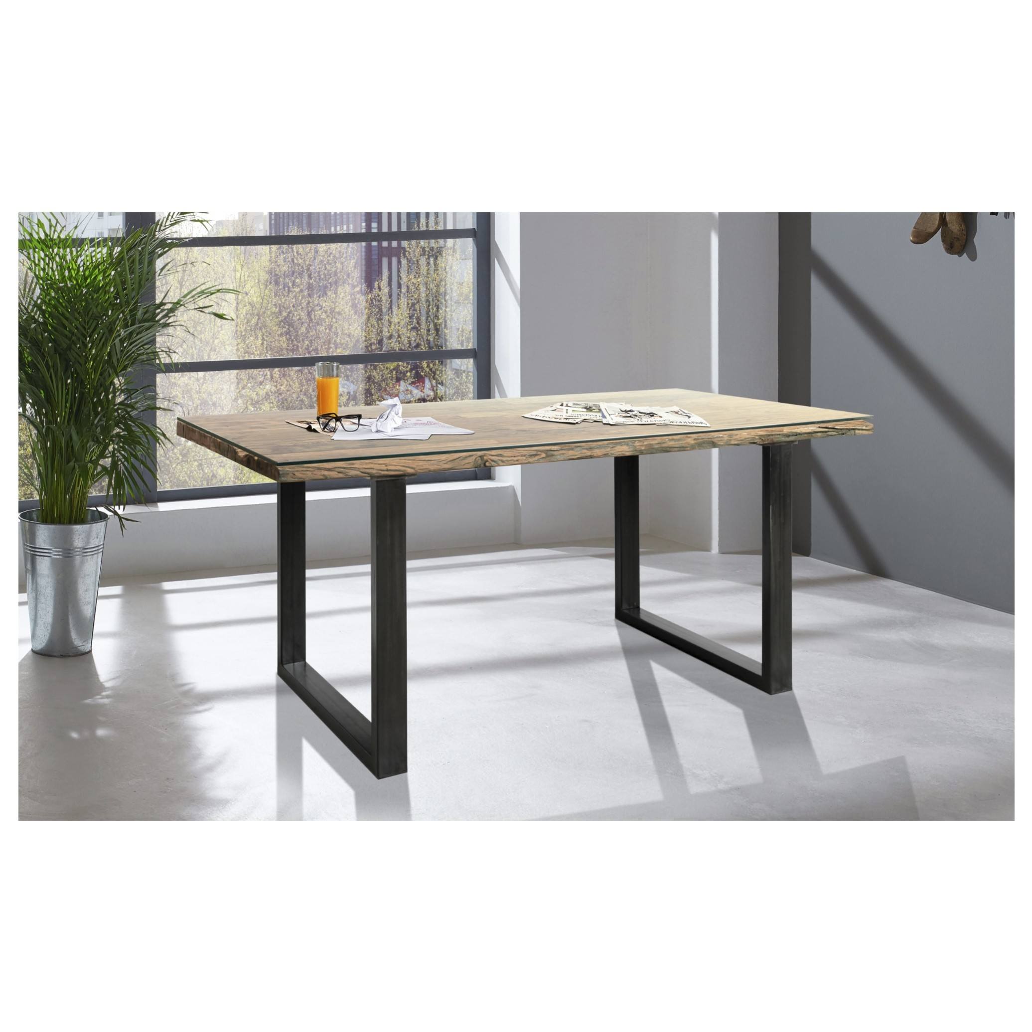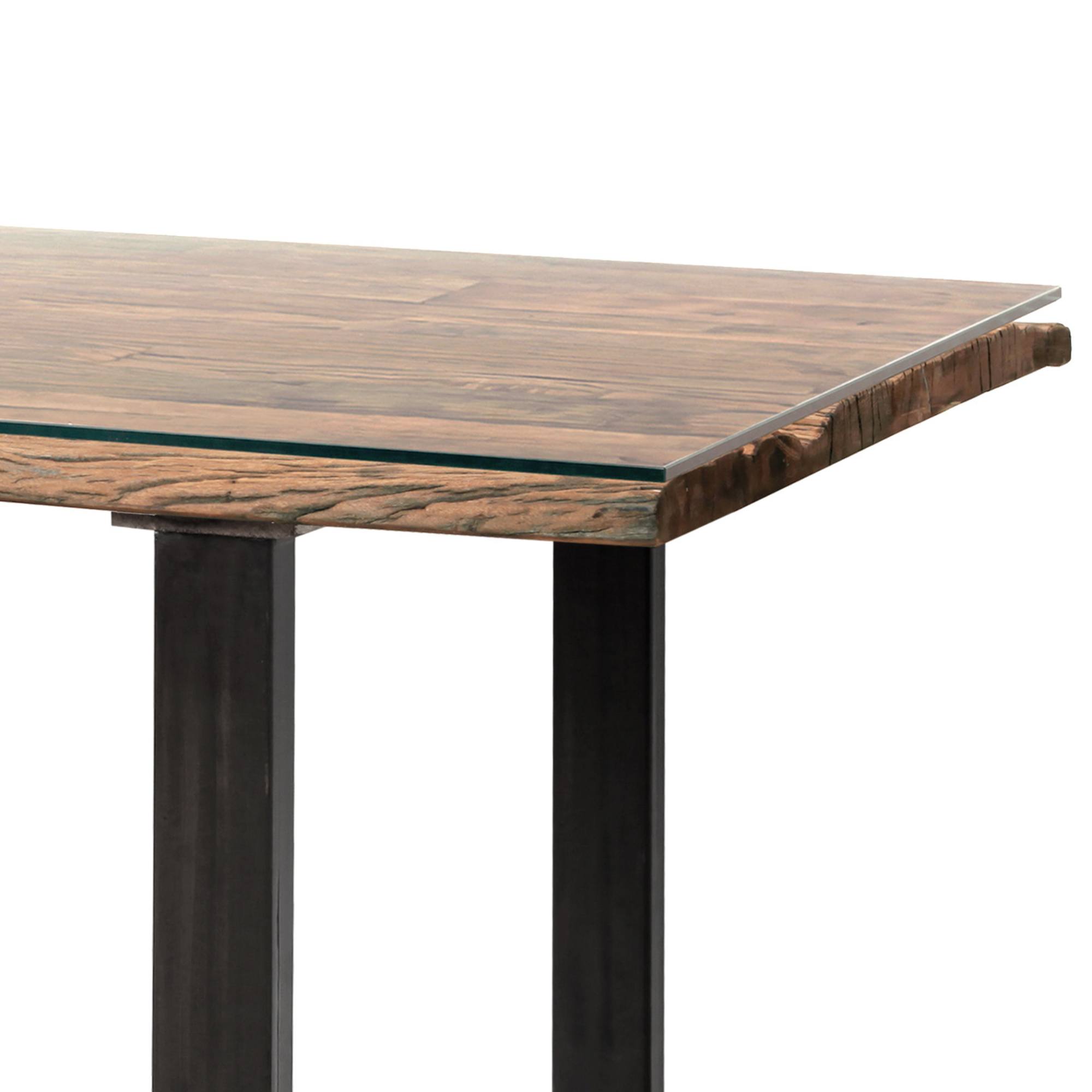 Stůl disponuje prostornou deskou stolu o velikost 180 x 90 cm, která je pokryta odolným sklem. Masivní vzhled doplňují kovové nohy, jež stolu dodávají vysokou stabilitu.