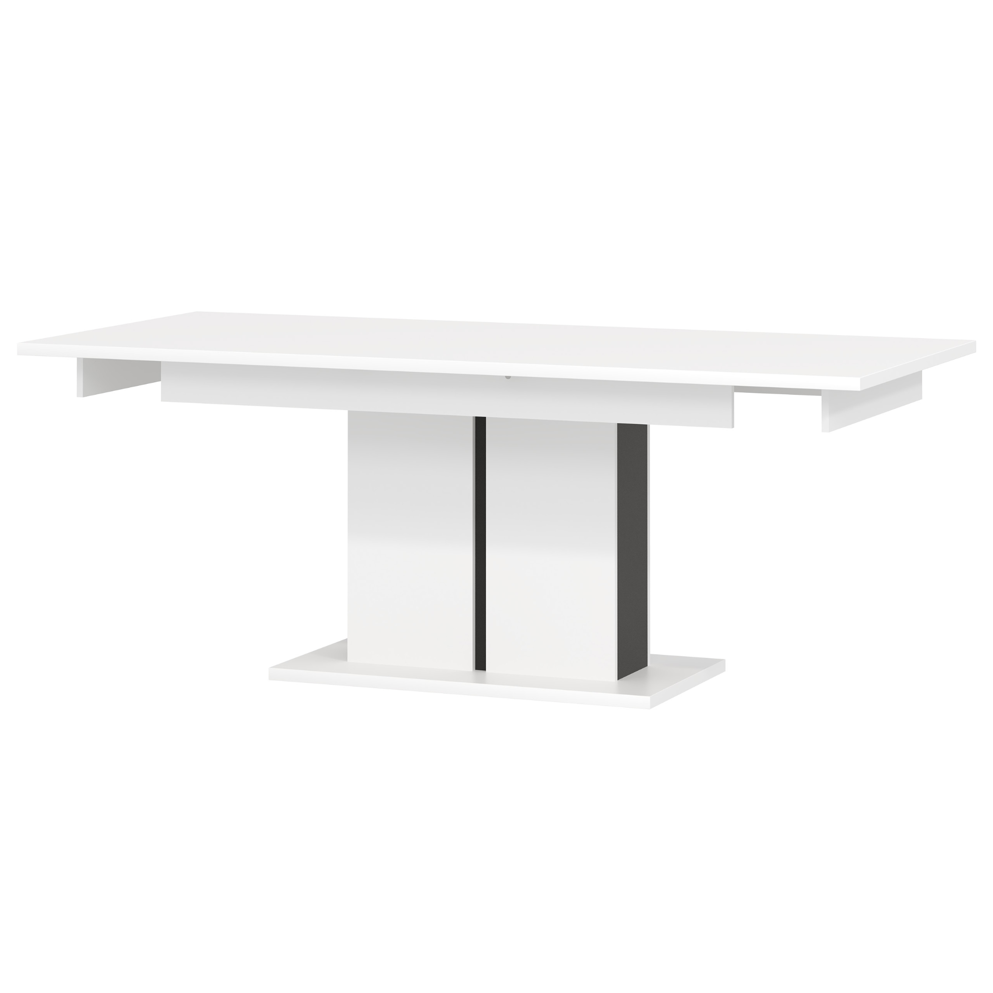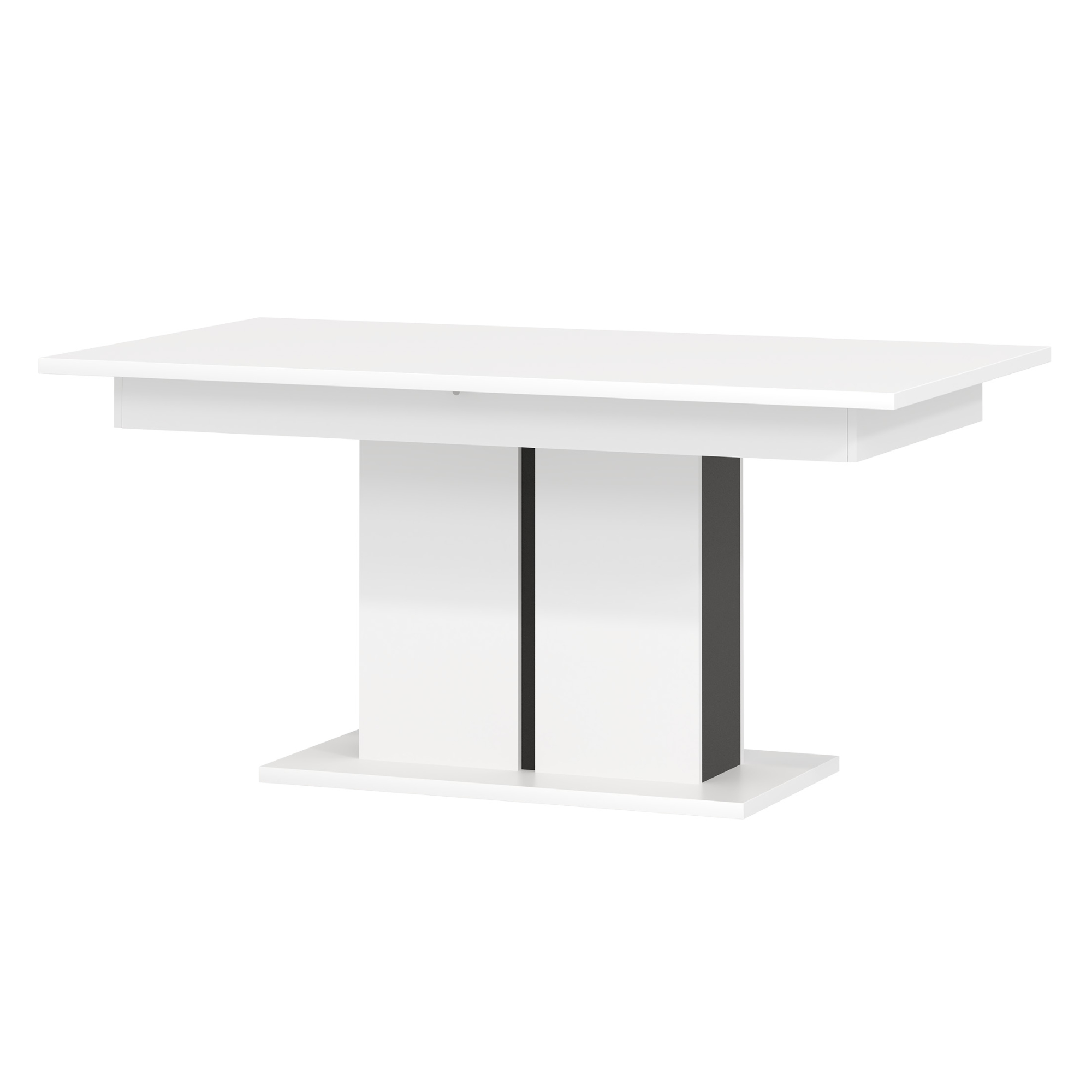 Jídelní stůl GRACIA skvěle zapadne do každé moderní kuchyně či jídelny. Vyrobený je z laminovaného dřevěného materiálu, pro který je typická snadná udržovatelnost i dlouhá životnost. Díky možnosti rozložení na 200 cm stůl hravě pohostí celou rodinu či přátele. Maximální stabilitu zajišťuje středová noha na pevné základně. Celkový moderní design je dotažen kontrastním barevným provedením, ve kterém se střetává bílá s černou. Jídelní stůl GRACIA se stane praktickou základnou každého stolování.