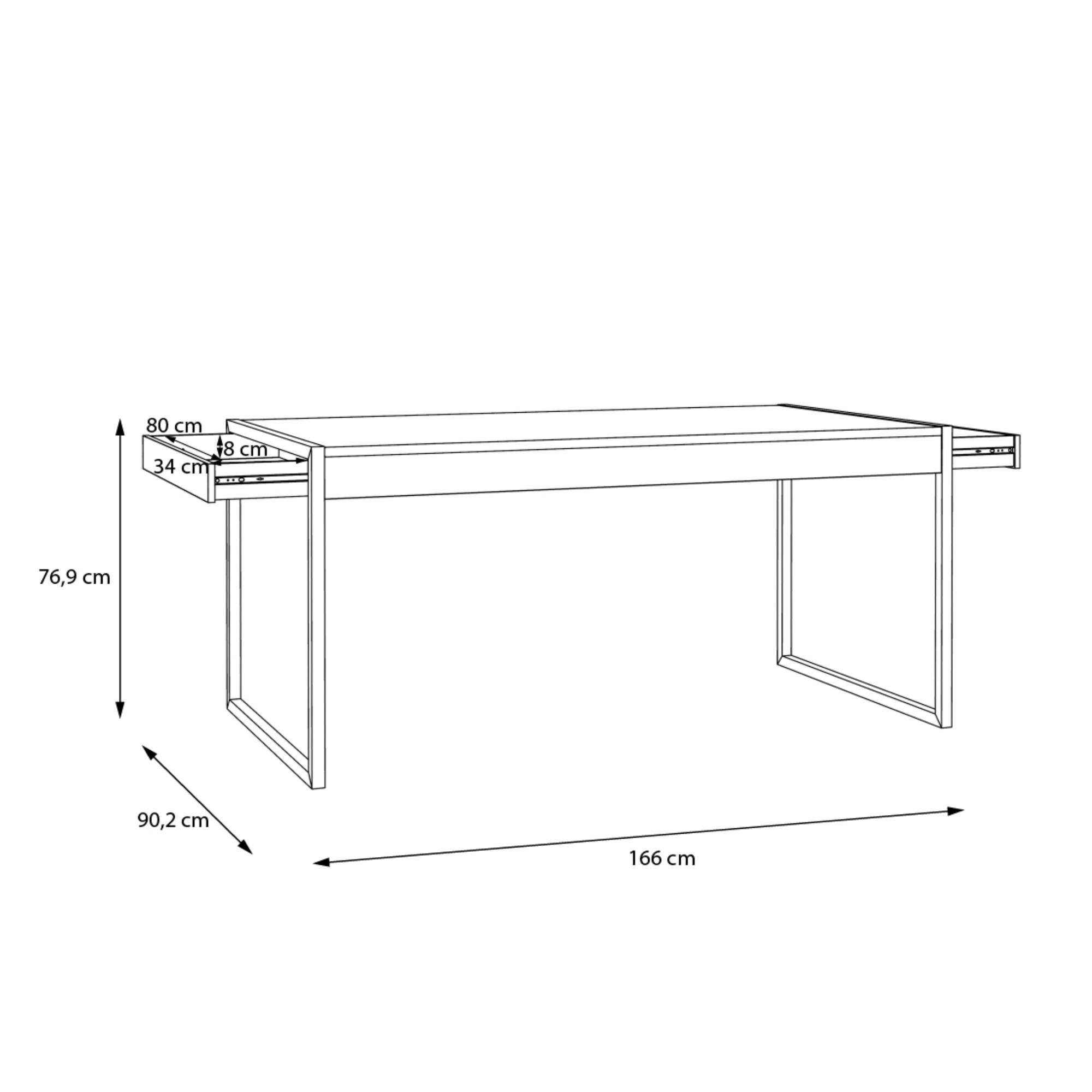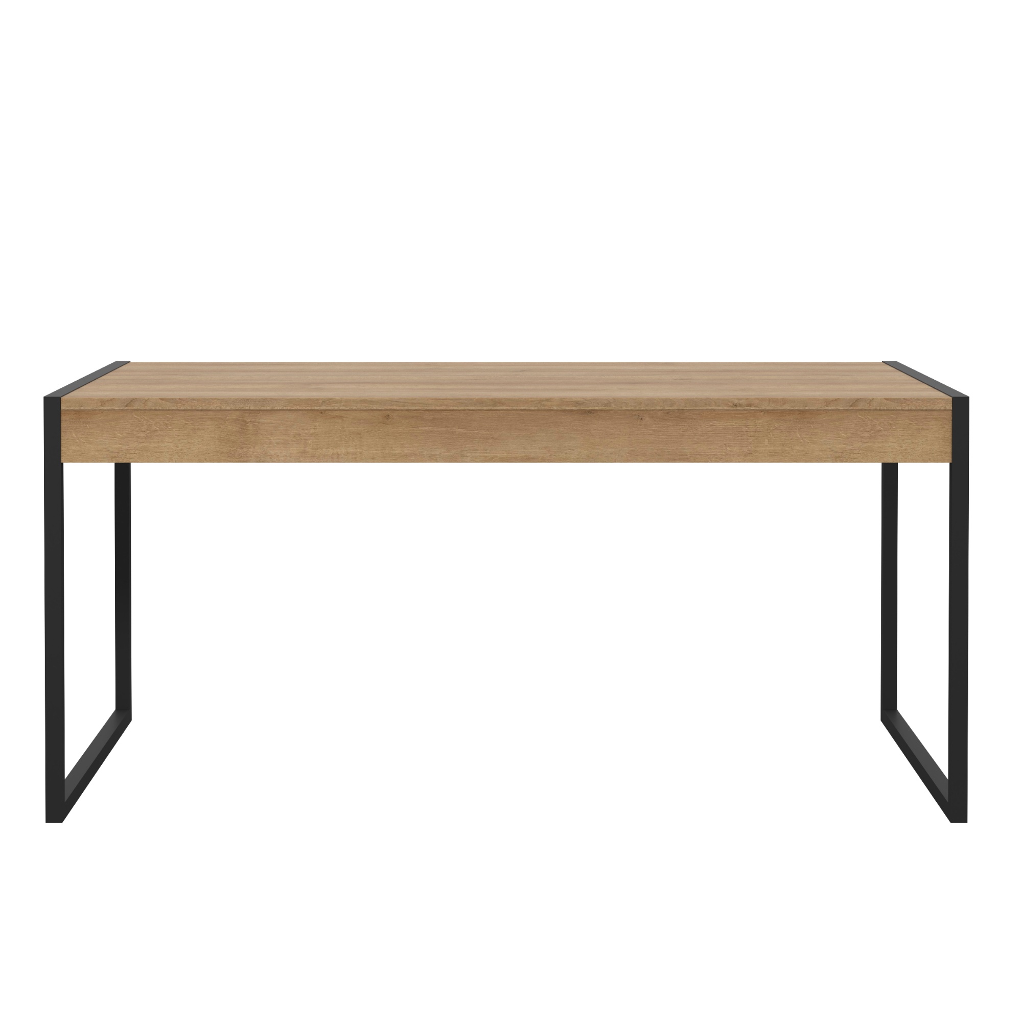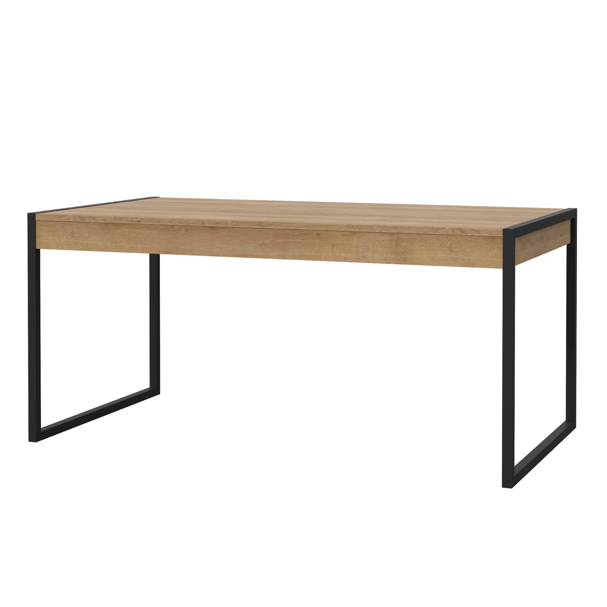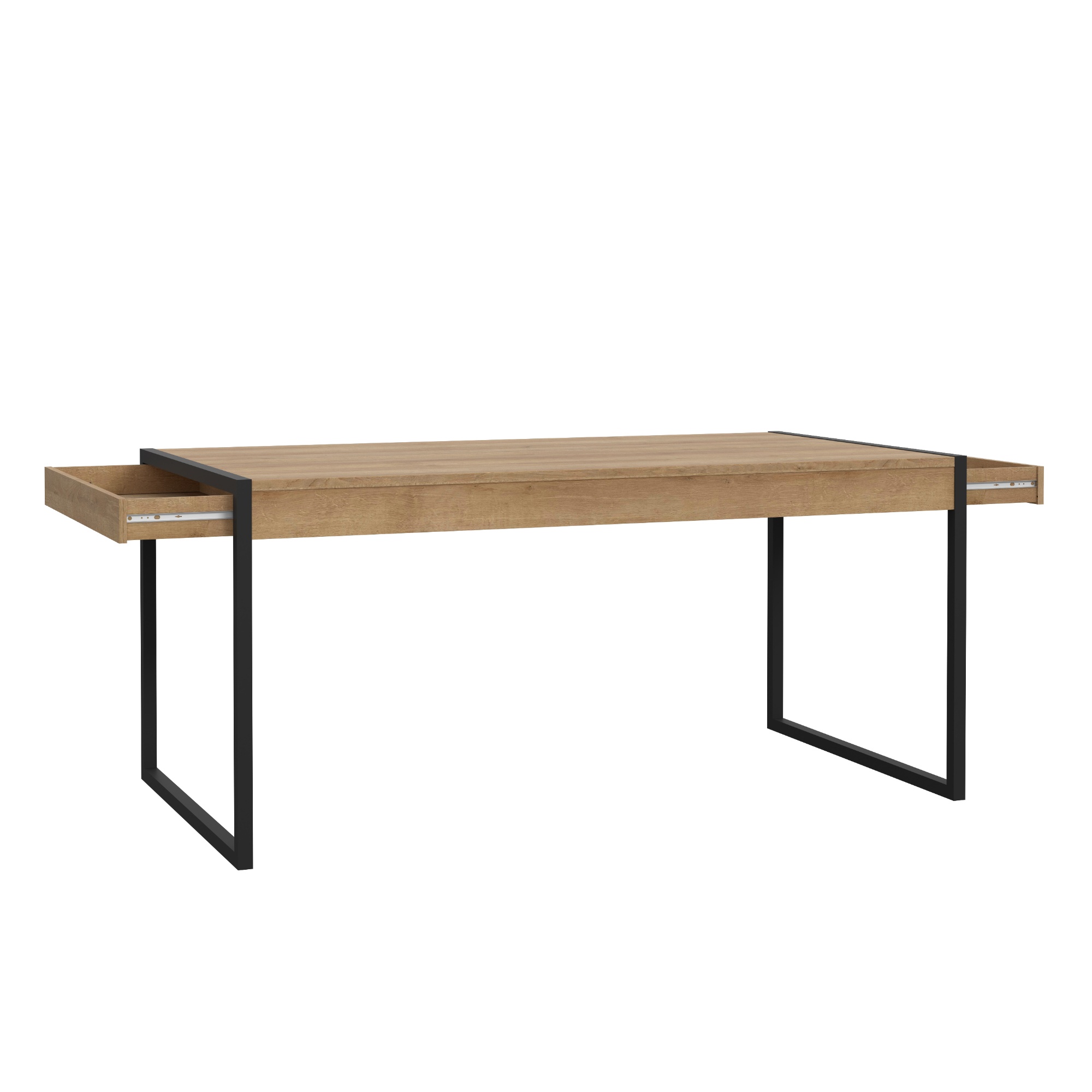 Moderní jídelní stůl HIGH ROCK vnese nádech industriálna do každé jídelny či kuchyně. Hlavní deska je vyrobena z laminovaného dřevěného materiálu, který se vyznačuje snadnou udržovatelností i dlouhou životností. Laděný je pak do dekoru dubu riviéra v přírodním odstínu. Maximální stabilitu zajišťuje černá kovová konstrukce. Kromě hlavní desky stolek disponuje dodatečným úložným prostorem v podobě dvou bočních zásuvek. Jídelní stůl HIGH ROCK skvěle zapadne do industriálně laděného interiéru.
