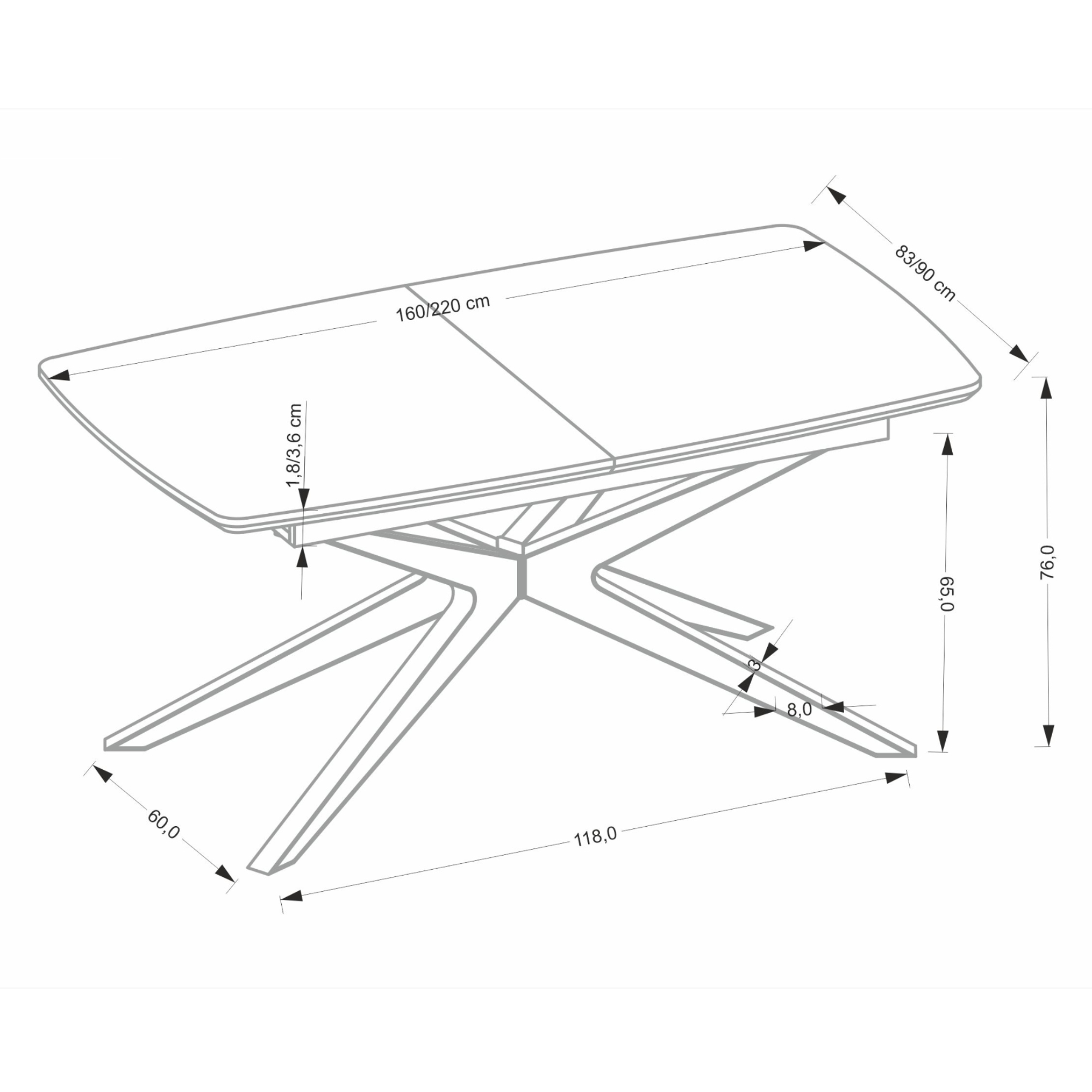 | Nastavitelná šířka desky stolu v rozmezí (cm): | 160 - 220 |
