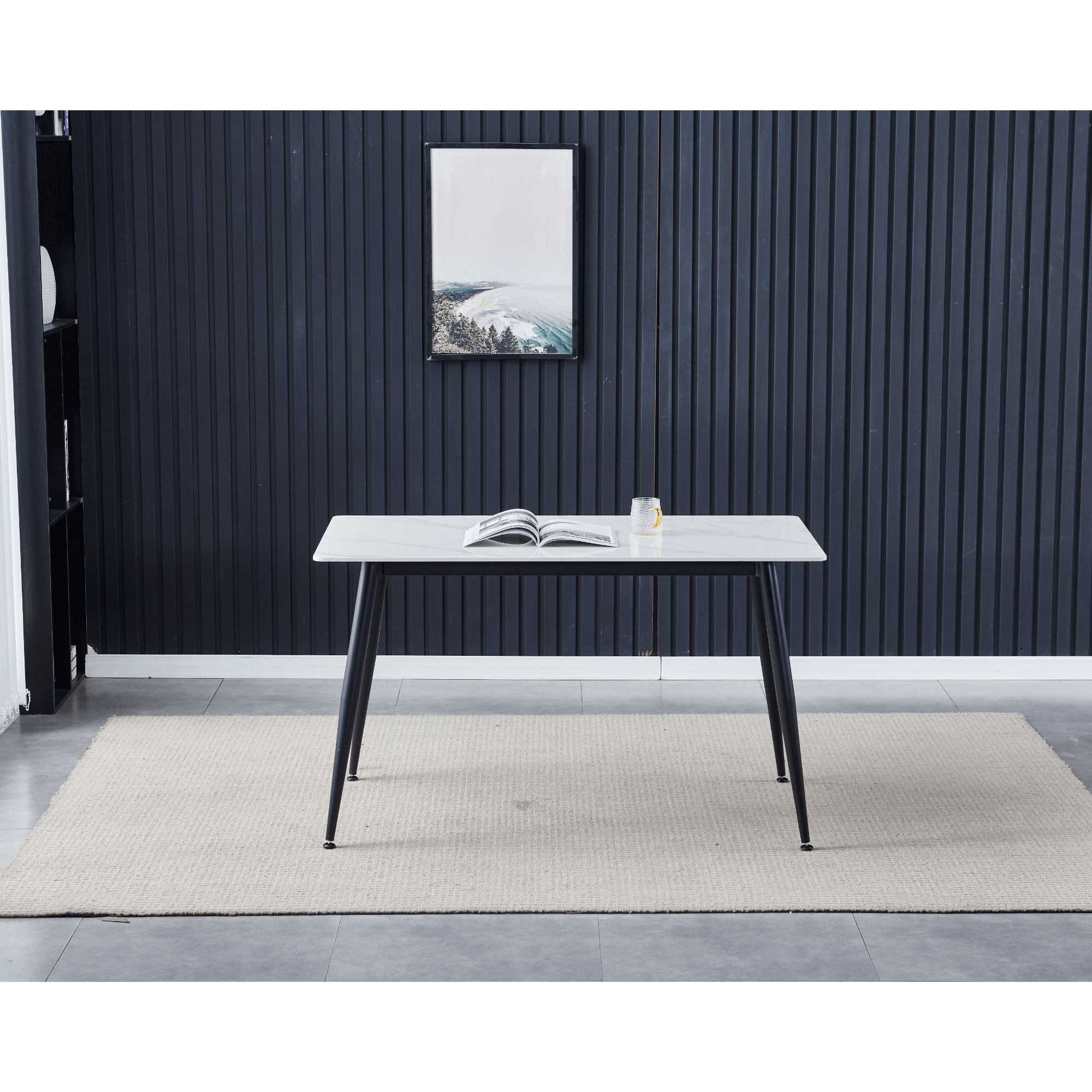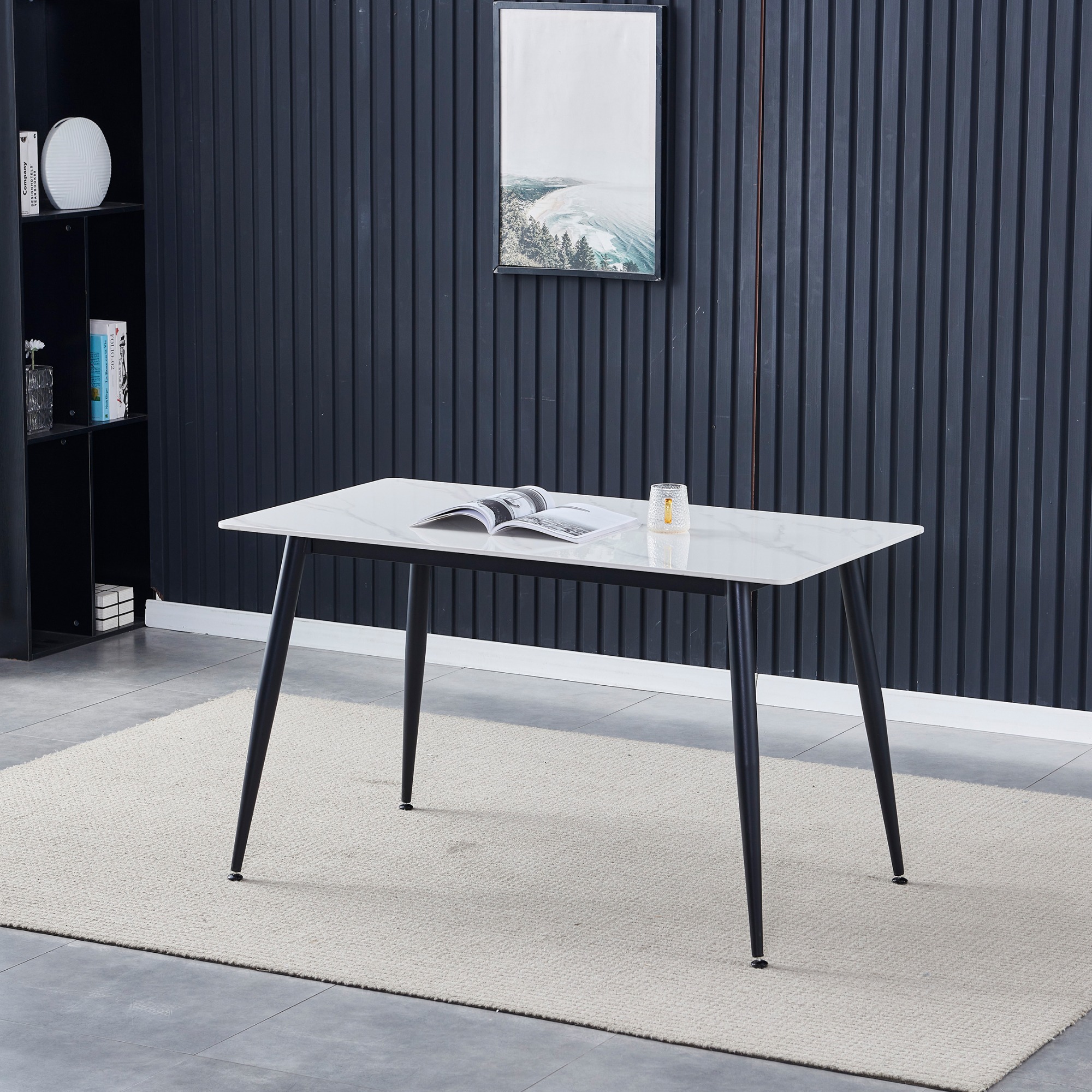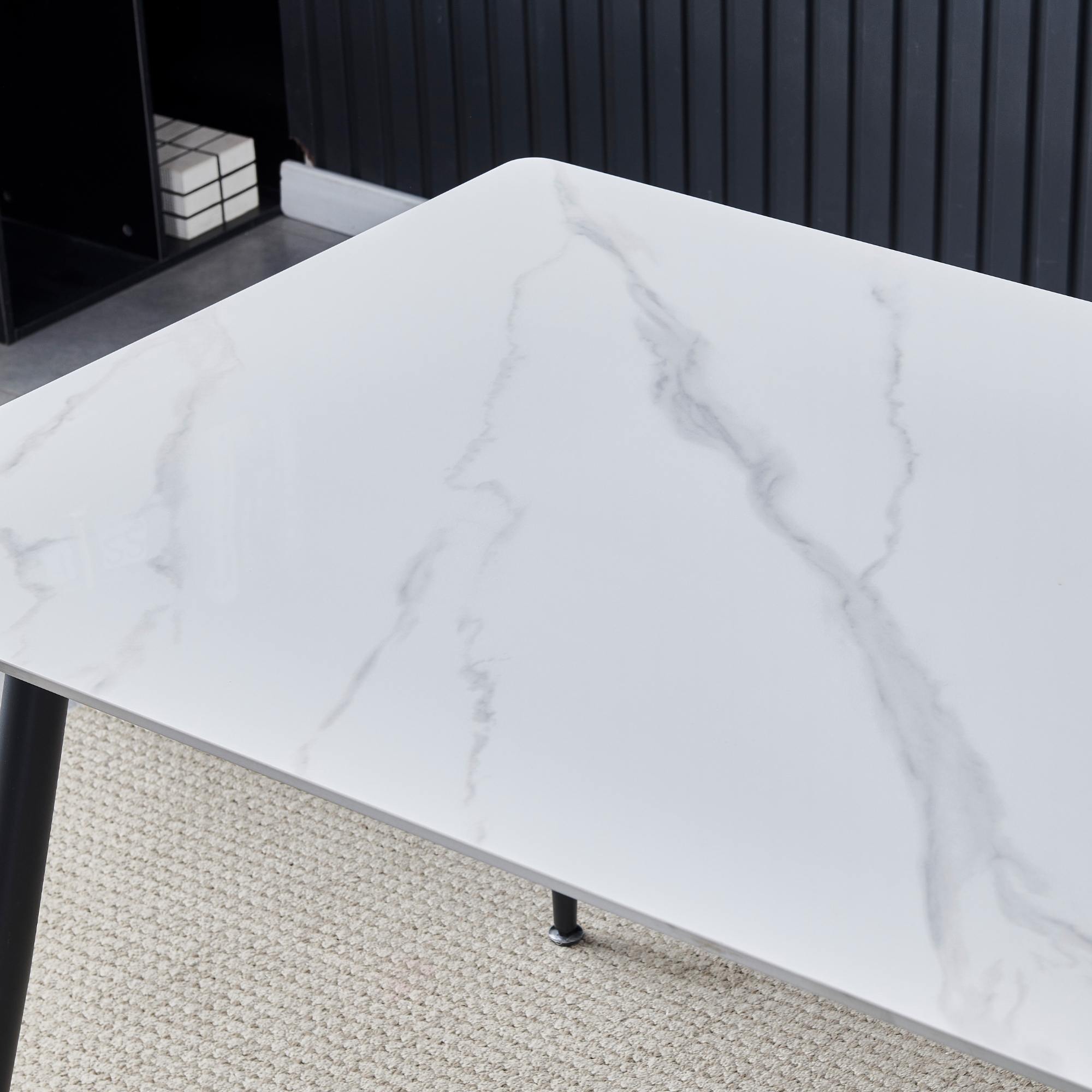 Jídelní stůl LUCIAN - bílý mramor/černá, šířka 130 cm