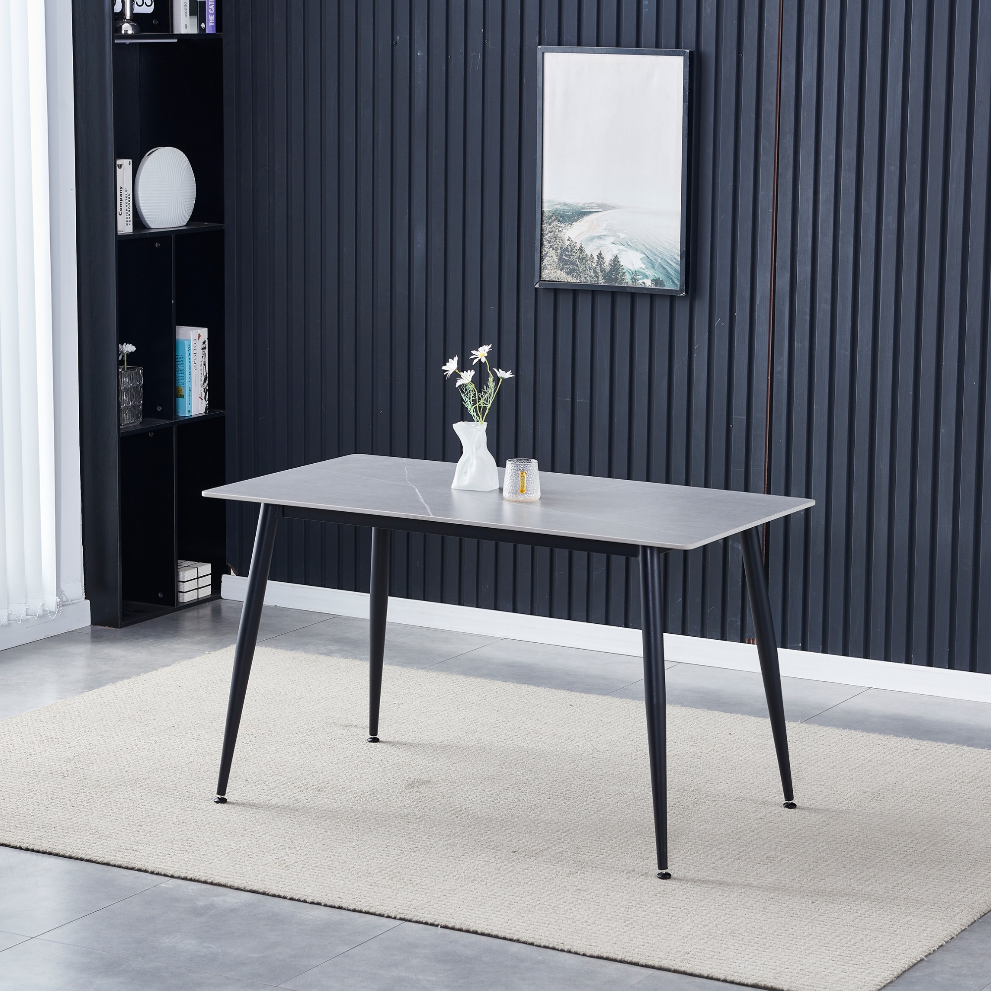 Jídelní stůl LUCIAN - šedý mramor/černá, šířka 130 cm
