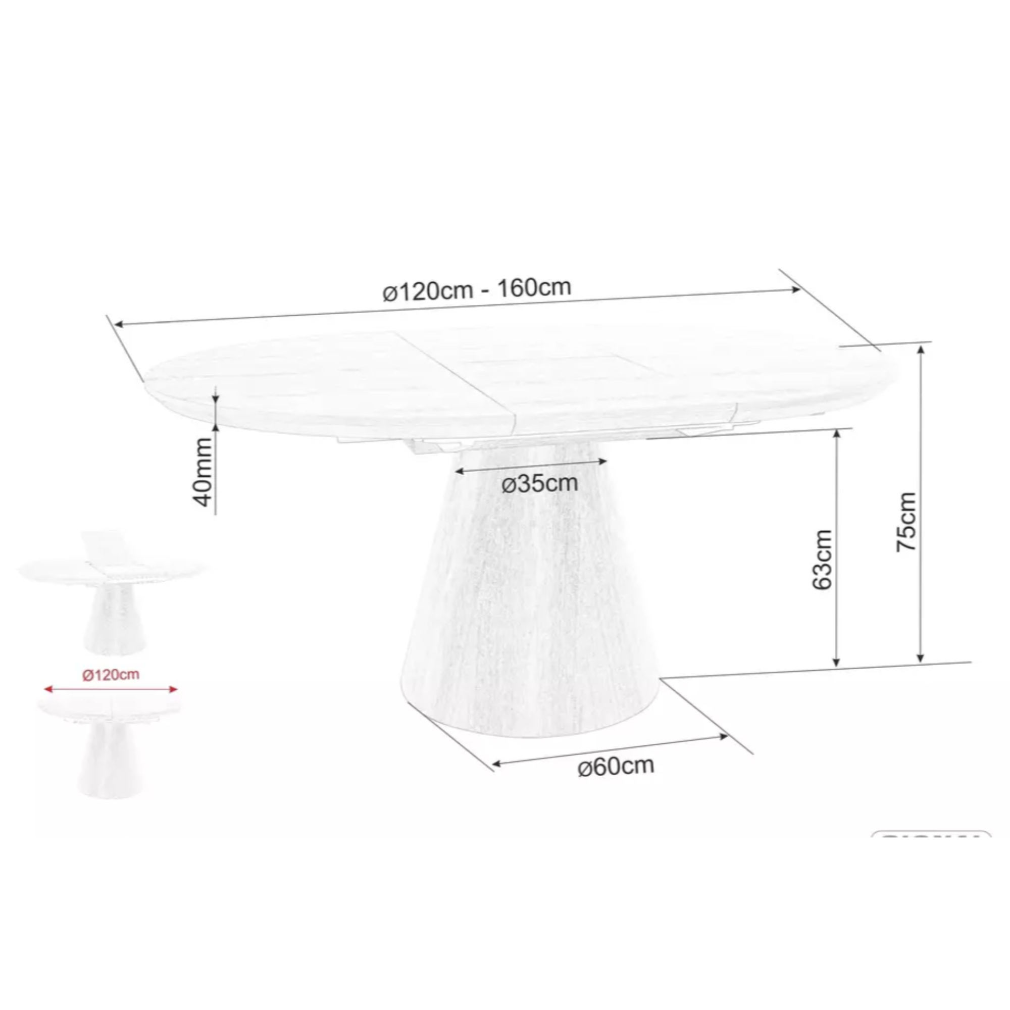 Na jídelním stole ONGIL 2 oceníte i jeho rozkládací funkci, která vám umožní zvětšit šířku stolu ze 120 na 160 cm. Stůl tak poskytne místo pro pohodlné stolování až 6 osob.