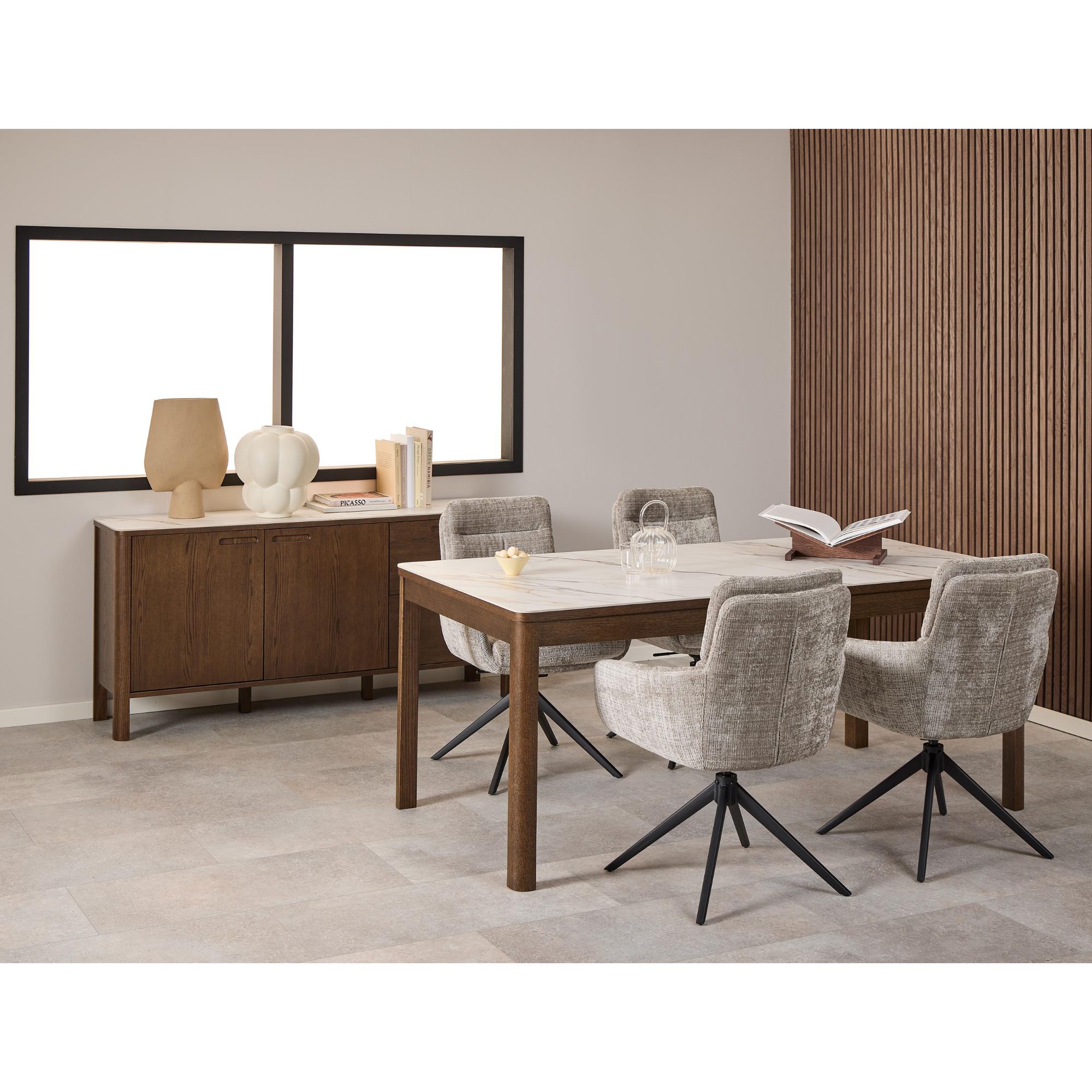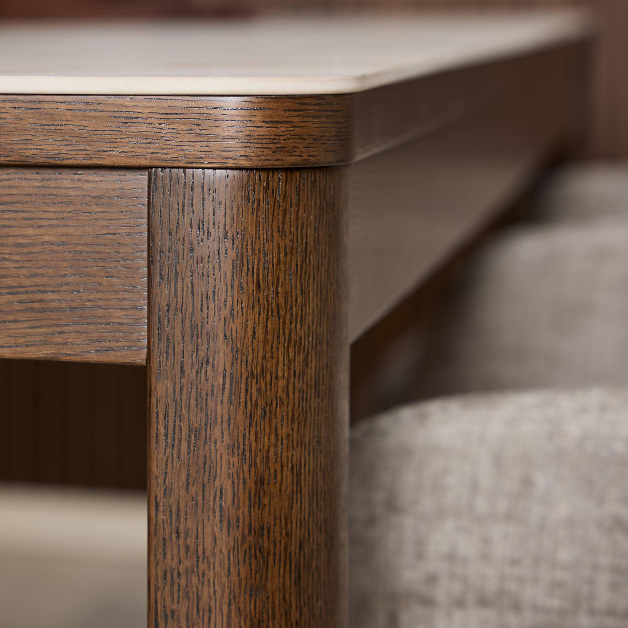 Pevné a stabilní nohy jsou vyrobeny z dřevěného materiálu, který je doplněný dubovou dýhou. Horní deska je z keramiky, která je odolná vůči teplu i vůči poškrábání. Pro tyto materiály je typická nejen snadná udržovatelnost, ale v případě správné péče i dlouhá životnost.