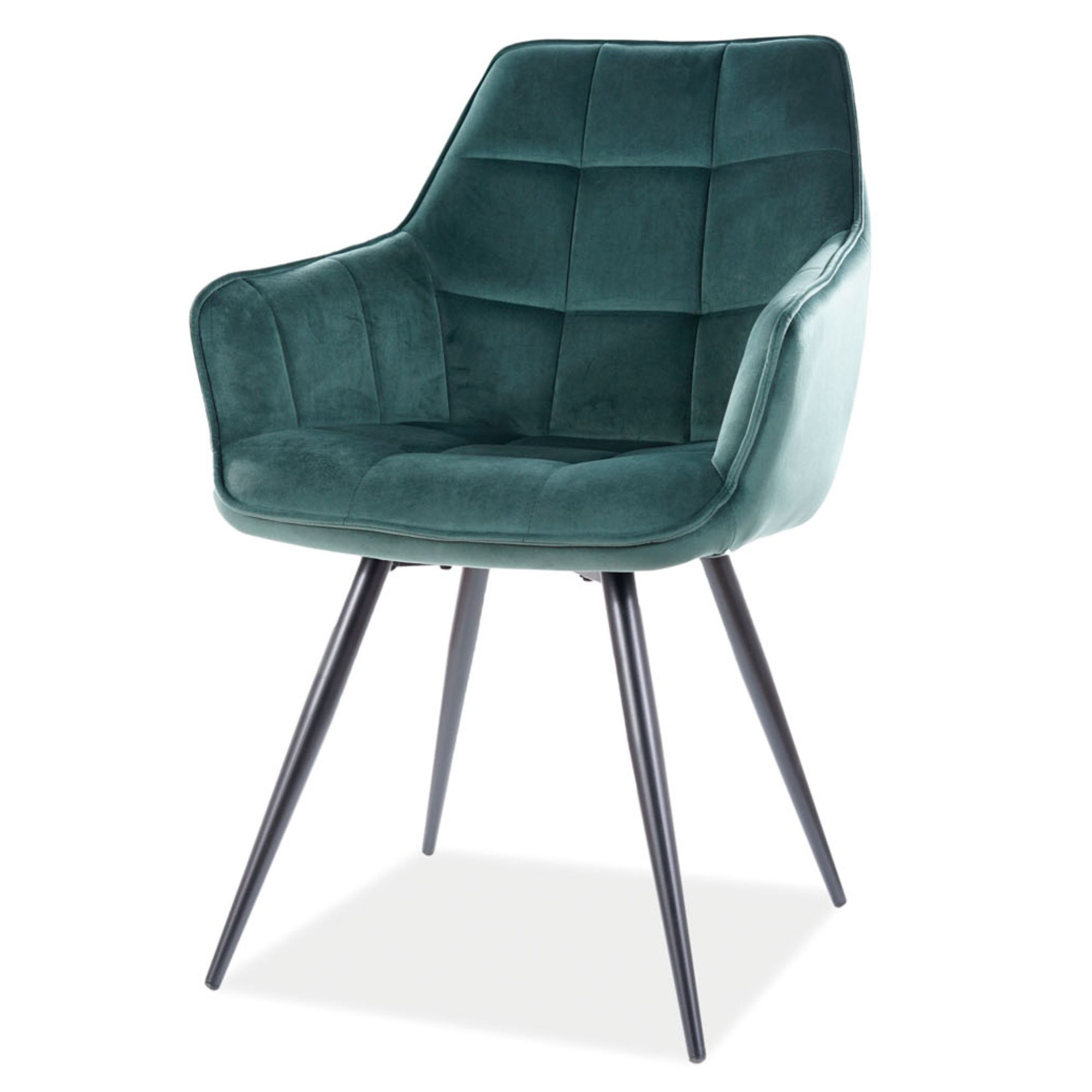 Maximální pohodlí zajišťuje pěnové polstrování sedáku i zádové opěrky. Čalouněna je vysoce kvalitní hladkou tkaninou sametového vzhledu – styl je pak podpořen dekorativním prošíváním. Stabilitu zajišťuje kovová podnož v černé matné úpravě. Komfort při sezení navíc podtrhují područky.