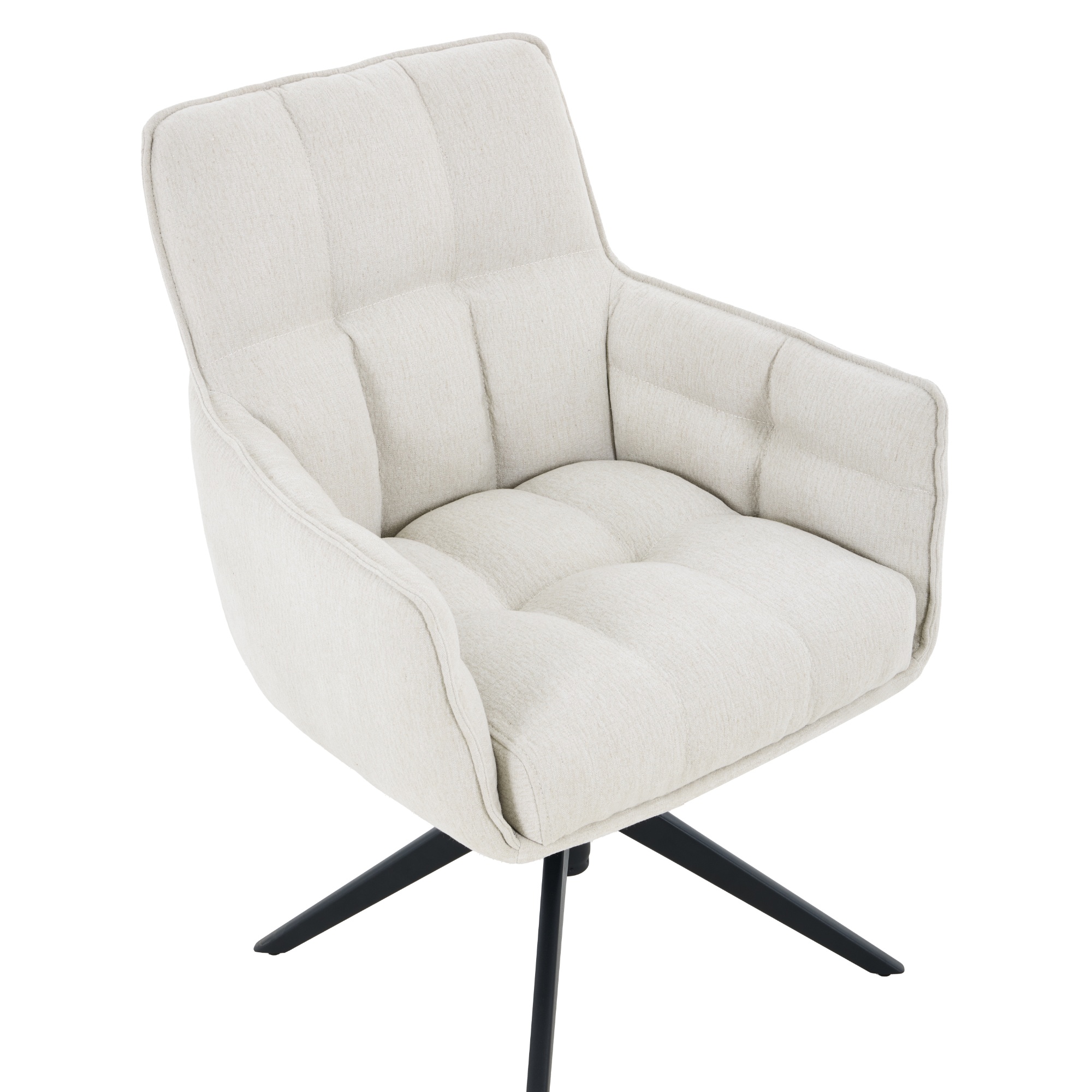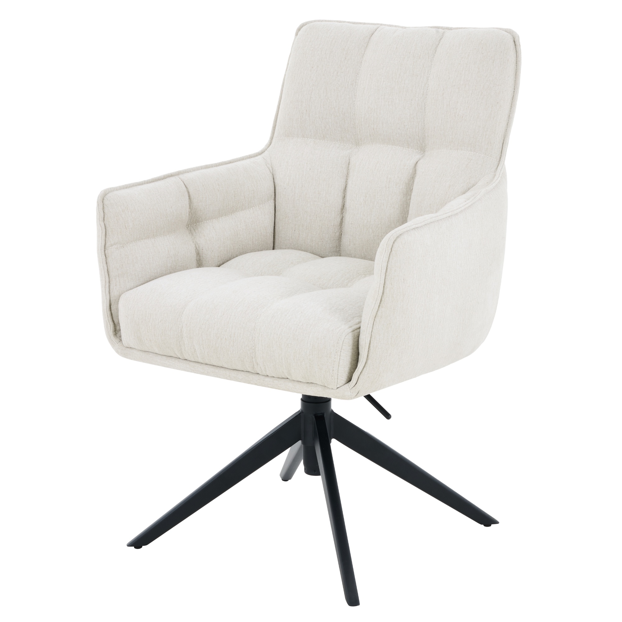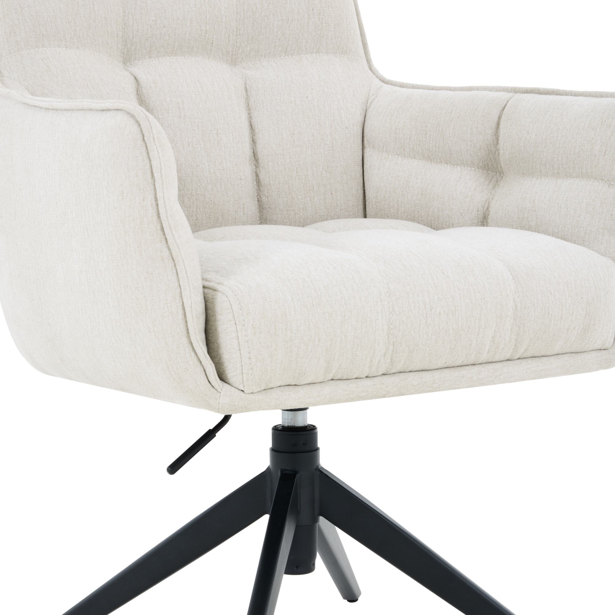 Stabilní konstrukce této židle je vyrobena z kovu a její povrch je práškově lakovaný. Pohodlné sezení zajišťují nejen područky, ale i měkký pěnový sedák s pružinovým jádrem. Židle je otočná o 360° a její výška je nastavitelná v rozmezí 89 až 96 cm.