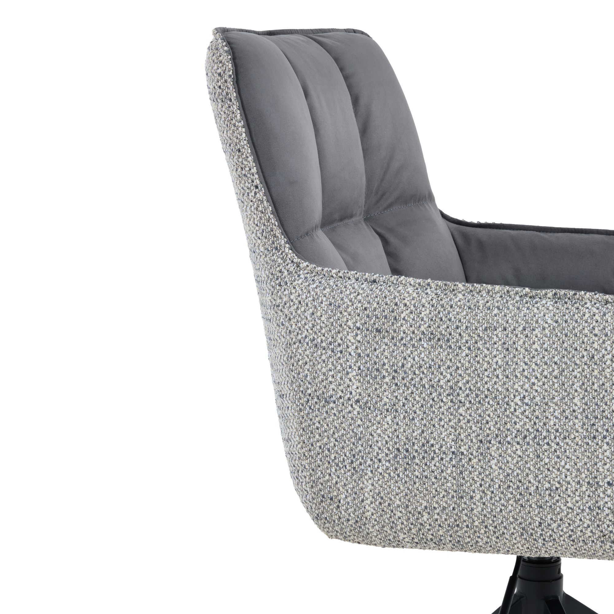 Stabilní konstrukce této židle je vyrobena z kovu a její povrch je práškově lakovaný. Pohodlné sezení zajišťují nejen područky, ale i měkký pěnový sedák s pružinovým jádrem. Židle je otočná o 360° a její výška je nastavitelná v rozmezí 89 až 96 cm.