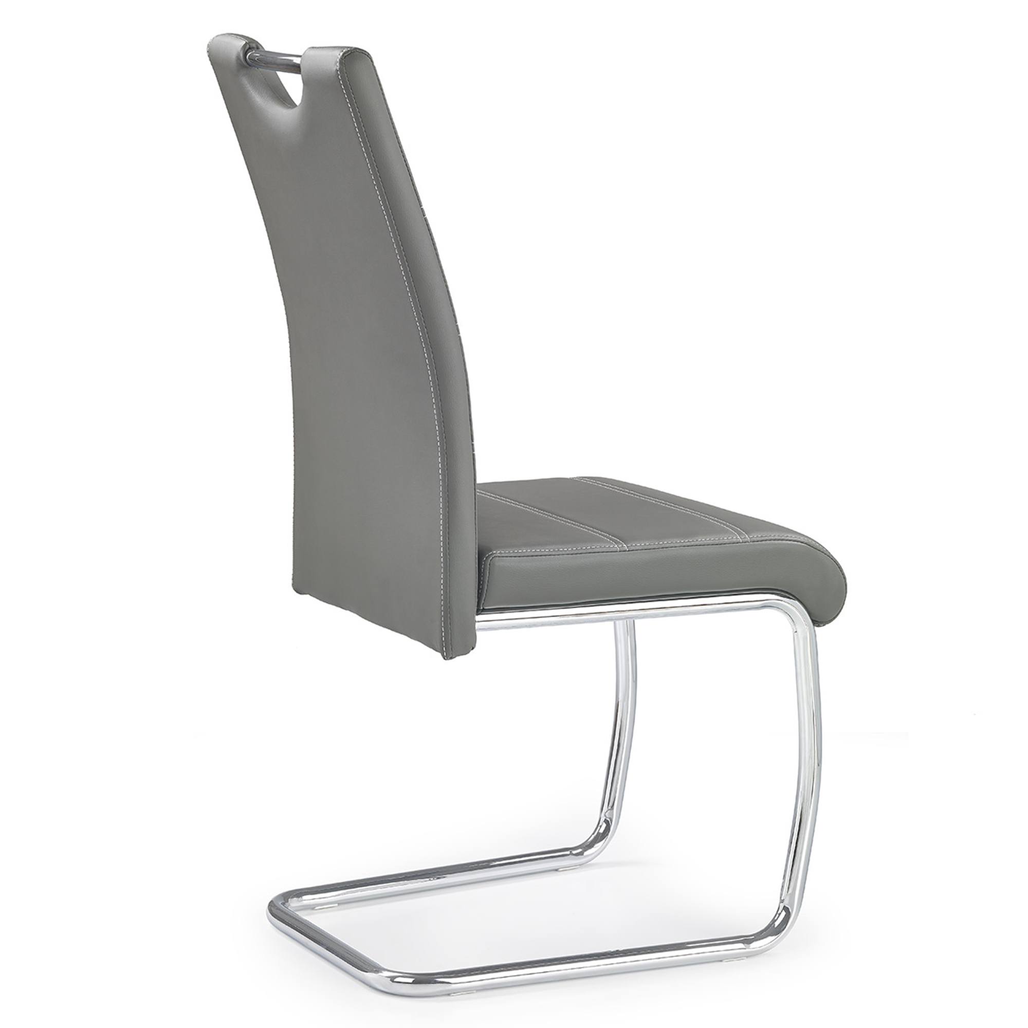 Čalounění ze syntetické kůže s příjemným polstrováním vám zajistí pohodlné sezení během stolování. Decentní prošívání potahu přidává židli na atraktivnějším vzhledu. Konstrukce s pohupovou podnoží je vyrobena z pochromované oceli, která dodává židli stabilitu a nosnost až 120 kg. Židle disponuje také praktickým kovovým madlem pro snadnou manipulaci. Díky použitým materiálům se vám bude povrch židle snadno udržovat v čistotě.