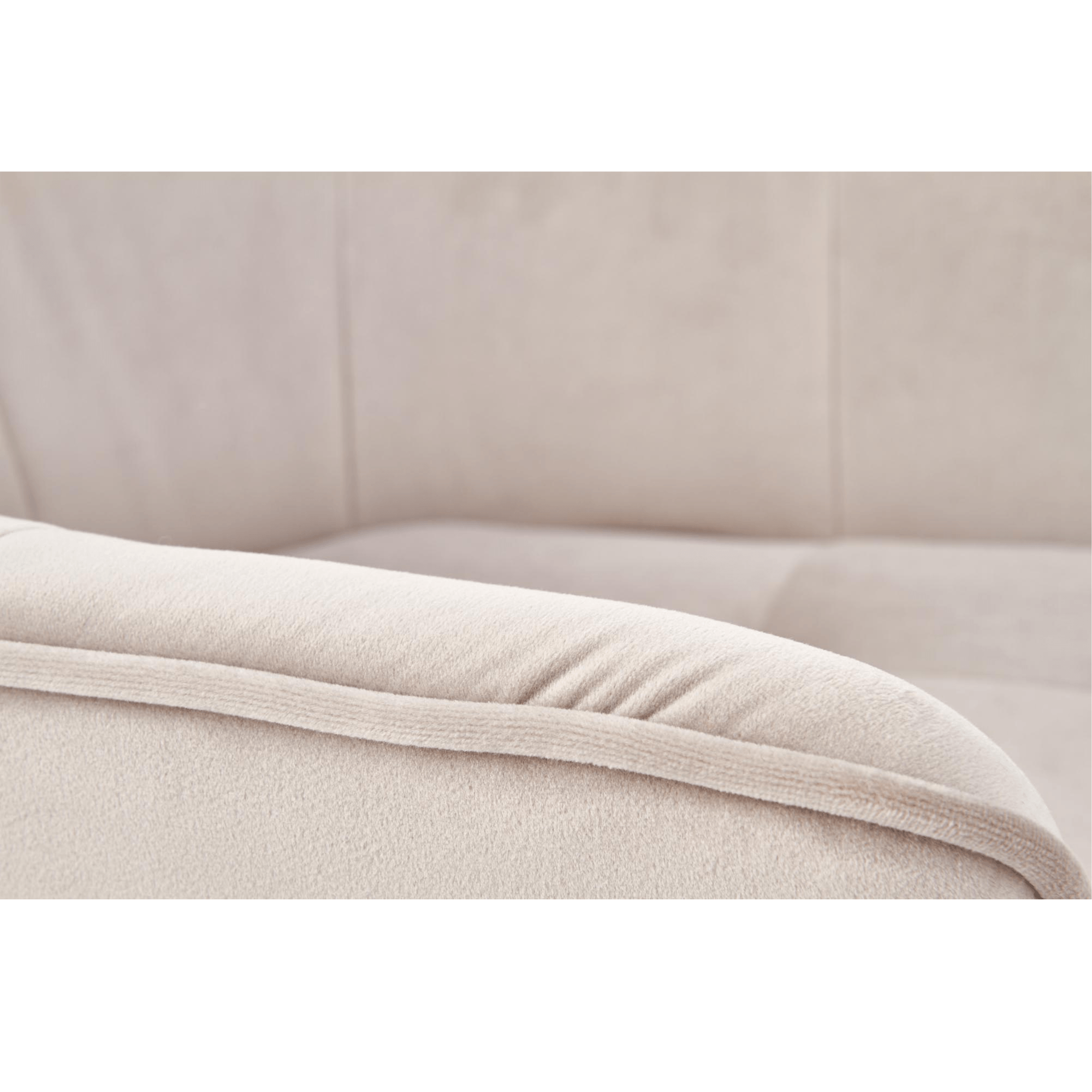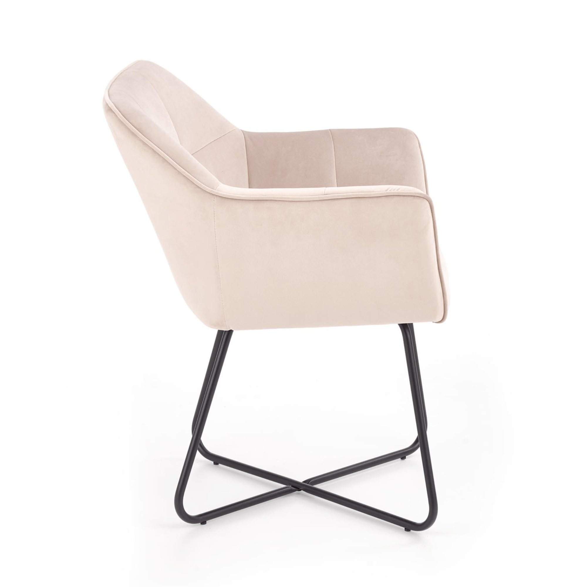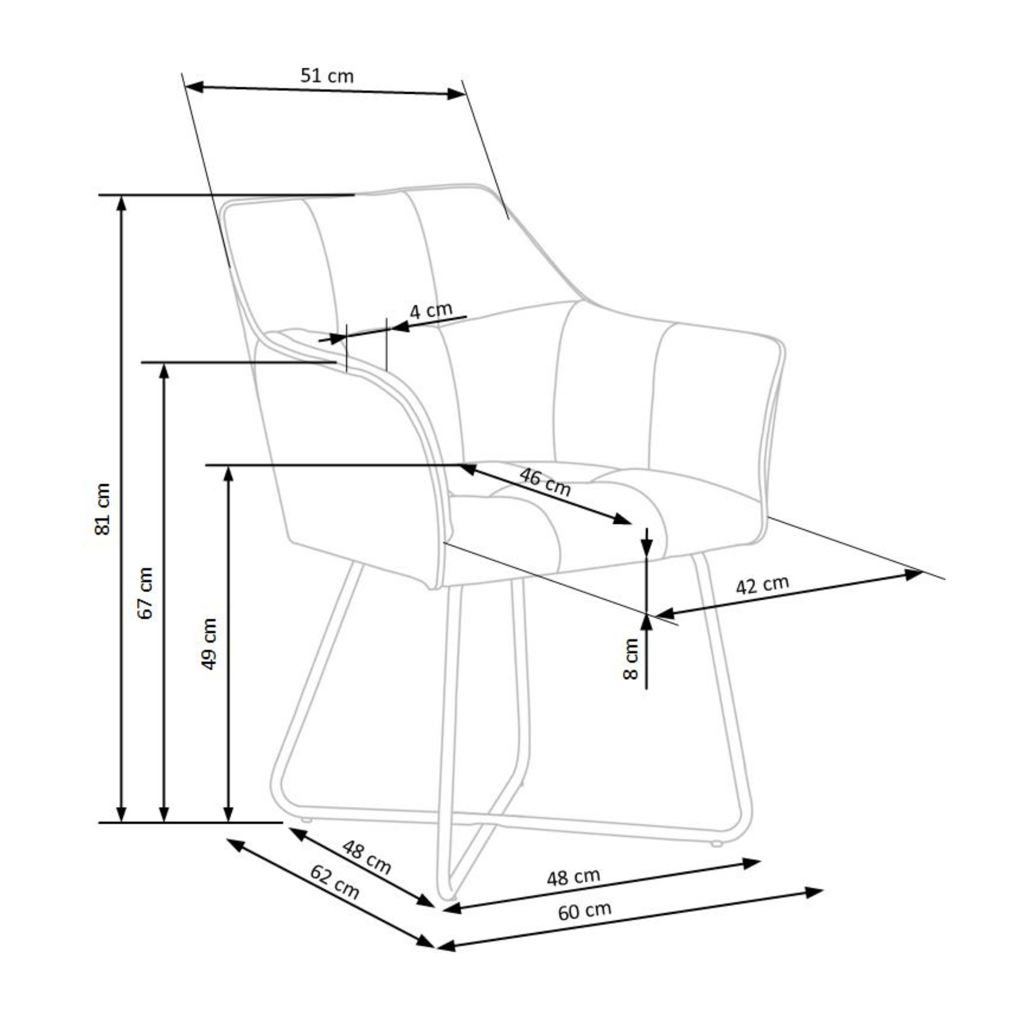 Maximální komfort je dosažen polstrováním sedáku i zádové opěrky – ty jsou čalouněny vysoce kvalitní hladkou tkaninou s dekorativním prošíváním. Pohodlí navíc navyšují praktické područky. Stabilitu zajištuje kovová podnož, která je ošetřena černým práškovým lakem.