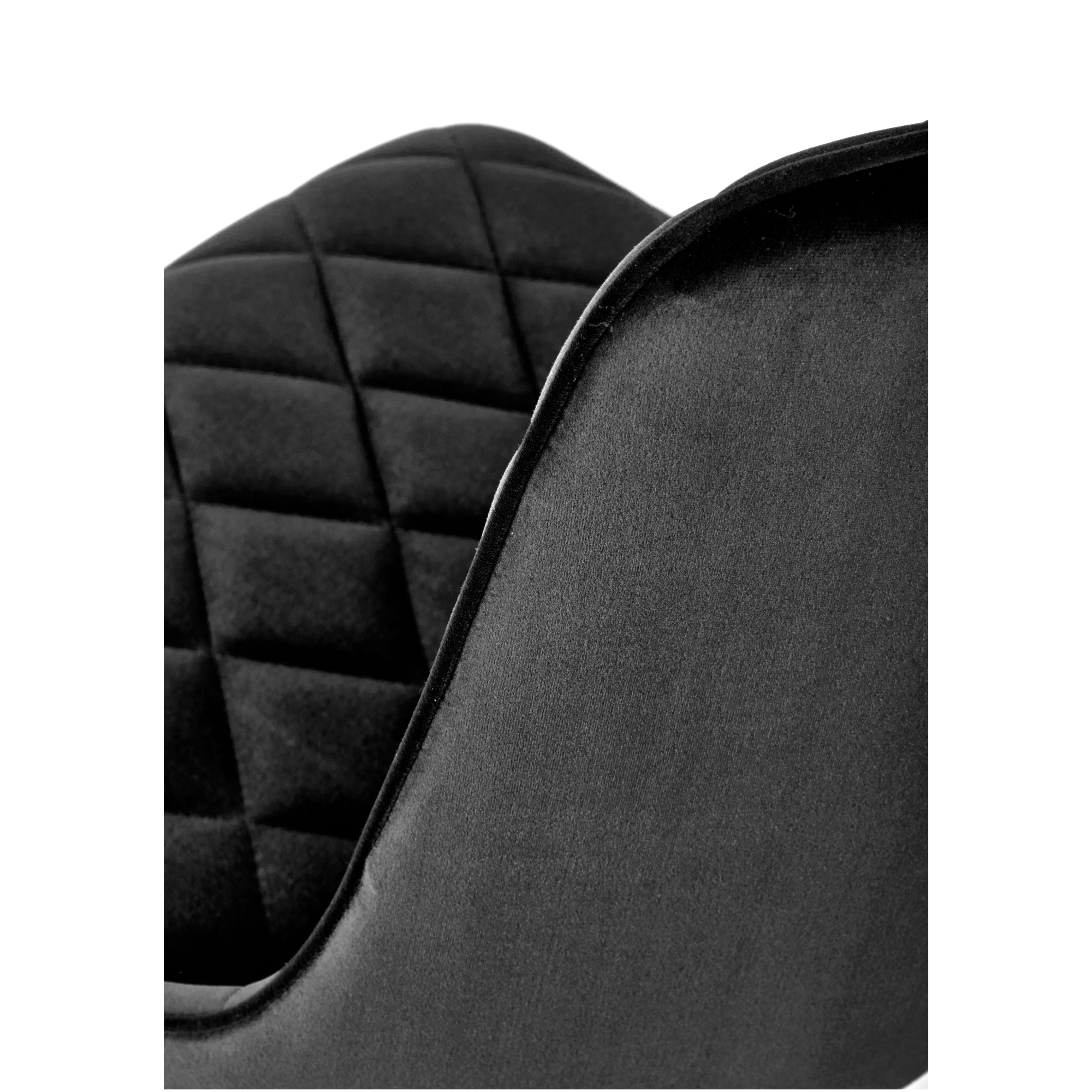 Skořepina je čalouněna velmi kvalitní tkaninou sametového vzhledu – ta disponuje vkusným dekorativním prošíváním. Maximální komfort je pak dosažen polstrováním sedáku i zádové opěrky. Stabilitu zajištuje kovová podnož, která je ošetřena černým práškovým lakem.