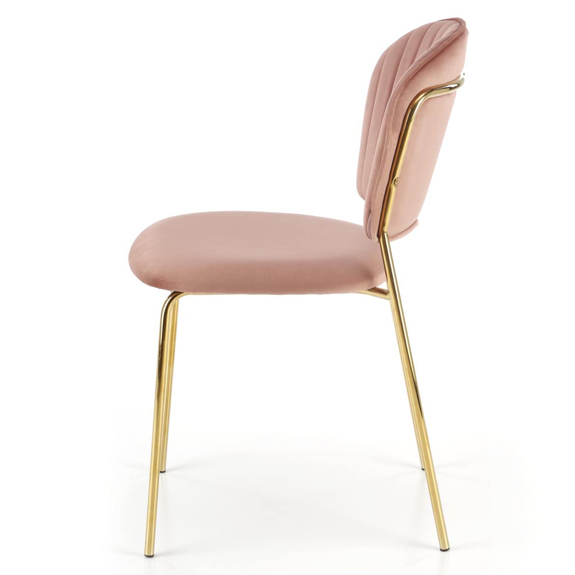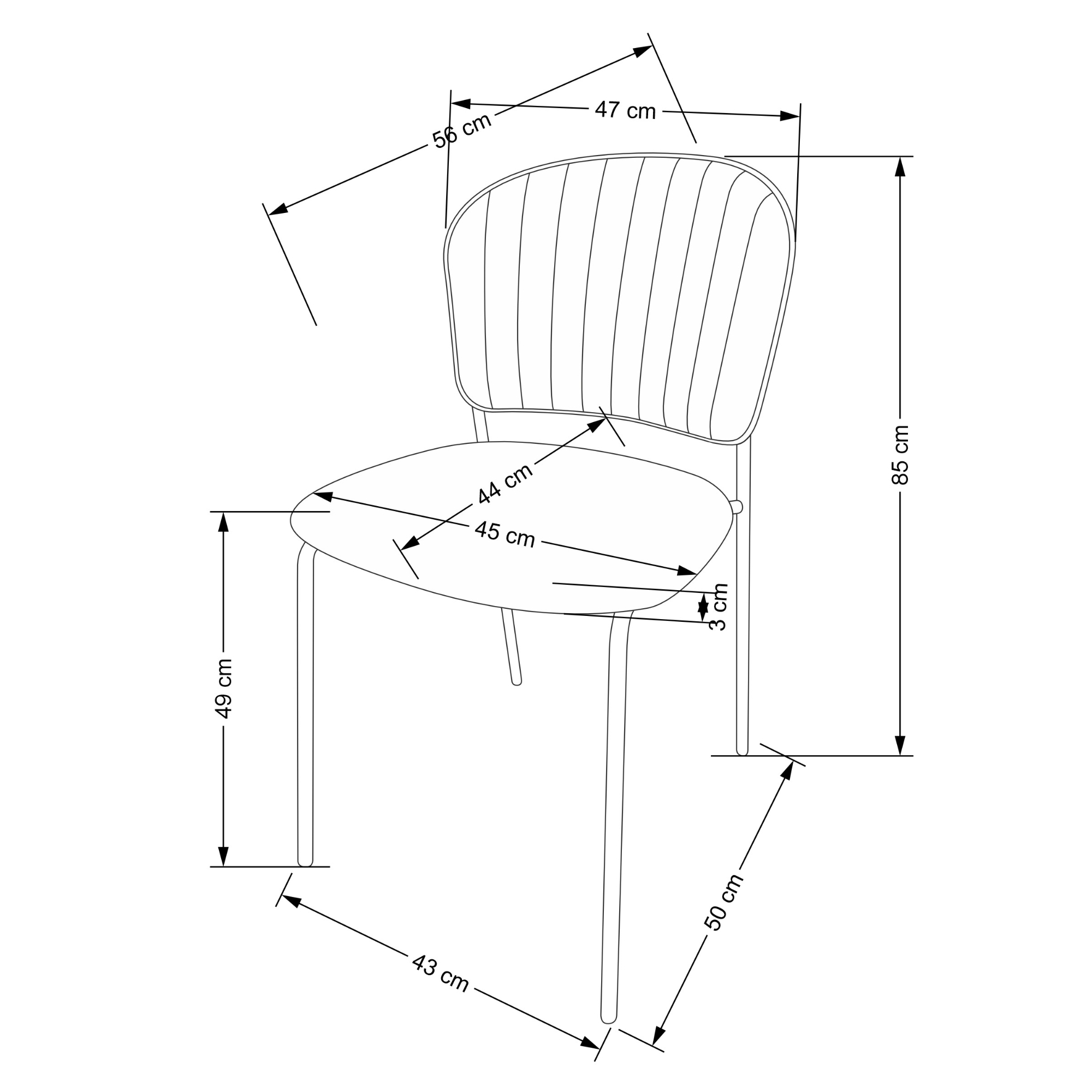 Maximální komfort je dosažen polstrováním sedáku i zádové opěrky a čalouněním z na dotek příjemné tkaniny sametového vzhledu. Záda jsou z přední strany doplněna o decentní dekorativní prošívání. Stabilitu celé konstrukce zajištuje čtyřnohá podnož z pochromované oceli ve zlaté barvě. Maximální nosnost jídelní židle SCK-499 činí dostatečných 100 kg.