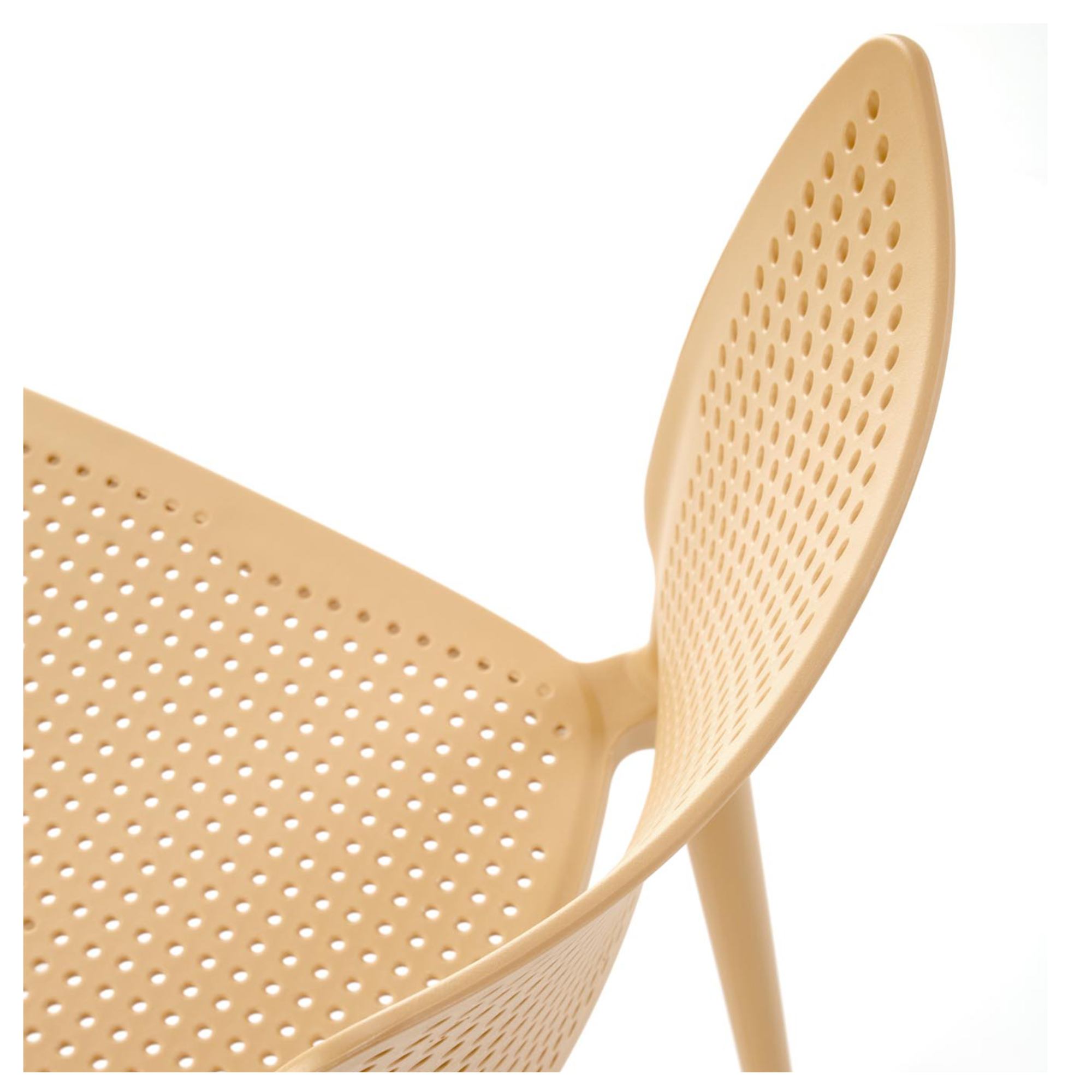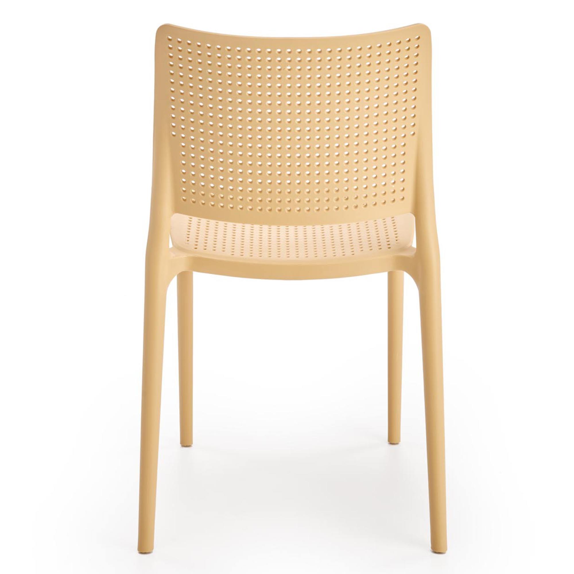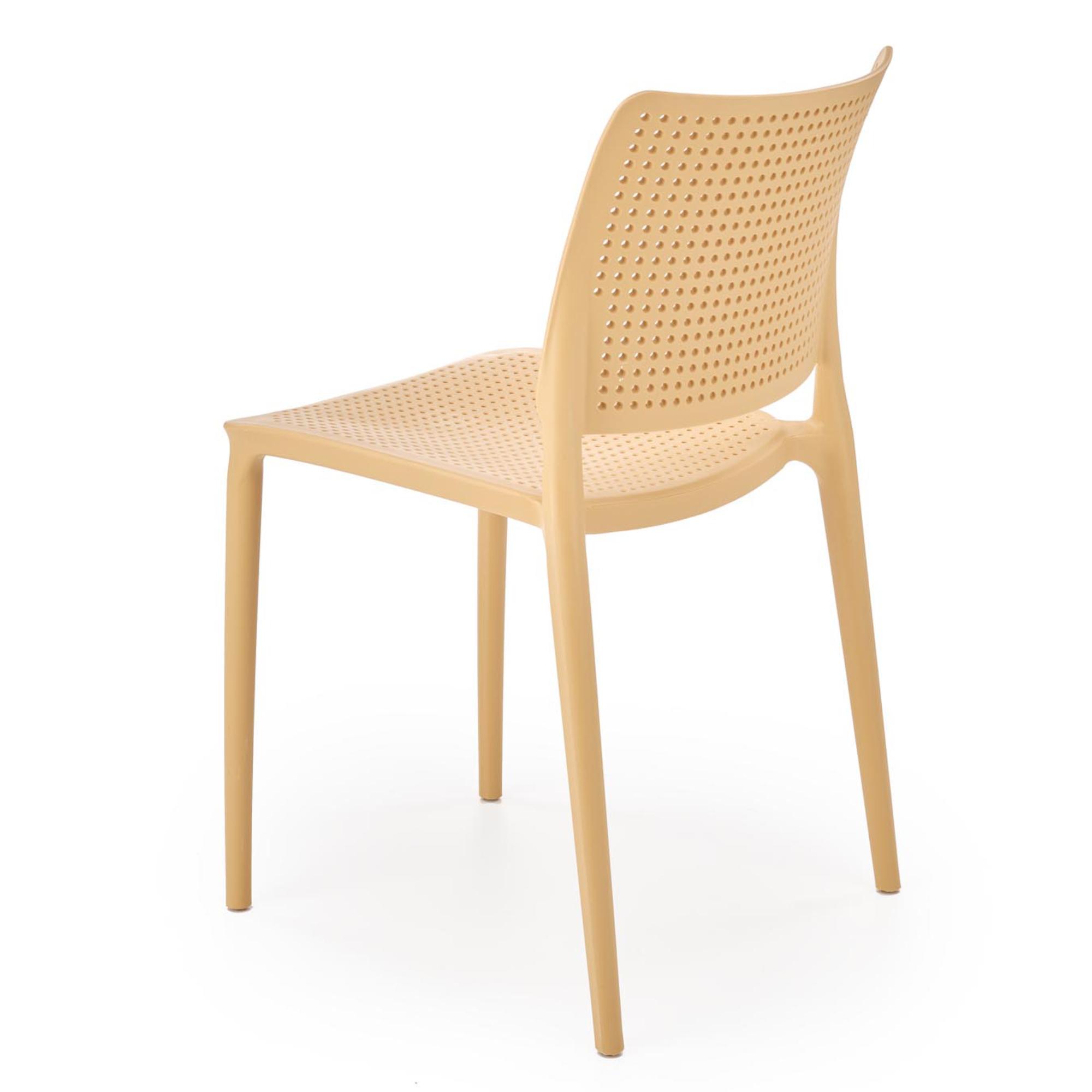Jídelní židle SCK-514 v minimalistickém, univerzálním provedení je díky svému vzhledu a zpracování skvělou volbou jak do jídelen či kuchyní, tak i na terasy a zahrady. Zhotovena je z kvalitního polypropylenu a židle je tak odolnější proti mechanickému poškození a zároveň se velmi snadno udržuje. Děrovaný sedák a opěrák umožňují proudění vzduchu. Celkovou stabilitu zajišťuje čtyřnohá podnož. Židle je dostupná hned v několika barevných variantách.