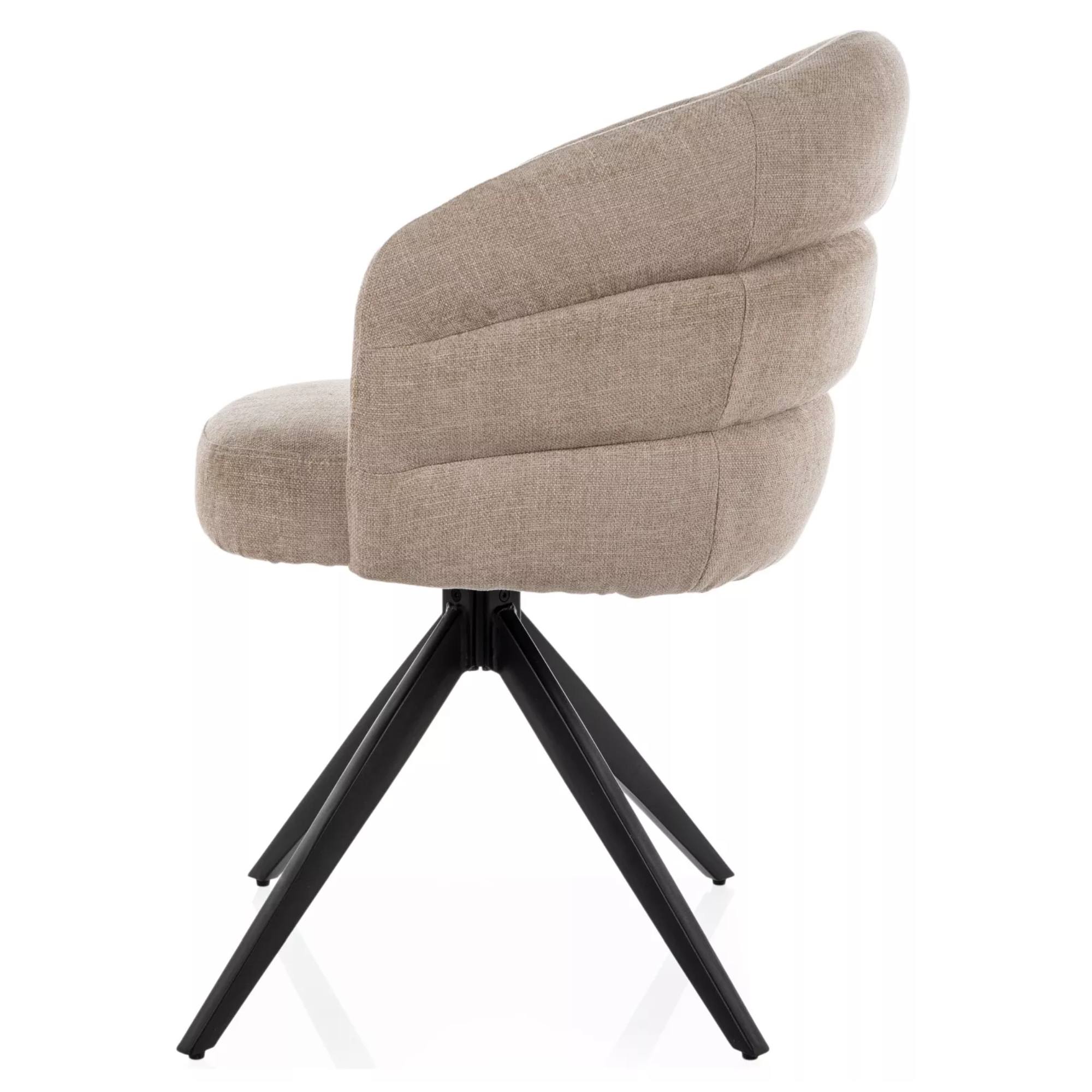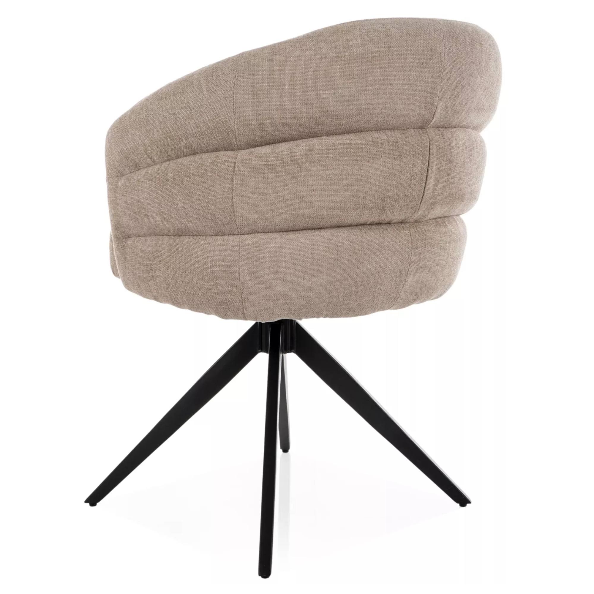 Židle je čalouněna hladkou tkaninou, která je příjemná na dotek. Vnější část židle je zdobena dekorativním prošitím. Maximální pohodlí během sezení zajišťuje nejen měkký pěnový sedák s pružinovým jádrem, ale i područky. Sedací část podpírá čtveřice nohou z matného kovu.