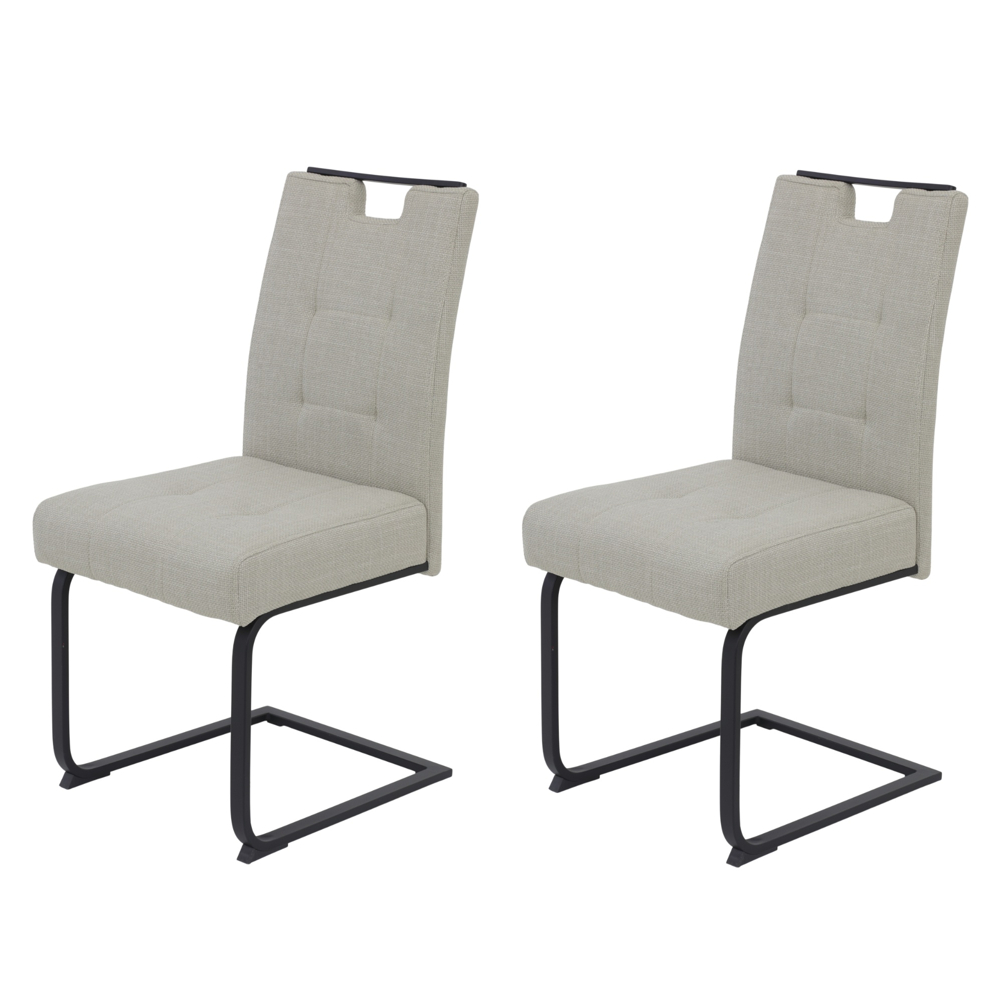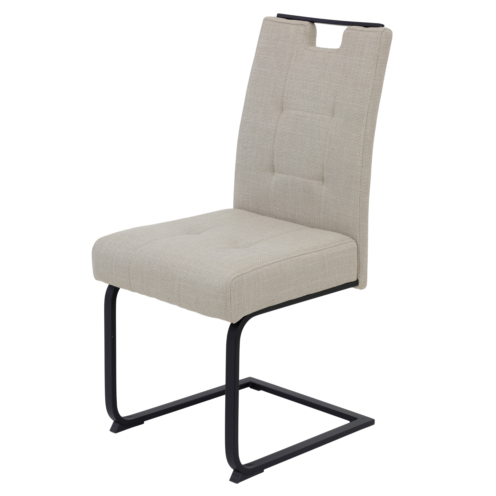Židle mají stabilní konstrukci, která je vyrobena z kovu. Povrch konstrukce je opatřen práškovým nástřikem. O pohodlné sezení se starají měkké pěnové sedáky s pružinovým jádrem. Židle jsou čalouněny hladkou tkaninou a zdobí je elegantní prošívání. Na horní části opěradel se nacházejí praktické úchyty, který usnadňují manipulaci se židlemi.