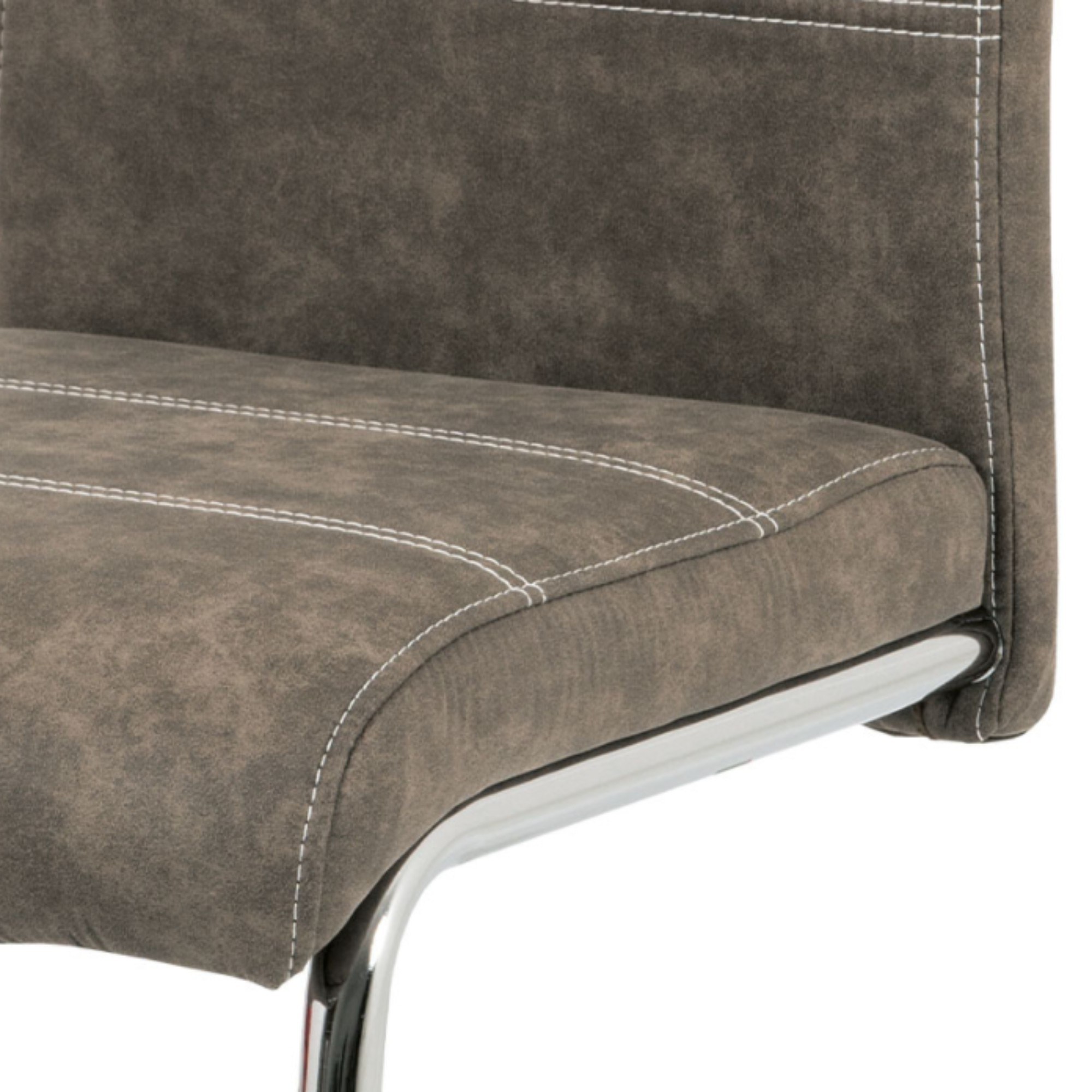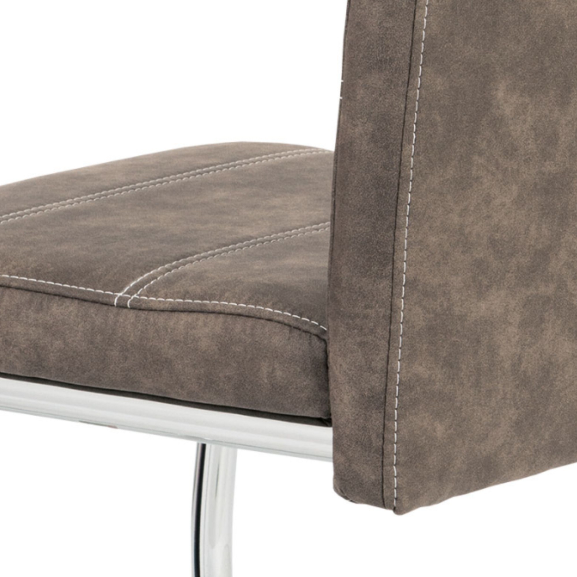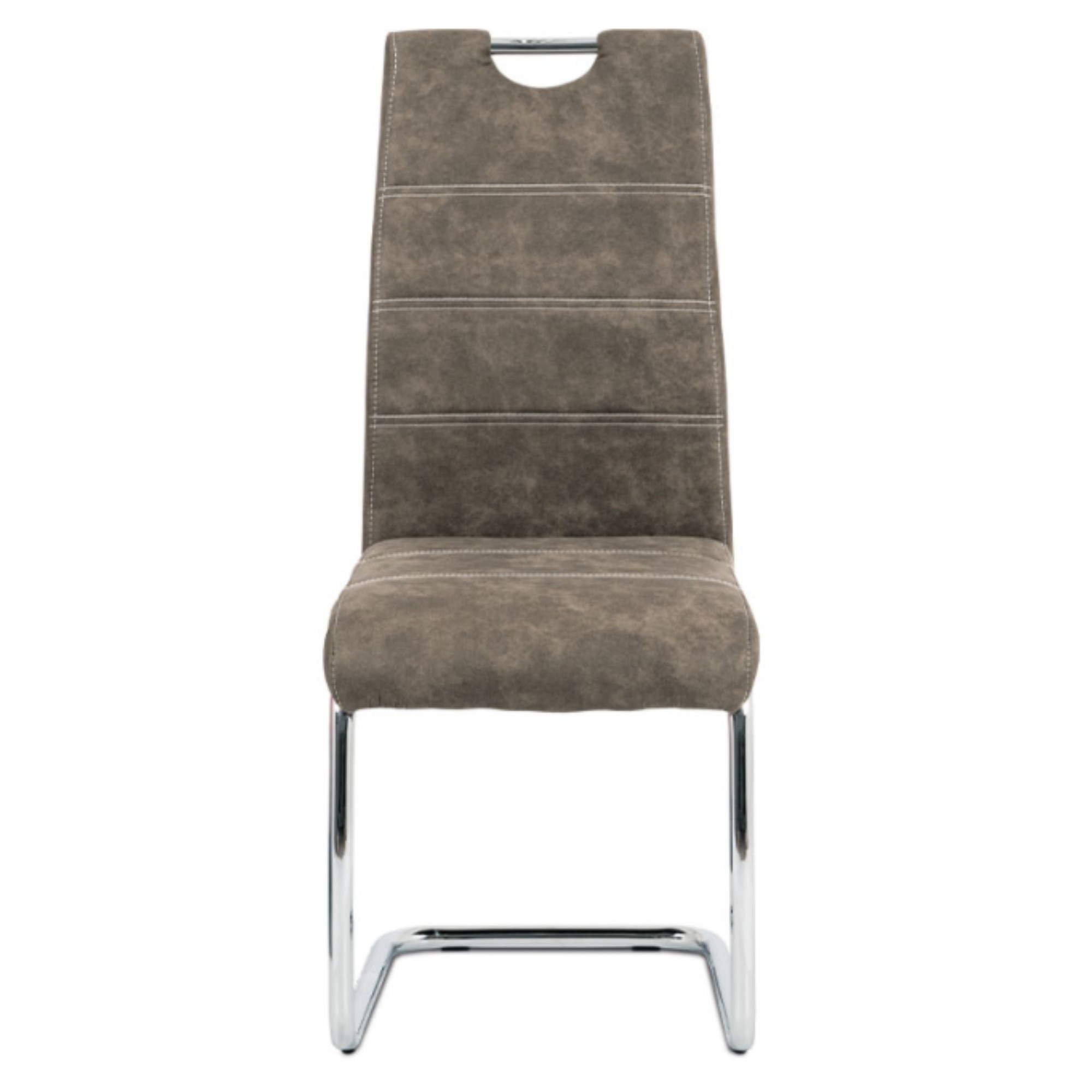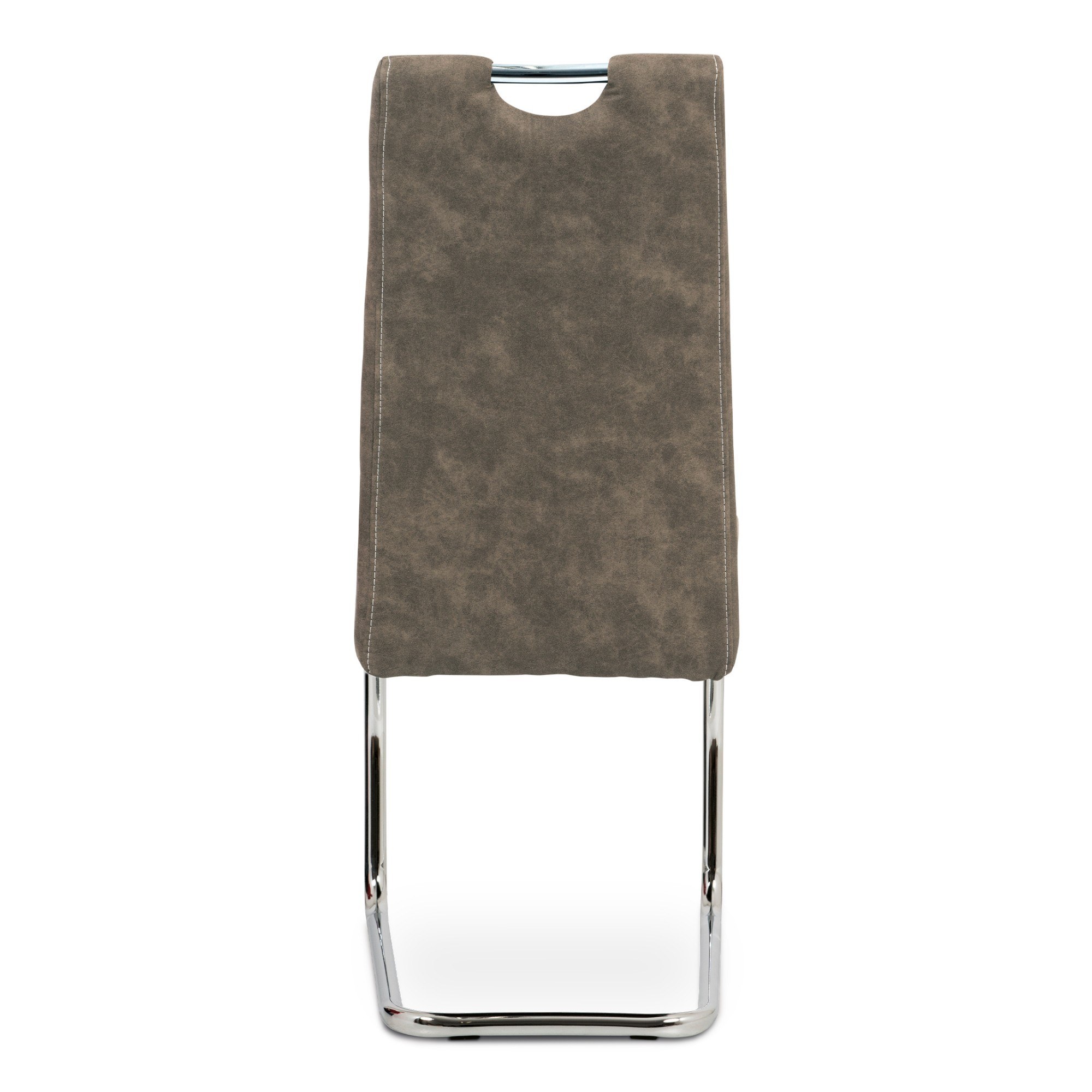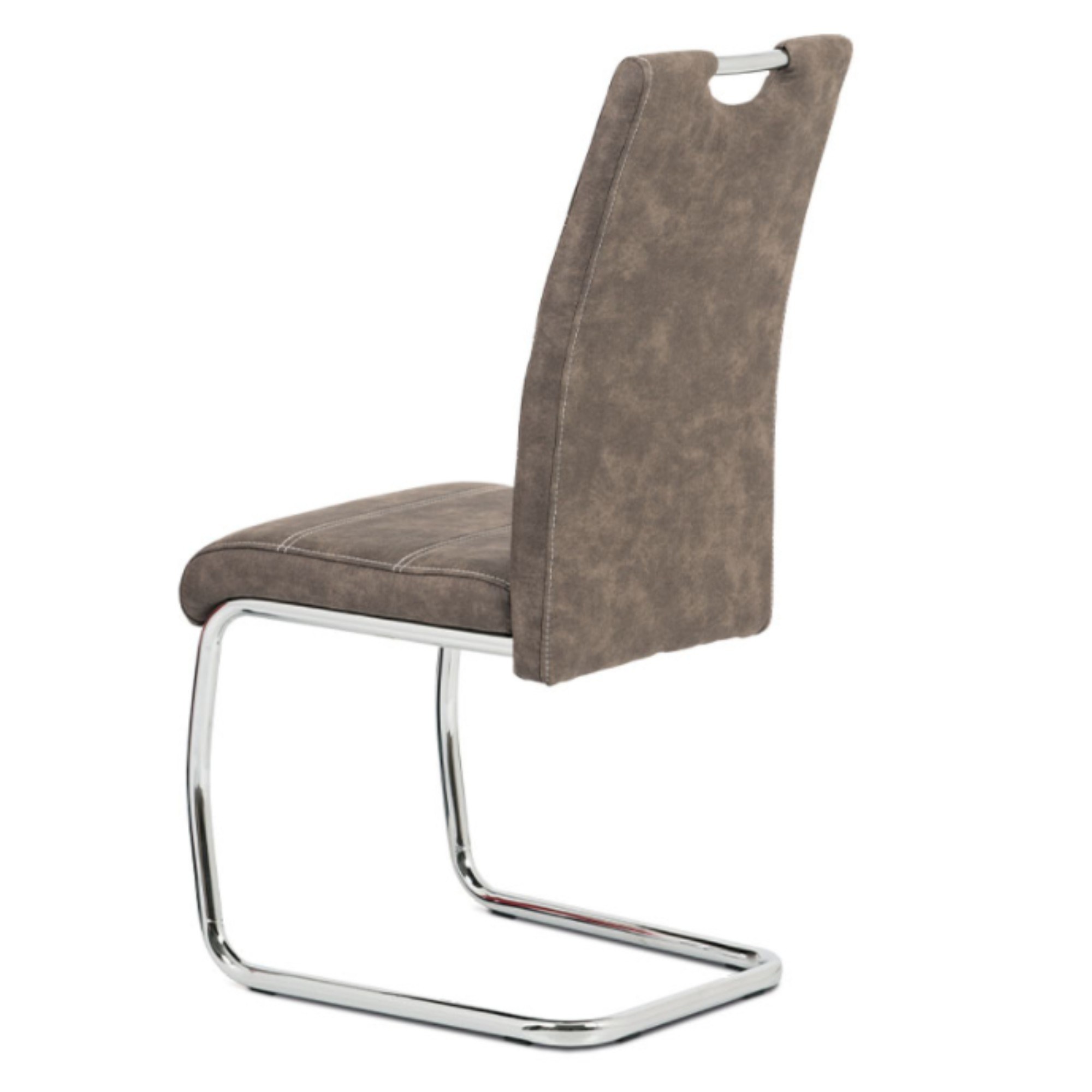 Jídelní židle GRAMA svým jednoduchým designem vybízí k širšímu využití. Je vhodná do moderní jídelny, kanceláře, nebo například jednací místnost. O dokonalé posezení se postará, jak kovová pohupová podnož v pochromovaném povrchu, tak i příjemné polstrování z PU pěny, potažené hladkou látkou zvanou COWBOY v dekoru vintage kůže. Vysoká opěrka zad je opatřena úchytem ke snadnější manipulaci. Podnož je pro větší stabilitu a bezpečí vytvarovaná do kruhového průřezu a opatřena plastovými kluzáky jejíž úkolem je snížit riziko poškození vaší podlahy. Židli si můžete vybrat z několika barev dle vašeho interiéru.