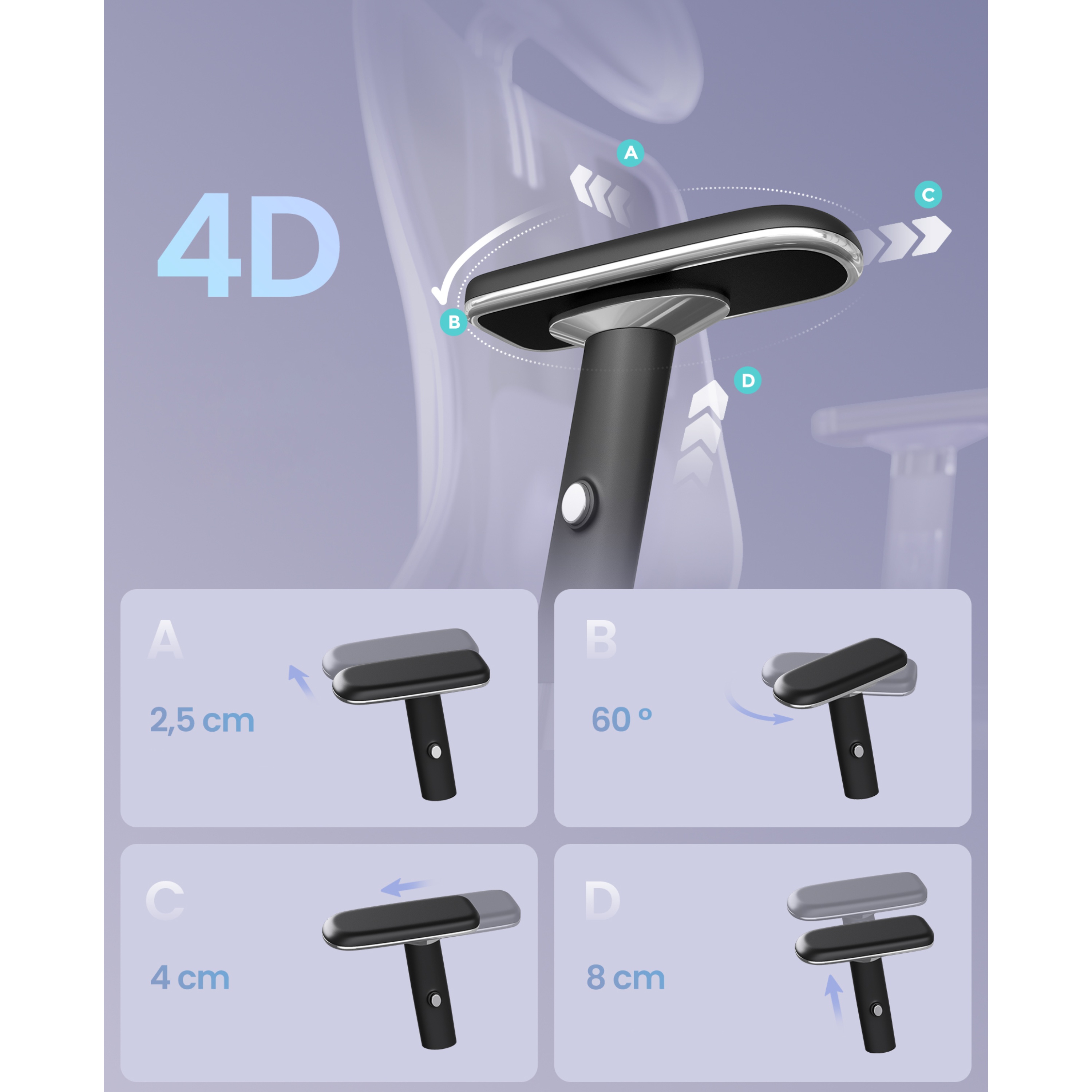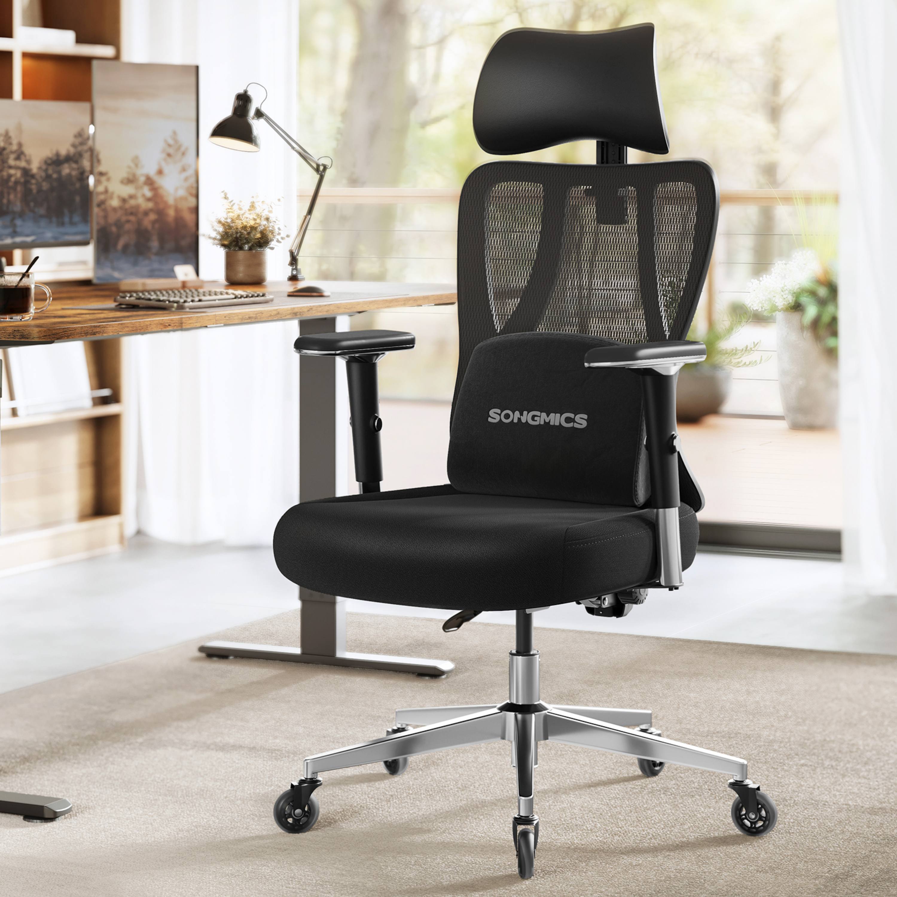 - Nastavitelné područky, bederní opěrka i opěrka hlavy