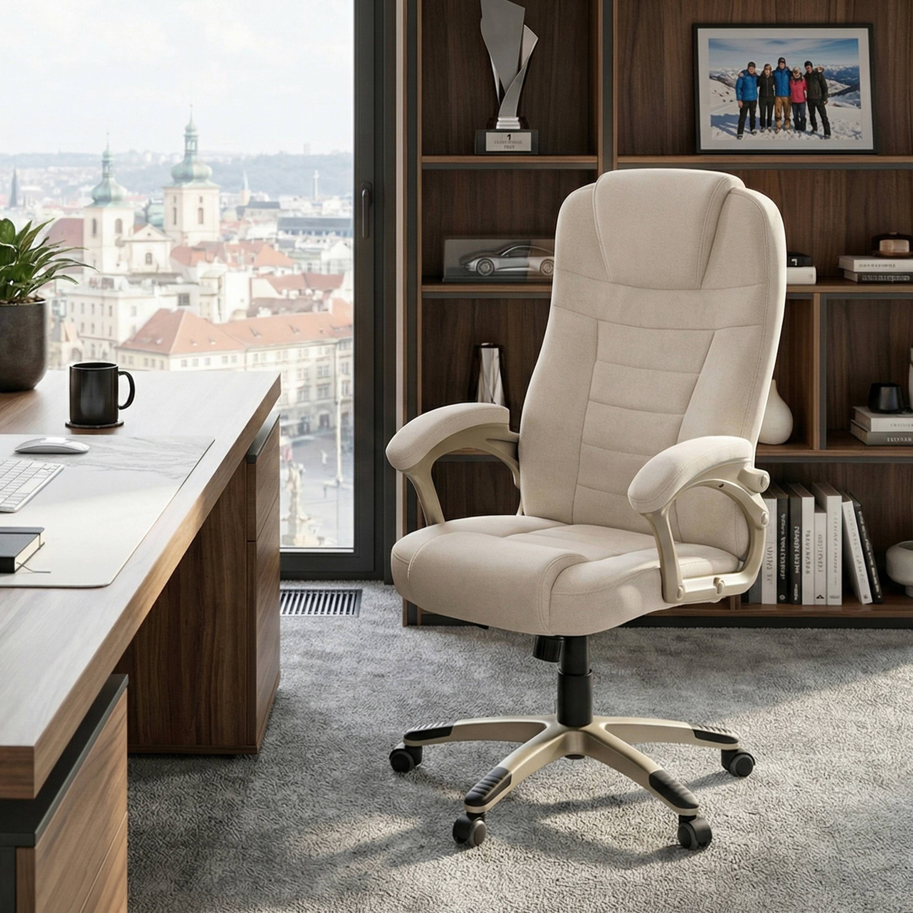 Kancelářské křeslo CHESNUT se vám přizpůsobí pro každodenní pracovní aktivitu. Potah z tkaniny vám dopřeje komfortní a luxusní posezení. Díky měkkému polstrování v oblasti sedáku, opěráku a područek se tento komfort ještě zvyšuje. Podhlavník navíc poslouží jako podpora, která vám uleví při dlouhodobém sezení u počítače.