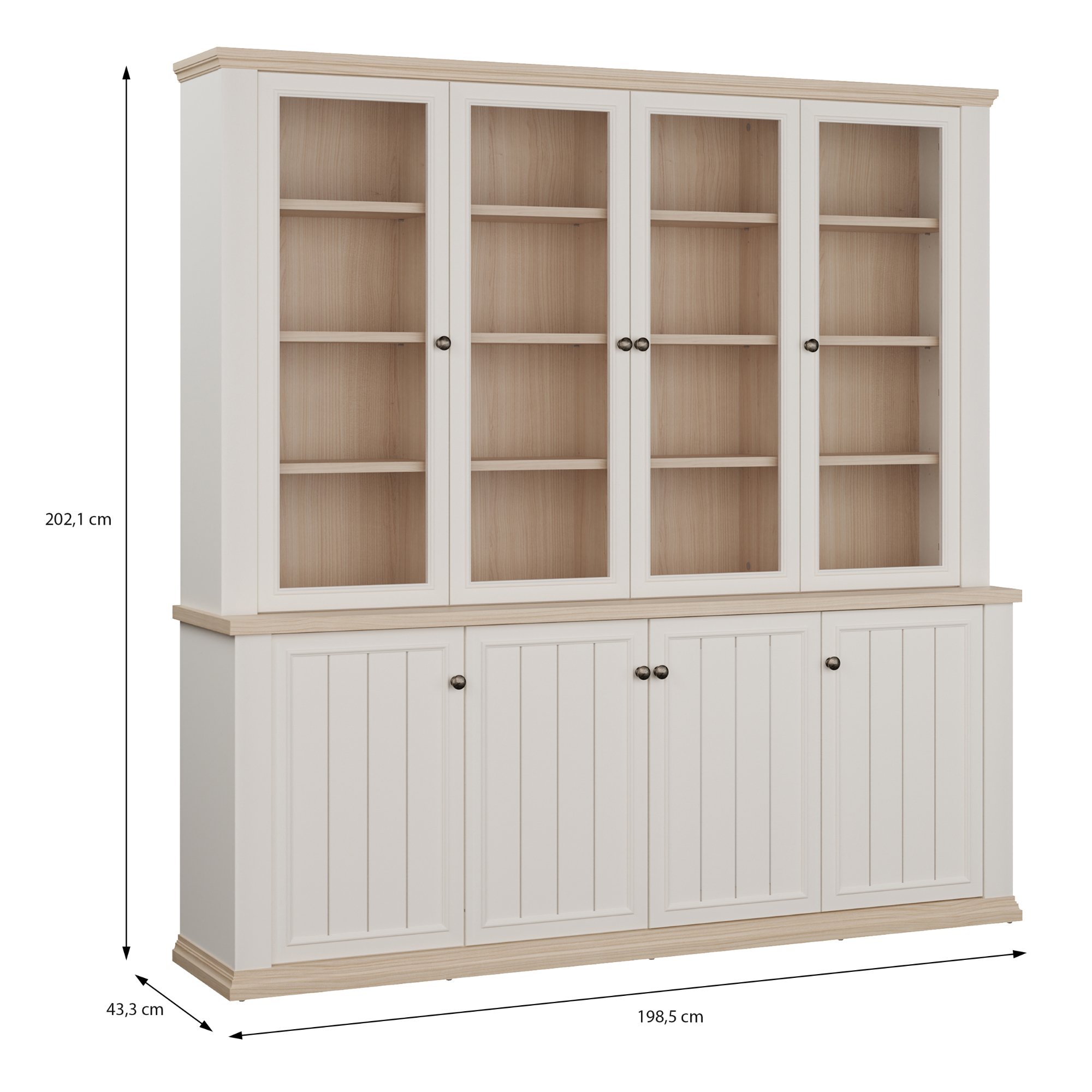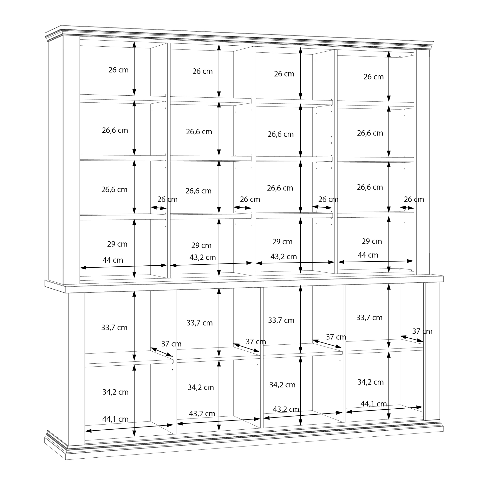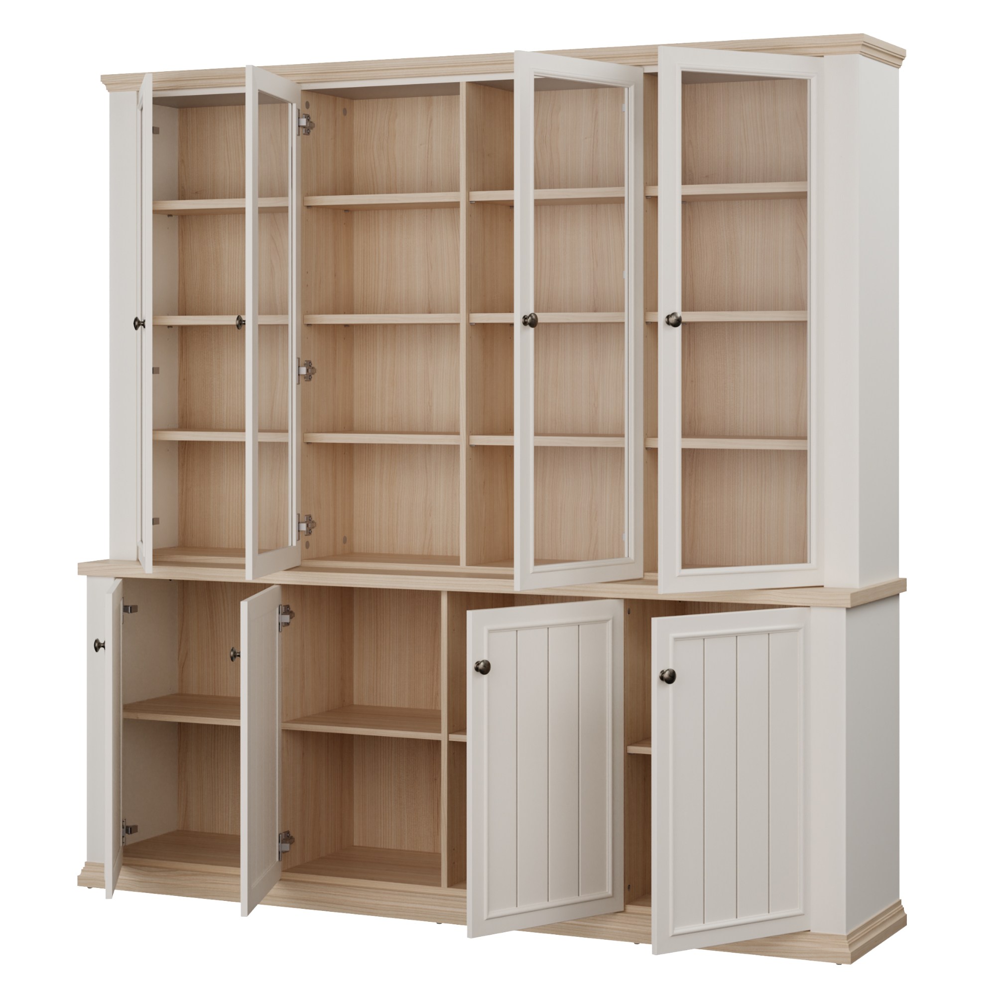 Za jejími dvířky, které jsou pro snadnější manipulaci vybavena úchyty, najdete 16 polic. Knihovna tak poskytne nejen dostatek prostoru na přehledné uložení knih nebo šanonů s dokumenty, ale i místo pro vystavení oblíbených dekorací. Ke knihovně si můžete dokoupit i LED osvětlení, díky kterému předměty vystavené za prosklenými dvířky budou moct vyniknout naplno.